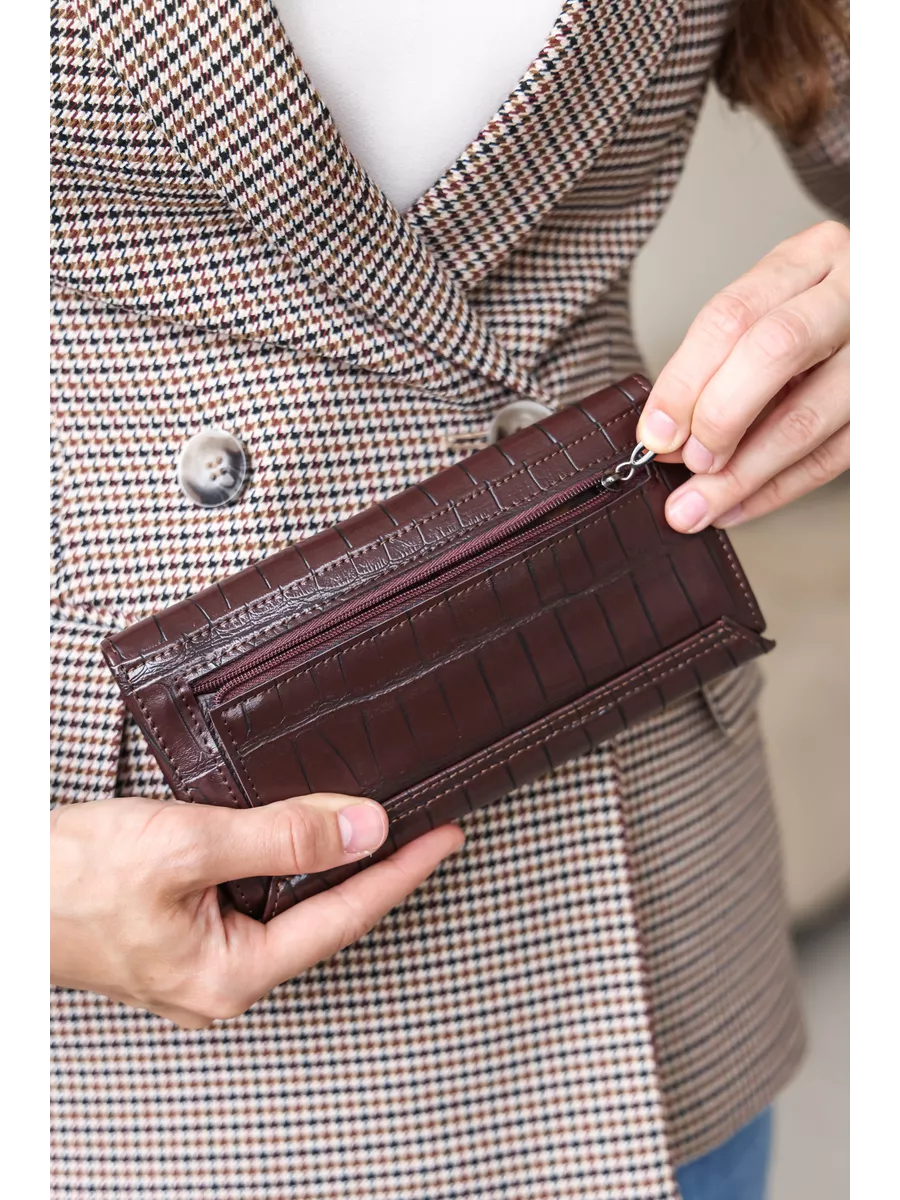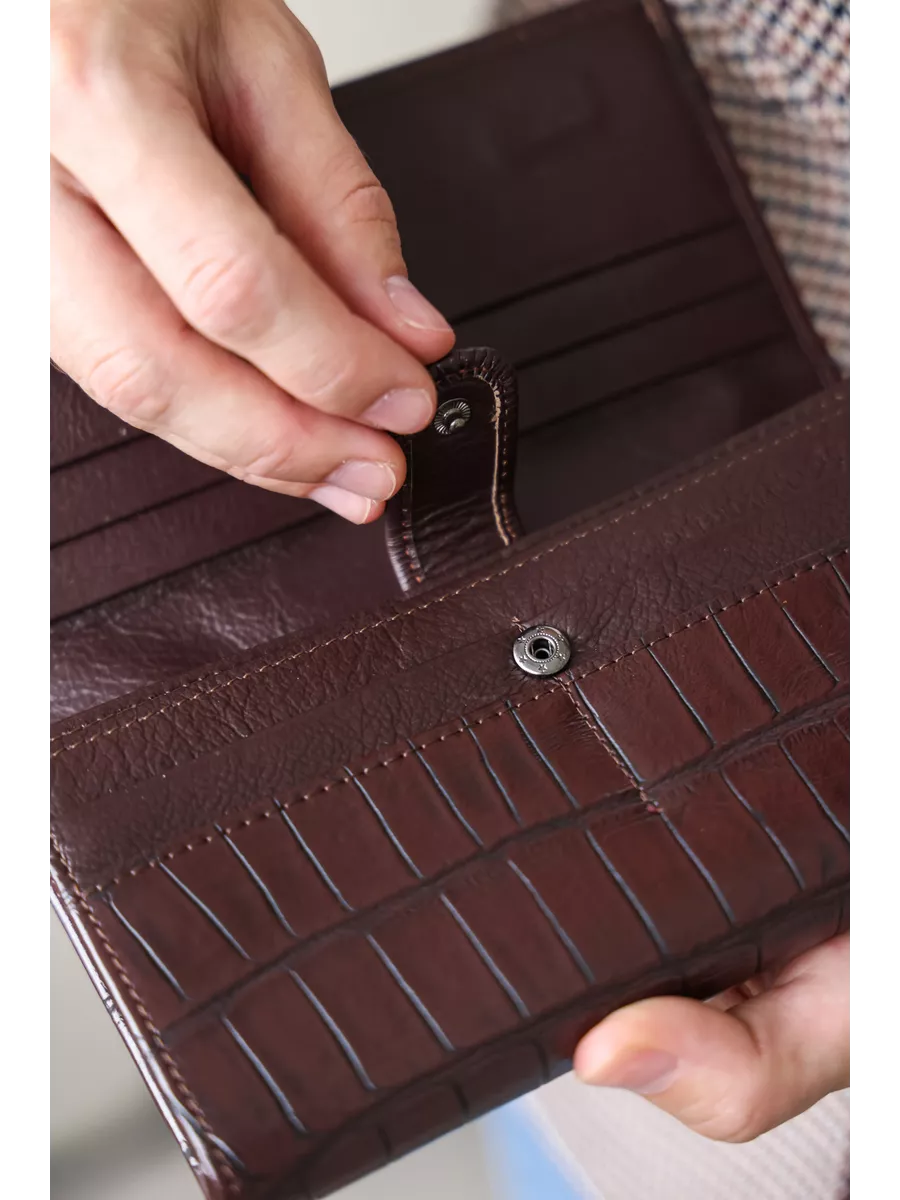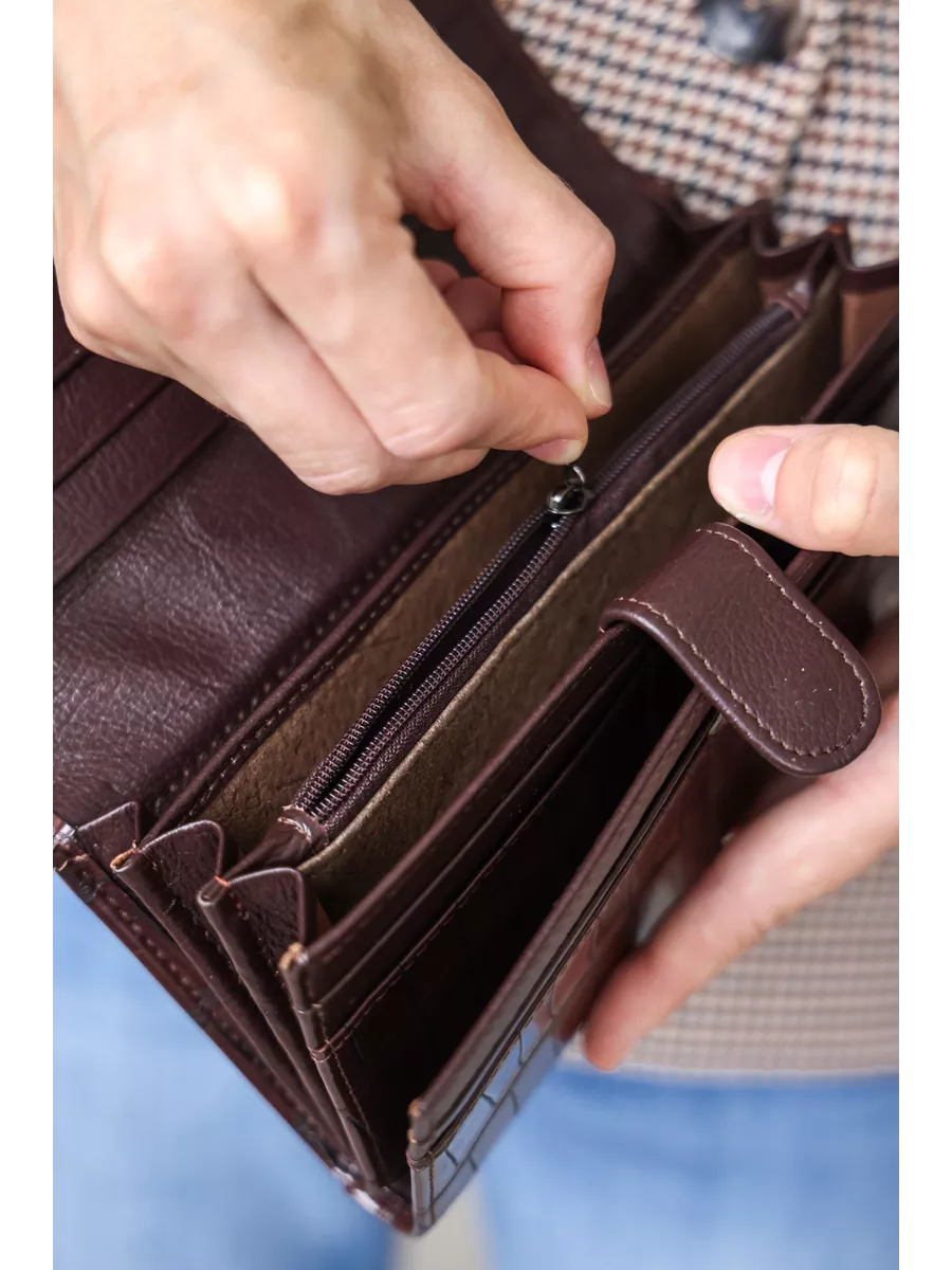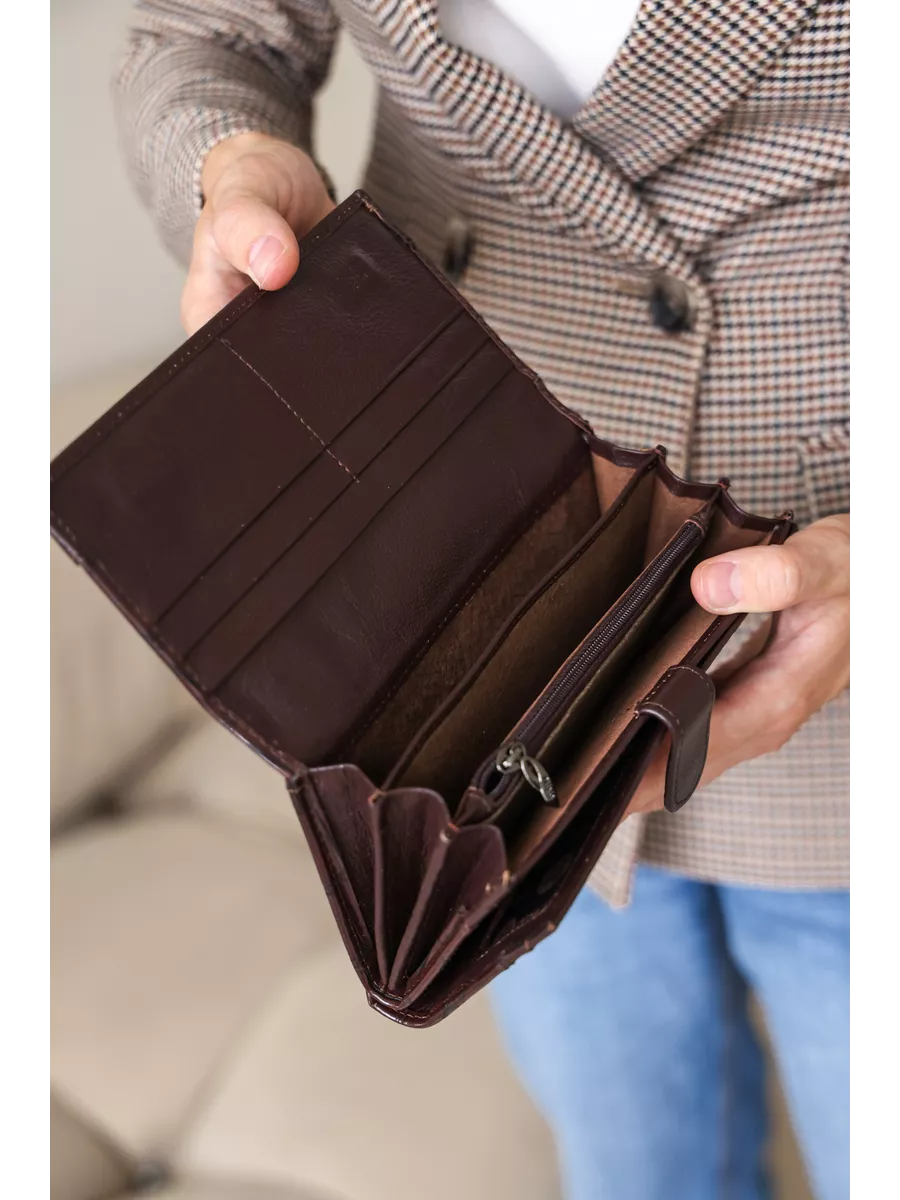 Большой женский кошелек из натуральной кожи без принта. Портмоне женское - незаменимый аксессуар гардероба. Большой, но компактный без труда поместится в женской сумочке и обеспечит надежное хранение кредиток и денег. Оснащён магнитной застежкой. Имеет отделения для карт и визиток, отделения для купюр и для монет. Вся фурнитура и швы прочные, долговечные, что обеспечит длительное время использования. Непромокаемый кошелек женский, который включает в себя кредитницу, визитницу и монетницу одновременно, подходит для взрослого, для девочки подростка и для девушки. Необходим в любое время года: летом, зимой, весной и осенью. Этот милый бумажник станет хорошим подарком любимой женщине, маме, подруге, дочке, девушке, сестре, коллеге на любой праздник.