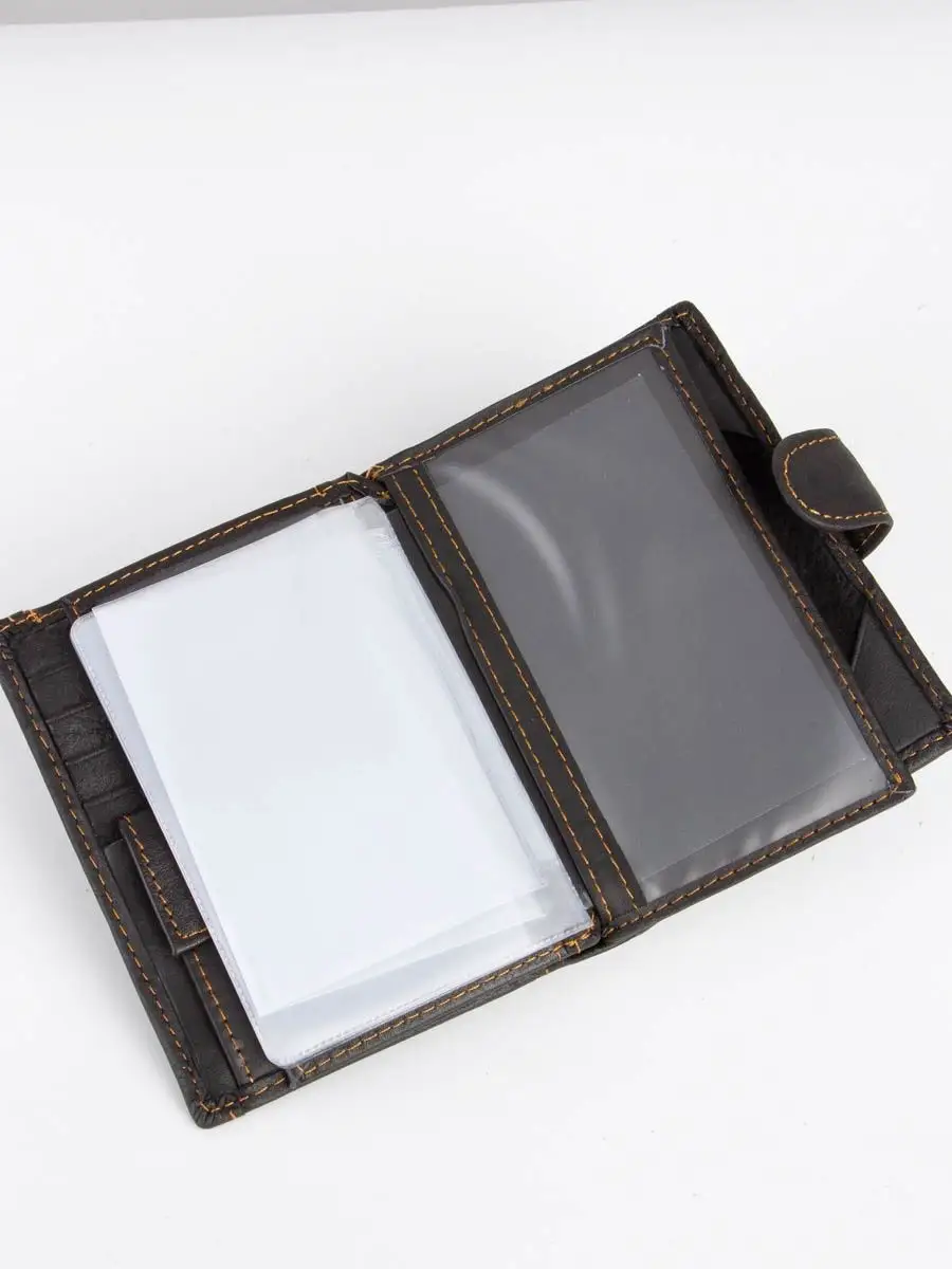 Кошелек мужской черный большой из натуральной кожи 3 в 1 с логотипом-принтом. Портмоне – это многофункциональный аксессуар, является не только необходимостью, но и дополнением к общему образу и имиджу. Позволяет хранить внутри многочисленных отсеков и кармашках не только финансовые средства, но и банковские карты, визитки, всевозможные купоны, документы и прочие мелочи. Актуален вопрос, как правильно выбрать мужской кошелек, неспроста, так как этот аксессуар имеет свойство быстро изнашиваться в силу постоянной эксплуатации. Бумажник на магнитной застежке-защелке имеет картхолдер из 8 отсеков для банковских карт и/или визиток, одно отделение под купюры, кармашек для мелочи (монет). Разворот с прозрачными отсеками для хранения документов, в том числе для авто. Третий разворот для паспорта или военного билета. Вся фурнитура и швы прочные, долговечные, что обеспечит длительное время использования. Необходим в любое время года: летом, зимой, весной и осенью. Вместительный, но компактный. Хороший подарок для мальчика, подростка, друга, любимого мужа, сына, парня, коллеги. На день рождения, новый год, юбилей или любой другой повод. Каталог нашего интернет-магазина брендовых мужских кошельков, включает черный и коричневый цвета с разными оттенками, в разном ценовом сегменте в том числе недорогие. Как ухаживать за изделием: 1. Не сушить. 2. Не оставлять надолго на солнце. 3. Не чистить мылом и обильным количеством воды. 4. Ухаживать при помощи «жидкой» кожи. 5. Периодически восстанавливайте блеск при помощи крема или глицерина.