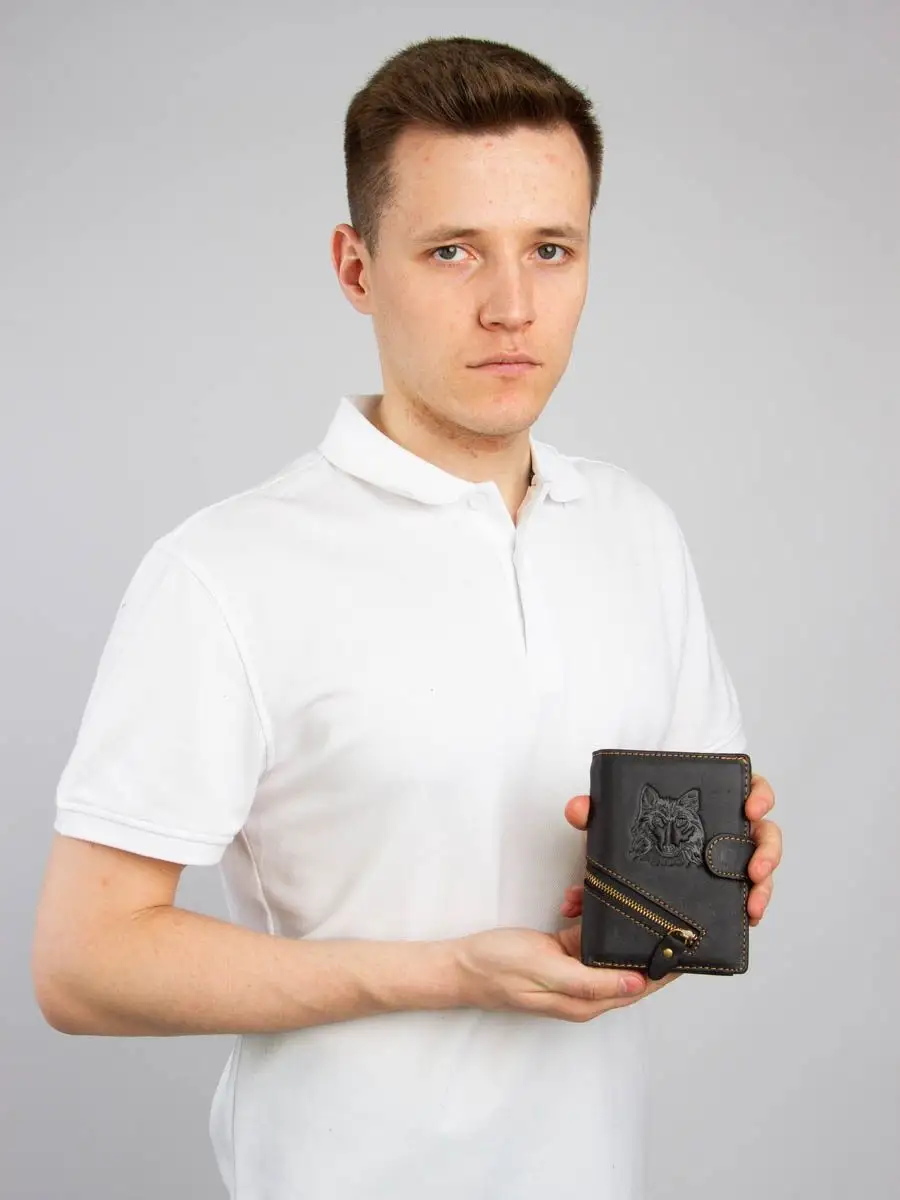 Кошелек мужской черный из натуральной кожи 3 в 1 с логотипом-принтом и декоративной молнией. Портмоне – это многофункциональный аксессуар, является не только необходимостью, но и дополнением к общему образу и имиджу. Позволяет хранить внутри многочисленных отсеков и кармашках не только финансовые средства, но и банковские карты, визитки, всевозможные купоны, документы и прочие мелочи. Актуален вопрос, как правильно выбрать мужской кошелек, неспроста, так как этот аксессуар имеет свойство быстро изнашиваться в силу постоянной эксплуатации. Бумажник на магнитной застежке-защелке имеет картхолдер из 8 отсеков для банковских карт и/или визиток, одно отделение под купюры, кармашек для мелочи (монет). Разворот с прозрачными отсеками для хранения документов, в том числе для авто. Третий разворот для паспорта или военного билета. Вся фурнитура и швы прочные, долговечные, что обеспечит длительное время использования. Необходим в любое время года: летом, зимой, весной и осенью. Вместительный, но компактный. Хороший подарок для мальчика, подростка, друга, любимого мужа, сына, парня, коллеги. На день рождения, новый год, юбилей или любой другой повод. Каталог нашего магазина брендовых мужских кошельков включает черный и коричневый цвета с разными оттенками, в разном ценовом сегменте в том числе недорогие. Как ухаживать за изделием: 1. Не сушить. 2. Не оставлять надолго на солнце. 3. Не чистить мылом и обильным количеством воды. 4. Ухаживать при помощи «жидкой» кожи. 5. Периодически восстанавливайте блеск при помощи крема или глицерина.