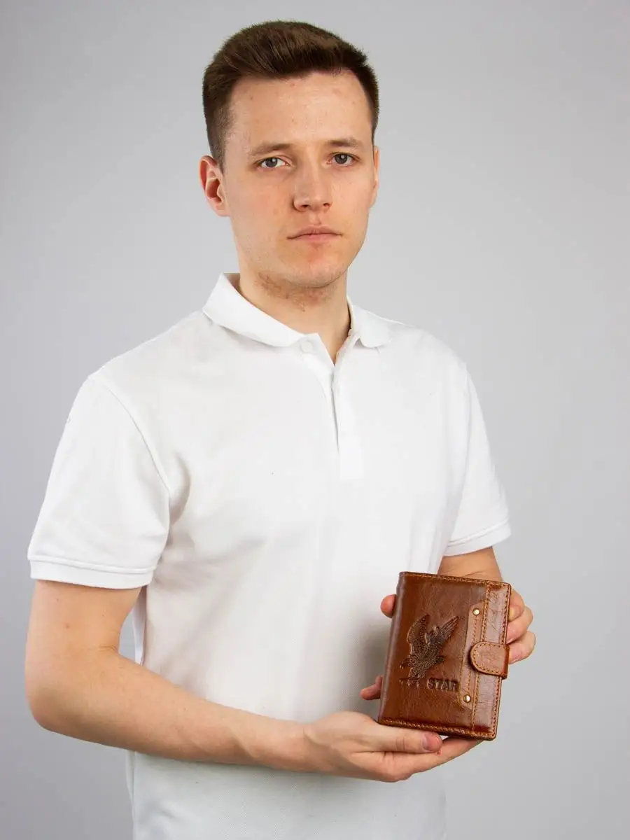 Кошелек мужской из натуральной кожи 3 в 1. Портмоне – это многофункциональный аксессуар, является не только необходимостью, но и дополнением к общему образу и имиджу. Позволяет хранить внутри многочисленных отсеков и кармашках не только финансовые средства, но и банковские карты, визитки, всевозможные купоны, документы и прочие мелочи. Вопрос, как правильно выбрать мужской кошелек, актуален неспроста, так как этот аксессуар имеет свойство быстро изнашиваться в силу постоянной эксплуатации. Бумажник на магнитной застежке-защелке имеет картхолдер из 7 отсеков для банковских карт и/или визиток, одно отделение под купюры, кармашек для мелочи (монет). Разворот с прозрачными отсеками для хранения документов, в том числе для авто. Третий разворот для паспорта или военного билета. Вся фурнитура и швы прочные, долговечные, что обеспечит длительное время использования. Необходим в любое время года: летом, зимой, весной и осенью. Вместительный, но компактный. Без молнии, однотонный без принта, с логотипом. Хороший подарок для мальчика, подростка, друга, любимого мужа, сына, парня, коллеги. На день рождения, новый год, юбилей или любой другой повод. Каталог нашего интернет-магазина брендовых мужских кошельков включает черный и коричневый цвета с разными оттенками, в разном ценовом сегменте в том числе недорогие. Как ухаживать за изделием: 1. Не сушить. 2. Не оставлять надолго на солнце. 3. Не чистить мылом и обильным количеством воды. 4. Ухаживать при помощи «жидкой» кожи. 5. Периодически восстанавливайте блеск при помощи крема или глицерина.