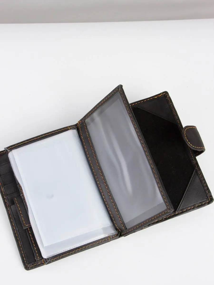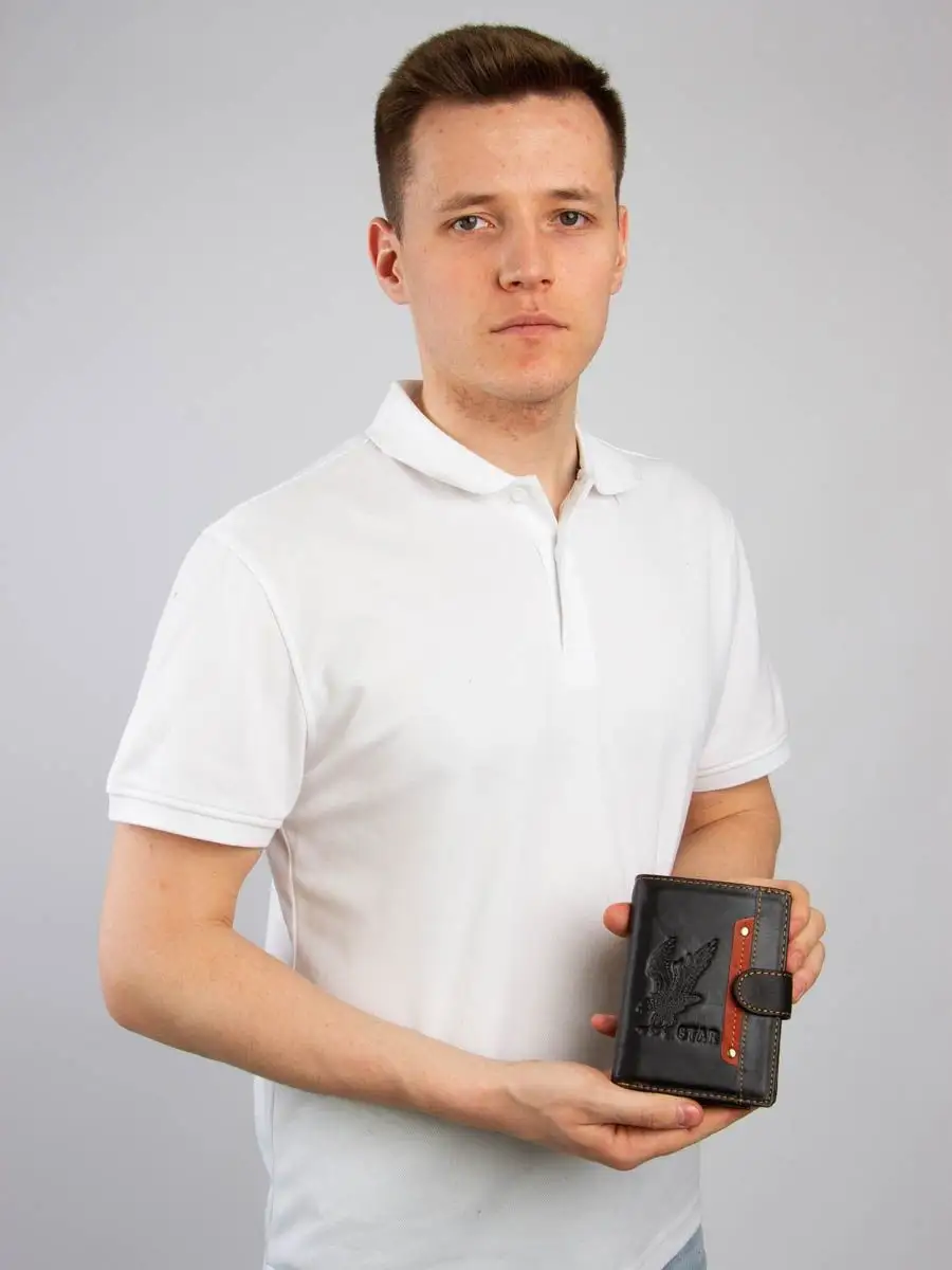 Кошелек мужской из натуральной кожи 3 в 1. Портмоне – это многофункциональный аксессуар, является не только необходимостью, но и дополнением к общему образу и имиджу. Позволяет хранить внутри многочисленных отсеков и кармашках не только финансовые средства, но и банковские карты, визитки, всевозможные купоны, документы и прочие мелочи. Вопрос, как правильно выбрать мужской кошелек, актуален неспроста, так как этот аксессуар имеет свойство быстро изнашиваться в силу постоянной эксплуатации. Бумажник на магнитной застежке-защелке имеет картхолдер из 7 отсеков для банковских карт и/или визиток, одно отделение под купюры, кармашек для мелочи (монет). Разворот с прозрачными отсеками для хранения документов, в том числе для авто. Третий разворот для паспорта или военного билета. Вся фурнитура и швы прочные, долговечные, что обеспечит длительное время использования. Необходим в любое время года: летом, зимой, весной и осенью. Вместительный, но компактный. Без молнии, однотонный без принта, с логотипом. Хороший подарок для мальчика, подростка, друга, любимого мужа, сына, парня, коллеги. На день рождения, новый год, юбилей или любой другой повод. Каталог нашего интернет-магазина брендовых мужских кошельков включает черный и коричневый цвета с разными оттенками, в разном ценовом сегменте в том числе недорогие. Как ухаживать за изделием: 1. Не сушить. 2. Не оставлять надолго на солнце. 3. Не чистить мылом и обильным количеством воды. 4. Ухаживать при помощи «жидкой» кожи. 5. Периодически восстанавливайте блеск при помощи крема или глицерина.