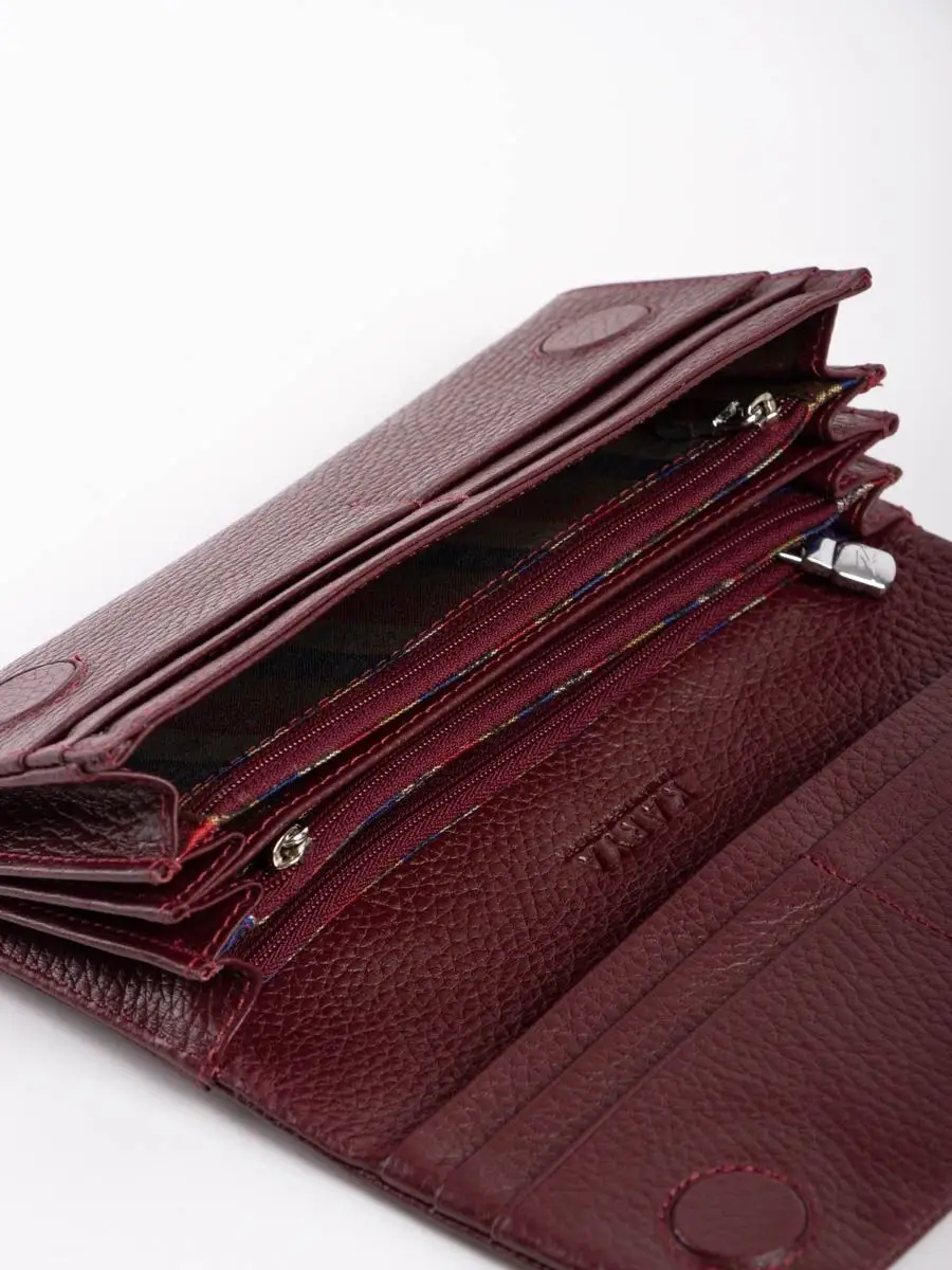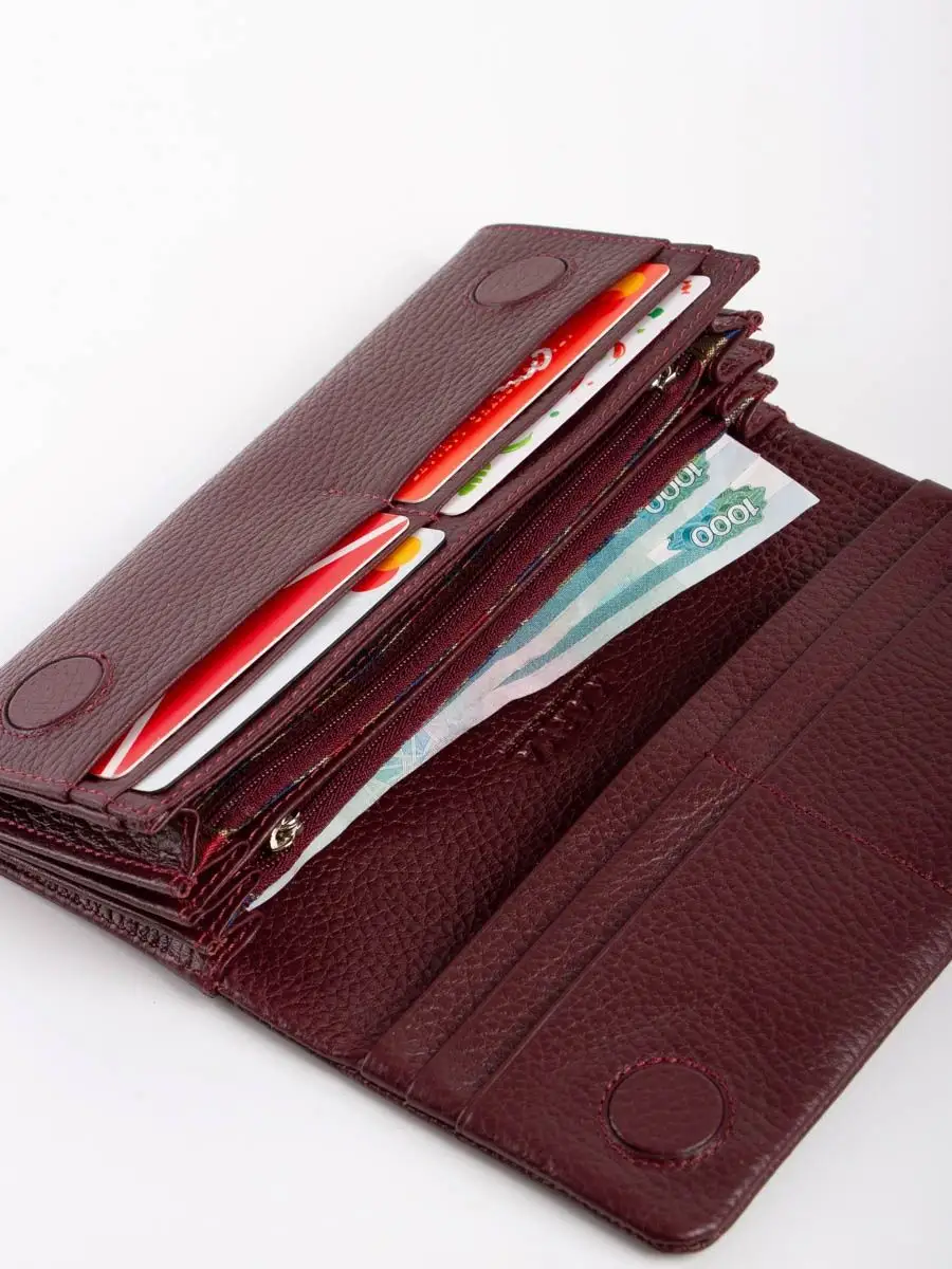 Кошелек женский из натуральной кожи без принта. Портмоне является незаменимым аксессуаром гардероба, он завершает образ и придает ему изюминку. Большой, но компактный без труда поместится внутри женской сумочки и обеспечит надежное хранение кредиток и денег или может заменить клатч для наряда на свидание летним вечером, настолько стильно он смотрится. Оснащён магнитной застежкой. Имеет 8 отделения для карт и/или визиток. Три отделения для купюр, два кармашка на молнии для монет. Также на обратной стороне карман на молнии. Вся фурнитура и швы прочные, долговечные, что обеспечит длительное время использования. Молодежный непромокаемый кошелек, который включает в себя кредитницу, визитницу и монетницу одновременно, подходит для взрослого, для подростка и для девочки. Необходим в любое время года: летом, зимой, весной и осенью. Этот милый бумажник станет хорошим подарком любимой женщине, маме, подруге, дочке, девушке, сестре, коллеге на любой праздник: день рождения, юбилей, новый год, 8-е марта, любое другое мероприятие или просто так. Даже самые удобные женские кошельки не подходят всем без исключения. Вкусы разные. Предпочтения формируются с учетом формы, размера, особенностей застежки, цвета, материала, декоративной фурнитуры. В нашем интернет-магазине разнообразие моделей радует глаз, а это значит, что каждая модница сможет подобрать для себя наиболее подходящий вариант. Каталог включает такие цвета как красный, чёрный, зеленый, желтый, синий, с принтом и другие, в разном ценовом сегменте в том числе недорогие.