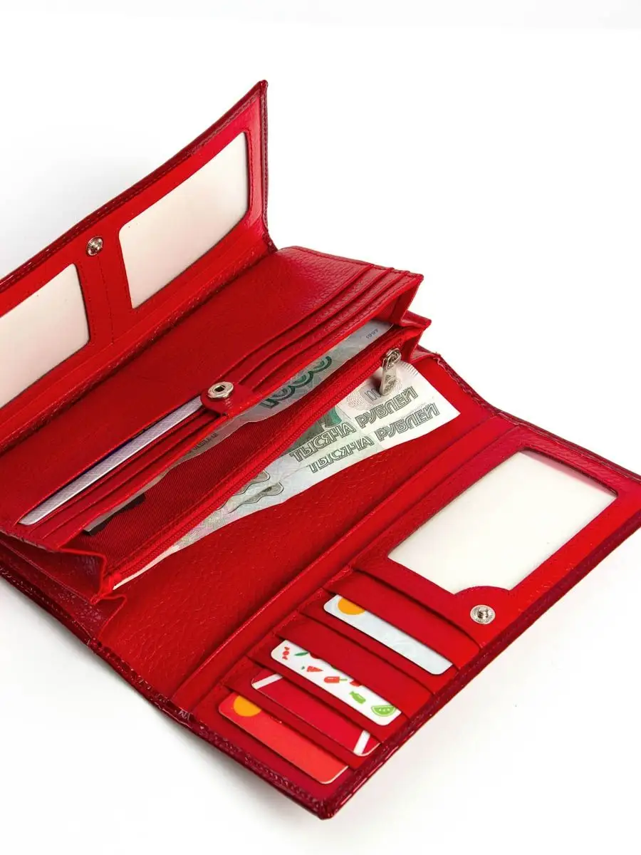 Кошелек женский из натуральной кожи без принта. Портмоне является незаменимым аксессуаром гардероба, он завершает образ и придает ему изюминку. Большой, но компактный без труда поместится внутри женской сумочки и обеспечит надежное хранение кредиток и денег или может заменить клатч для наряда на свидание летним вечером, настолько стильно он смотрится. Оснащён магнитной застежкой - защелкой. Имеет 14 отделений для карт и/или визиток, три из которых прозрачные. Два отделения для купюр и один кармашек на молнии для монет. Также имеется с обратной стороны кармашек на молнии. Вся фурнитура и швы прочные, долговечные, что обеспечит длительное время использования. Молодежный непромокаемый кошелек, который включает в себя кредитницу, визитницу и монетницу одновременно, подходит для взрослого, для подростка и для девочки. Необходим в любое время года: летом, зимой, весной и осенью. Этот милый бумажник станет хорошим подарком любимой женщине, маме, подруге, дочке, девушке, сестре, коллеге на любой праздник: день рождения, юбилей, новый год, 8-е марта, любое другое мероприятие или просто так. Даже самые удобные женские кошельки не подходят всем без исключения. Вкусы разные. Предпочтения формируются с учетом формы, размера, особенностей застежки, цвета, материала, декоративной фурнитуры. В нашем интернет-магазине разнообразие моделей радует глаз, а это значит, что каждая модница сможет подобрать для себя наиболее подходящий вариант. Каталог включает такие цвета как красный, чёрный, зеленый, желтый, синий, с принтом и другие, в разном ценовом сегменте в том числе недорогие.