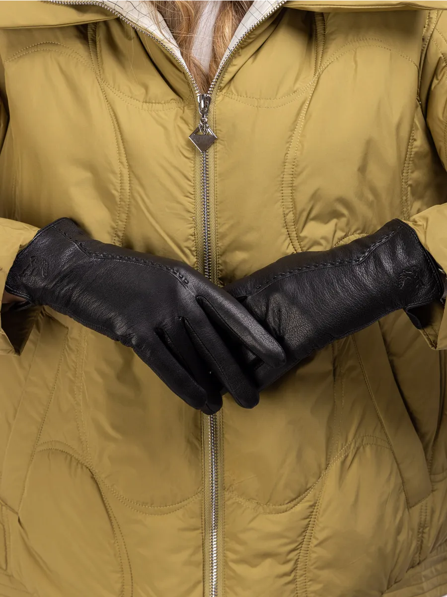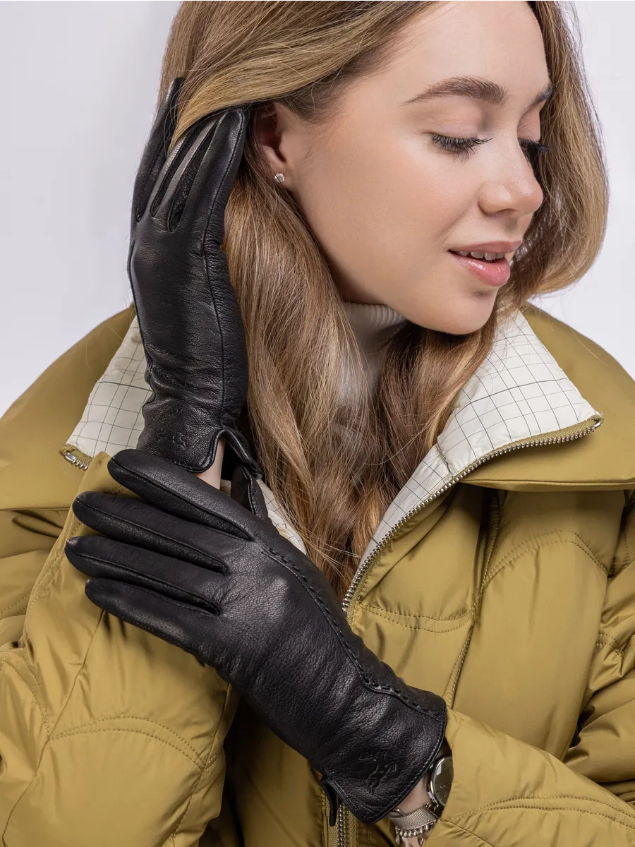 Женские кожаные перчатки из кожи оленя. Зимние перчатки женские демисезонные обеспечивают тепло и комфорт в холодную погоду. Кожаные перчатки для девушек, для женщин утепленные, надежно удерживают тепло. Теплые демисезонные осенние зимние перчатки из оленьей кожи прочные и эластичные. Классические черные перчатки женские легко чистятся, не трескаются и не утрачивают свою мягкость. Демисезонные рукавицы на меху из натуральной кожи оленя подчеркнут Ваш стиль и женственность. Перчатки женские кожаные осенние и для теплой зимы - это стильные перчатки из натуральной кожи с шерстяной подкладкой. Эти перчатки женские кожаные отличаются высоким качеством и долговечностью. Натуральная кожа, из которой они сделаны, обеспечивает комфорт и защиту рук. Шерстяная подкладка сохраняет тепло и обеспечивает дополнительную защиту от холода. Наши элегантные женские перчатки теплые идеально подойдут для тех, кто ценит комфорт и стиль в одежде. Эти перчатки женские теплые - отличный аксессуар для тех, кто ищет себе или в подарок качественные и стильные перчатки на любой сезон.