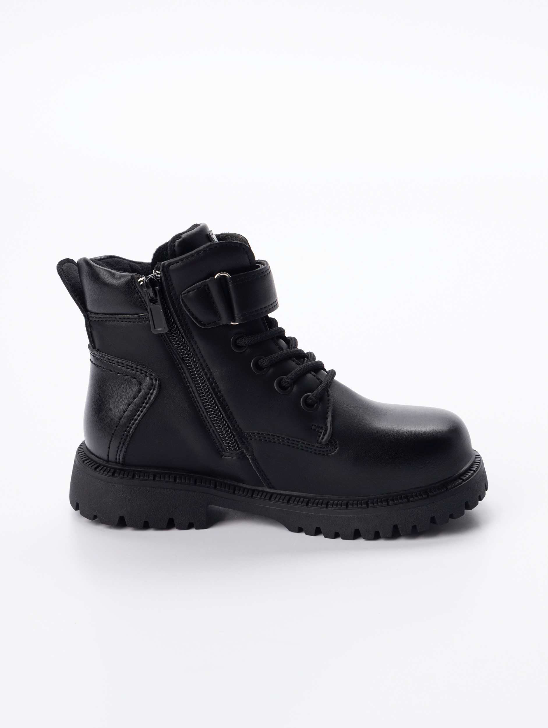 Детские демисезонные ботинки станут отличным выбором для прогулок, посещения школы и повседневной носки. Универсальный дизайн подойдет как для мальчика, так и для девочки. Ботинки осенние для девочки выполнены из качественной экокожи, что обеспечивает прочность и легкость в уходе. Материал отличается устойчивостью к влаге и износу, позволяя сохранять аккуратный внешний вид даже при активной эксплуатации ребенком. Удобная шнуровка надежно фиксирует осенние ботинки детские на ноге подростка, а дополнительная липучка облегчает процесс надевания и снятия. Высокая посадка защищает голеностоп от холода и поддерживает правильную посадку стопы во время движения. Осенние ботинки для мальчика сохраняют комфортную температуру в осенний сезон и предотвращают переохлаждение. Особое внимание уделено подошве: она изготовлена из прочного материала с нескользящим рельефом, что обеспечивает уверенное сцепление с поверхностью даже в сырую погоду. Модный внешний вид гармонично сочетается со школьной формой или повседневной одеждой ребенка, делая эти демисезонные ботинки для девочки актуальными для любого случая — будь то школа или прогулки на улице. Детали выполнены аккуратно: строчки ровные, материал приятен на ощупь, нет лишних декоративных элементов — все лаконично и стильно. Детская демисезонная обувь легко очищается от загрязнений влажной салфеткой или щеткой благодаря особенностям экокожи. Это особенно важно для родителей школьников: демисезонные ботинки для мальчика всегда выглядят ухоженными без лишних усилий. Школьный стиль позволяет сочетать эти ботиночки с различной одеждой. Демисезонная модель универсальна по своему назначению: подходит для детей разного возраста — от младших школьников до подростков. Она обеспечит защиту от дождя в осенний период благодаря высокой конструкции и плотному прилеганию к ноге ребенка. Приобретите эти демисезонные ботинки, которые обеспечат комфорт и тепло ребенку в холодный сезон!