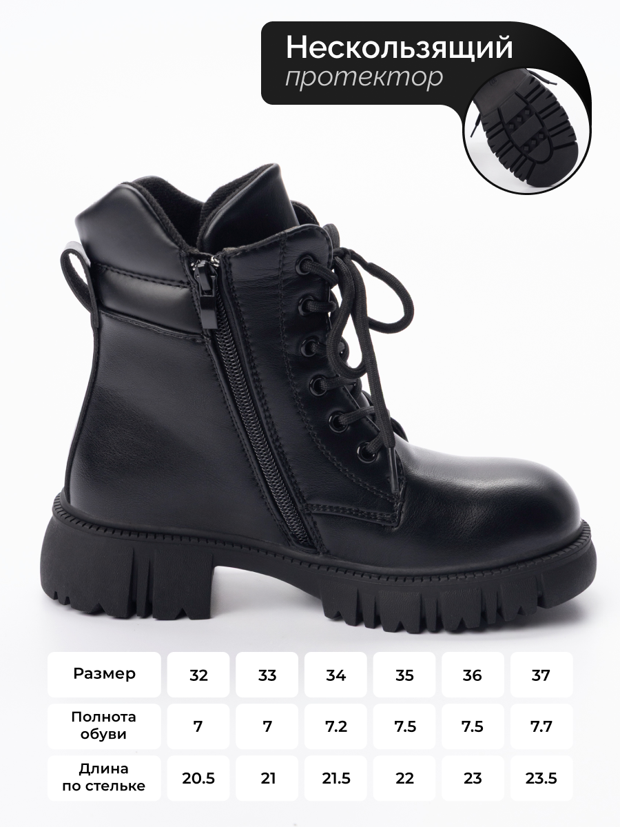 Эти детские демисезонные ботинки — идеальный выбор на осень и весну. Детские осенние ботинки подойдут для школьницы и подростка, обеспечивая комфорт и защиту в межсезонье. Экокожа отличается прочностью, устойчивостью к износу и легкостью в уходе, что делает ботинки для девочки практичным решением для активного ребенка. Высокий задник поддерживает стопу, снижая риск усталости даже при длительных прогулках или занятиях в школе. Ботинки демисезонные для девочки оснащены удобными шнурками, что позволяет легко надевать обувь самостоятельно. Мягкая внутренняя отделка сохраняет тепло внутри, делая осенние ботинки для девочки уютными даже в прохладную погоду. Благодаря продуманной конструкции ребенку будет комфортно находиться на улице во время осенних дождей или весеннего ветра. Нескользящая подошва обеспечивает надежное сцепление с различными поверхностями: будь то мокрый асфальт возле школы или земляная дорожка во дворе. Прочный материал выдержит ежедневные нагрузки — активные игры, перемещения по школьным коридорам и прогулки после занятий не станут испытанием для этой пары обуви. Ботинки на осень для девочки имеют стильный внешний вид, который подойдет как для повседневной носки, так и для школьных мероприятий. Универсальный дизайн гармонирует с формой ученика или обычной одеждой ребенка. Детская осенняя обувь органично дополнят гардероб подростка и помогут создать аккуратный образ без лишней вычурности. Особое внимание уделено деталям: прошивка выполнена аккуратно, швы ровные, мягкая подкладка — все это говорит о качестве исполнения. Высокий задник защищает голеностоп от натирания, а анатомическая форма способствует правильному положению стопы при ходьбе. Выбирайте эти подростковые ботинки на осень, которые обеспечат ребенку комфорт и тепло в холодное время года!