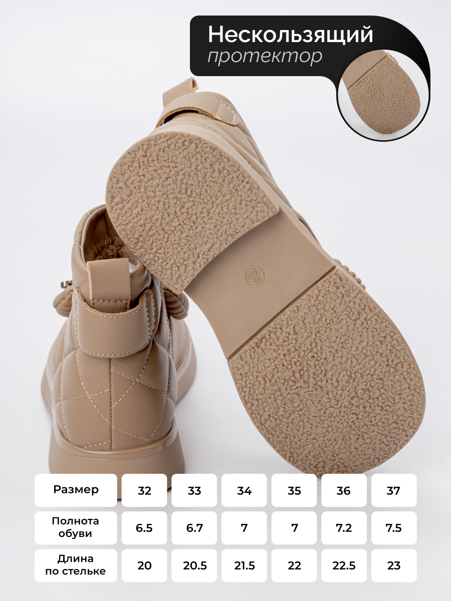 Обувь легко чистится и быстро сохнет после контакта с влагой, что существенно упрощает уход за ней. Выбирая эти демисезонные ботинки, вы обеспечиваете надежную защиту от непогоды без ущерба стилю и удобству. Прочная подошва выдерживает активные движения ребенка, а качественные материалы обеспечат комфорт в течение всего дня.