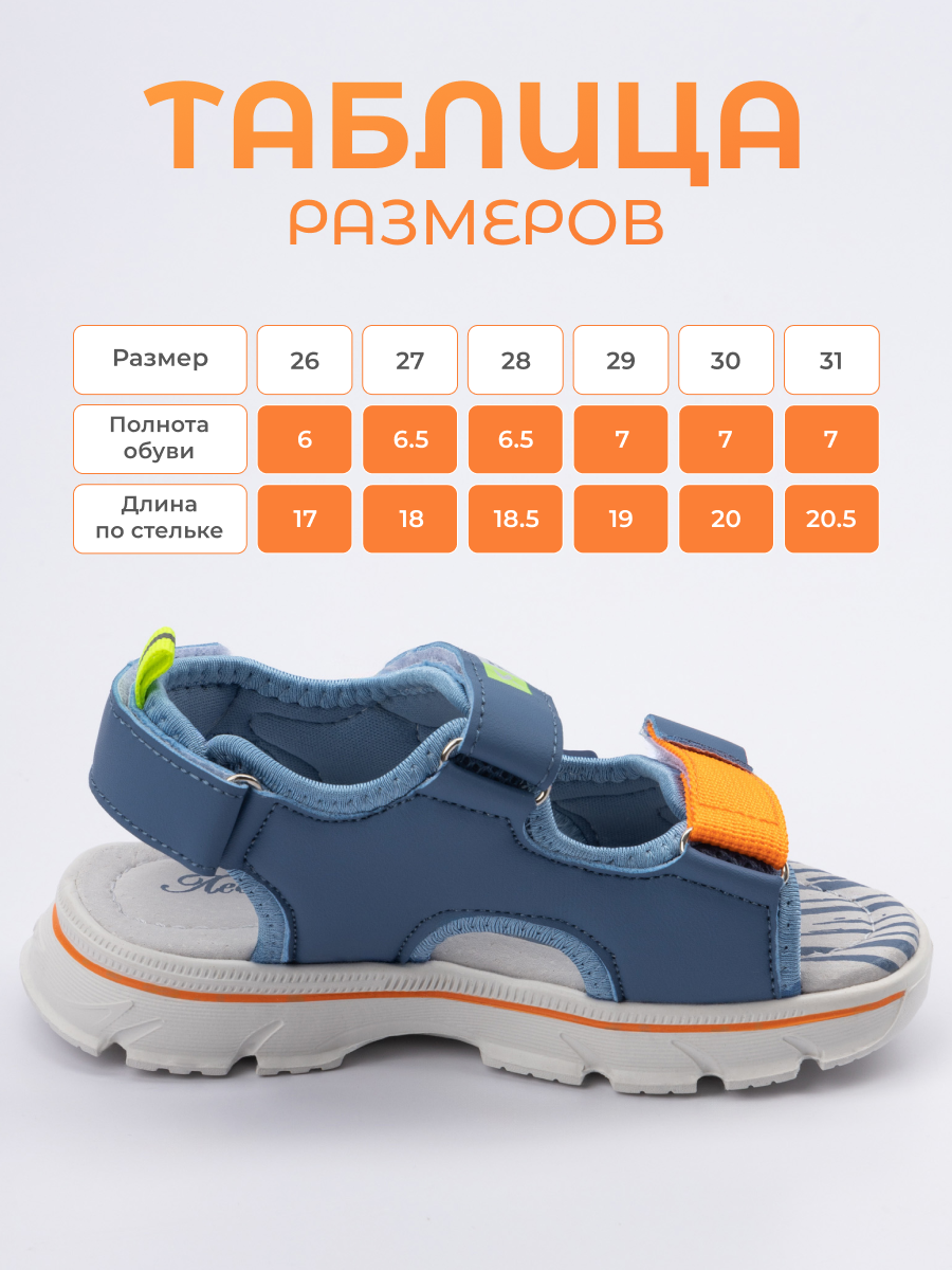 Летние сандалии для мальчика — идеальный выбор для маленьких модников, которые любят активные прогулки и игры. Эта обувь в садик для мальчика созданы с учетом формы детской стопы, обеспечивая комфорт и правильное положение ноги во время носки. Благодаря легкой конструкции и качественным материалам сандалии для малышей подойдут как для повседневного ношения, так и для отдыха на пляже или у моря. Открытый носок и пятка позволяют коже дышать, что особенно важно в жаркую погоду. Застежка на липучке обеспечивает удобство использования — ребенок сможет самостоятельно надеть обувь без лишних усилий. Качественная подошва отличается гибкостью и прочностью, что делает детские сандалии подходящими для игр на игровой площадке, в садике или во дворе. Сандалии в школу для мальчика прекрасно подходят как для спокойных прогулок, так и для активного досуга. Мягкие качественные материалы бережно заботятся о чувствительной коже малыша, предотвращая натирания. Летнее оформление модели привлекает внимание своим красивым дизайном, который отлично сочетается с любыми нарядами ребенка. Детские сандалии станут отличным дополнением гардероба для мальчиков. Универсальная форма подходит для разных случаев: будь то игры на пляже или отдых в саду. Открытый носок обеспечивает воздухопроницаемость, а удобные резинки надежно фиксируют обувь на ноге даже при высокой активности ребенка. Эта детская летняя обувь идеально впишется в образ вашего ребенка благодаря их функциональности и внешней привлекательности. Летняя обувь для мальчика подойдет как для прогулок по городу, так и для путешествий к морю или пикников на природе. Детские сандалии на липучке помогут малышам наслаждаться летом с комфортом!