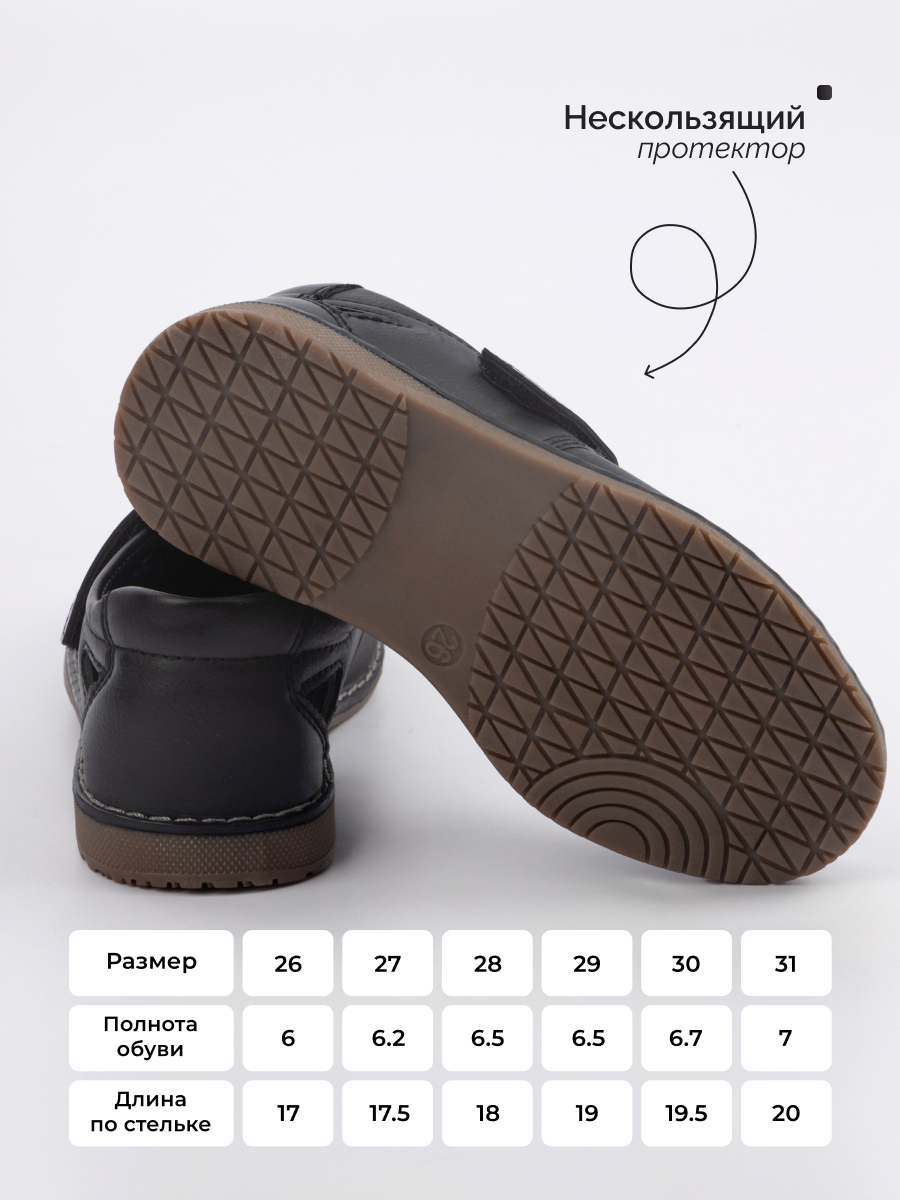 Эти школьные туфли для мальчиков созданы с учетом потребностей современных школьников и обеспечивают комфорт в течение всего дня. Туфли для мальчика на липучке — прекрасный выбор для активных детей, которым необходимо быстро менять обувь. Изготовленная из качественной искусственной кожи сменка в школу для мальчика обладает прочной конструкцией и длительным сроком службы. Экокожа обеспечивает долговечность, а перфорированный дизайн делает подростковые туфли более воздухопроницаемыми летом и весной, что позволяет ногам дышать даже в самые жаркие дни. Отличная замена повседневным мокасинам или сандалиям, эти летние туфли для мальчика сохраняют форму после частого использования. Их удобство оценят как малыши, только начинающие свой путь в садике, так и подростки-школьники, привыкшие к интенсивному распорядку дня. Надежная фиксация благодаря застежкам на липучке облегчает процесс надевания и снимания обуви даже самым маленьким детям. Школьные мероприятия требуют определенного дресс-кода, поэтому классический стиль этих полуботинок прекрасно сочетается с костюмами или брюками. Высота каблука тщательно подобрана для обеспечения поддержки пятки без перегруженности ступни ребенка. Универсальный дизайн делает эти мокасины для мальчиков подходящими не только для учебных занятий, но и на вечерние прогулки или важные школьные события. Эти туфли для мальчиков адаптированы под индивидуальные нужды ребенка. Это может быть полезно как подросткам, так и малышам во время их активного роста. Сочетание классицизма с современными решениями делает эту школьную сменку удачным выбором на каждый день! Школьная обувь поддерживает правильное положение стопы благодаря устойчивой конструкции пятки. Результат — удобство во всех действиях вашего ребёнка: будь то бег по школьной площадке или спокойное передвижение по коридорам школы.