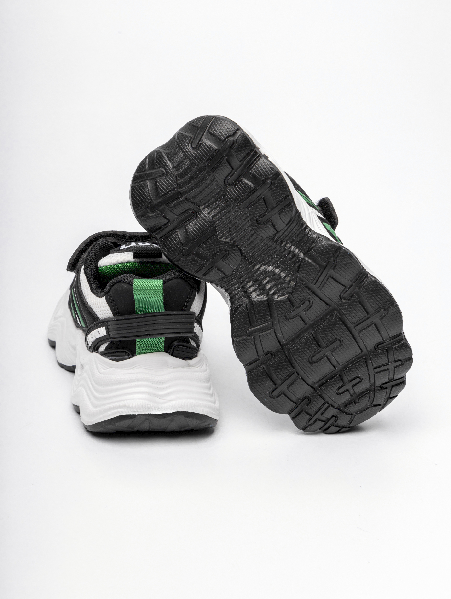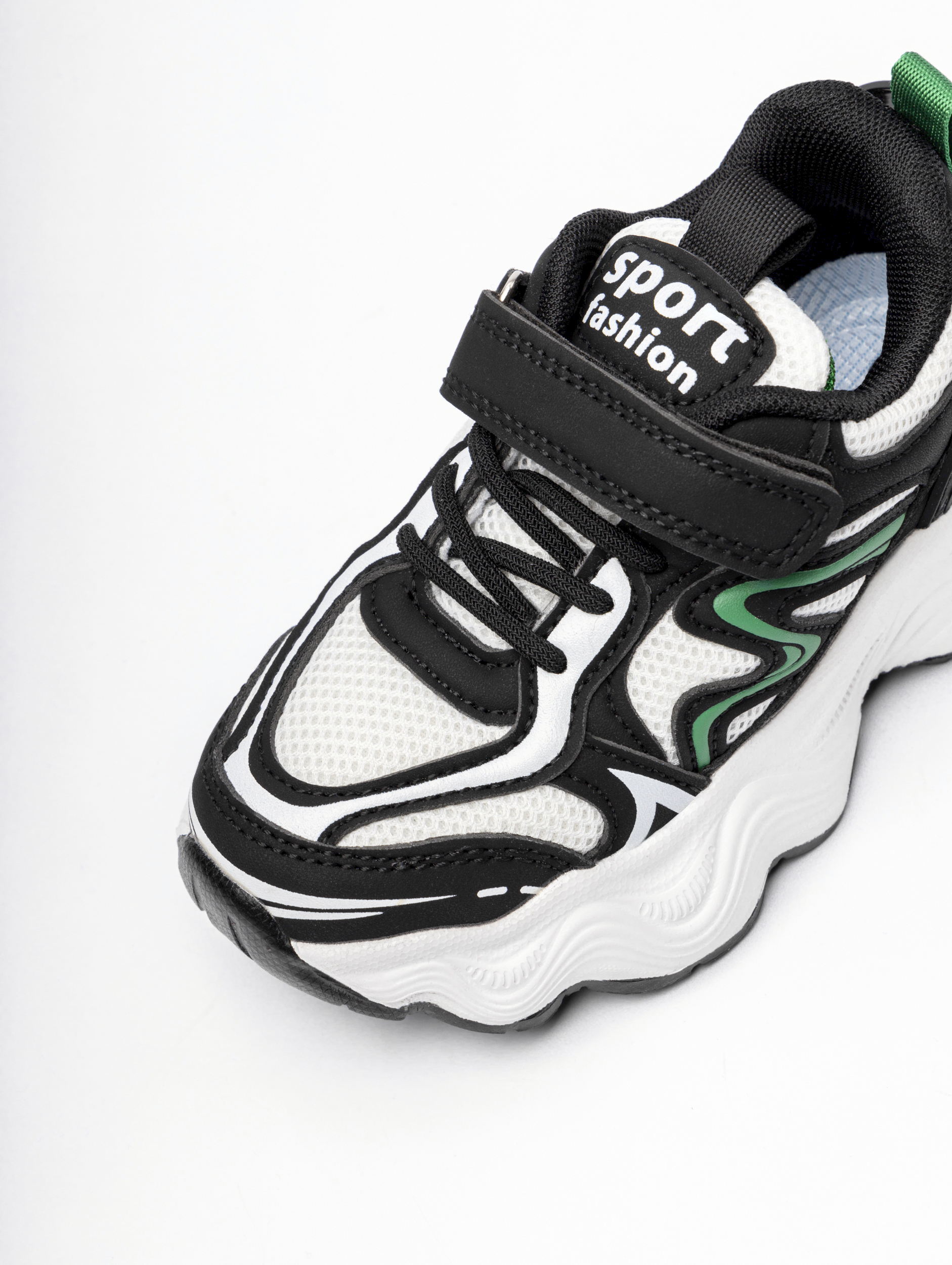 Летние детские кроссовки на липучке арт. K232-9-1-Black-White-Green-TZB2-FF