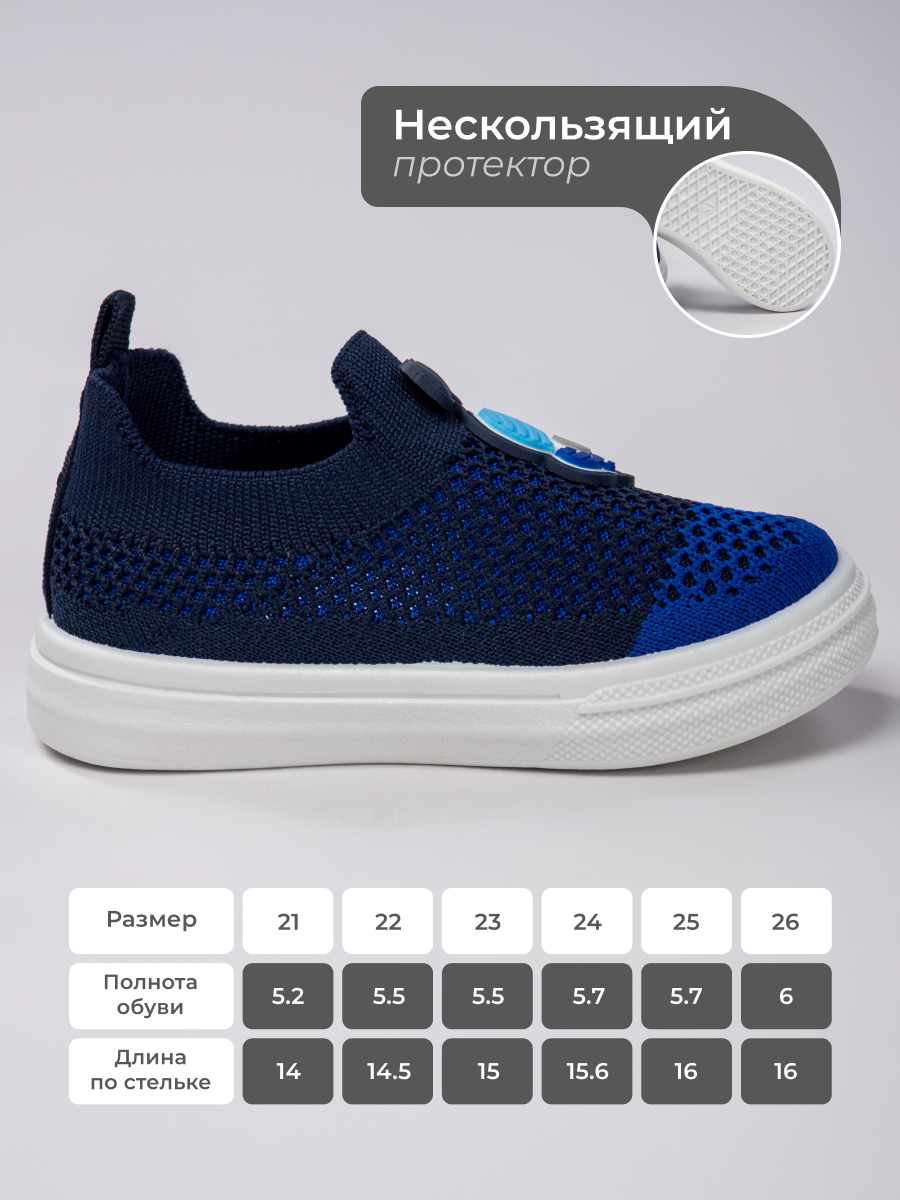Легкие и удобные кроссовки для мальчика станут идеальной обувью на каждый день. Изготовленные из качественного материала, детские летние кроссовки обеспечат комфорт в течение всего дня и позволят ногам "дышать", что особенно важно в жаркую погоду. Кроссовки без шнурков легко надевать и снимать, что оценят малыши, подростки и их родители. Летние кроссовки для мальчика отлично подойдут для прогулок по улице, занятий спортом в зале или на открытом воздухе. Гибкая подошва способствует естественному движению стопы, а легкий материал обеспечивает свободу действий. Эти кеды для мальчика – превосходный выбор как для спортивных тренировок или физкультуры, так и для школы или садика. Текстильная основа делает детские спортивные кроссовки мягкими и приятными к телу, предотвращая натирания даже при активной носке. Такие кроссовки для подростка станут хорошим вариантом как сменной обуви в спортзал или школьный класс, так и для танцевальных занятий. Эти легкие детские кроссовки идеально сочетают модный дизайн с практичностью. Универсальность позволяет использовать их не только летом: гибкость конструкции делает их комфортными даже в переходные сезоны. Кроссовки в школу отлично подходят для активного ребенка любого возраста — от малышей до подростков. Кроссовки для малышей отличаются прочностью материалов, поэтому выдержат ежедневное использование. Летняя детская обувь создана специально для маленьких исследователей мира: легкость конструкции подарит свободу передвижений на прогулках или во время игр. Кроссовки в садик прекрасно адаптируются под любую ситуацию. Эргономичный дизайн и легкость кроссовок обеспечит вашему ребенку комфорт на протяжении всего дня!