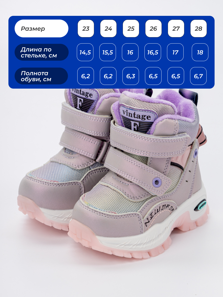 Ботинки детские зимние противоскользящие арт. D801-6-11-L-Purple-Pink-TZB2-FF