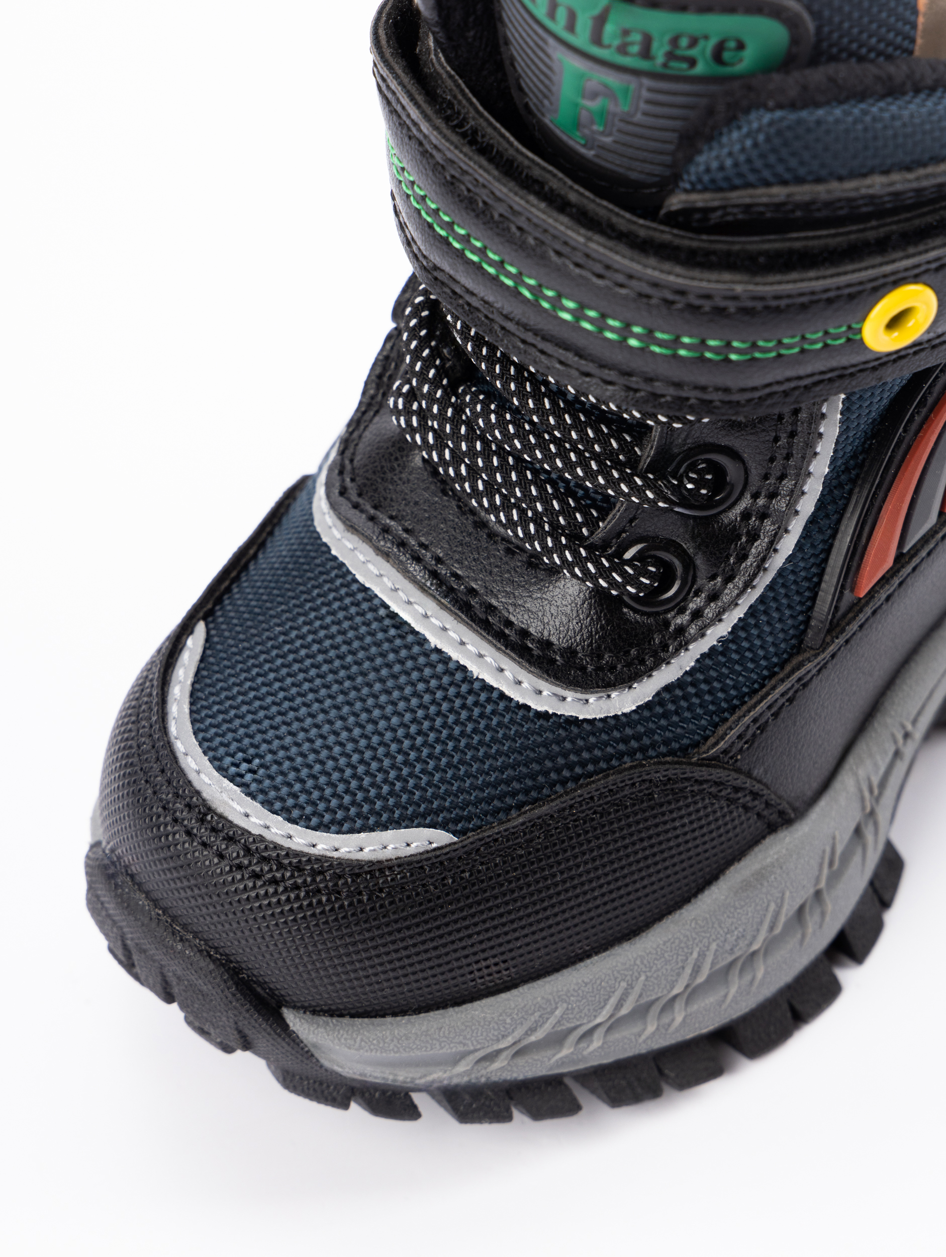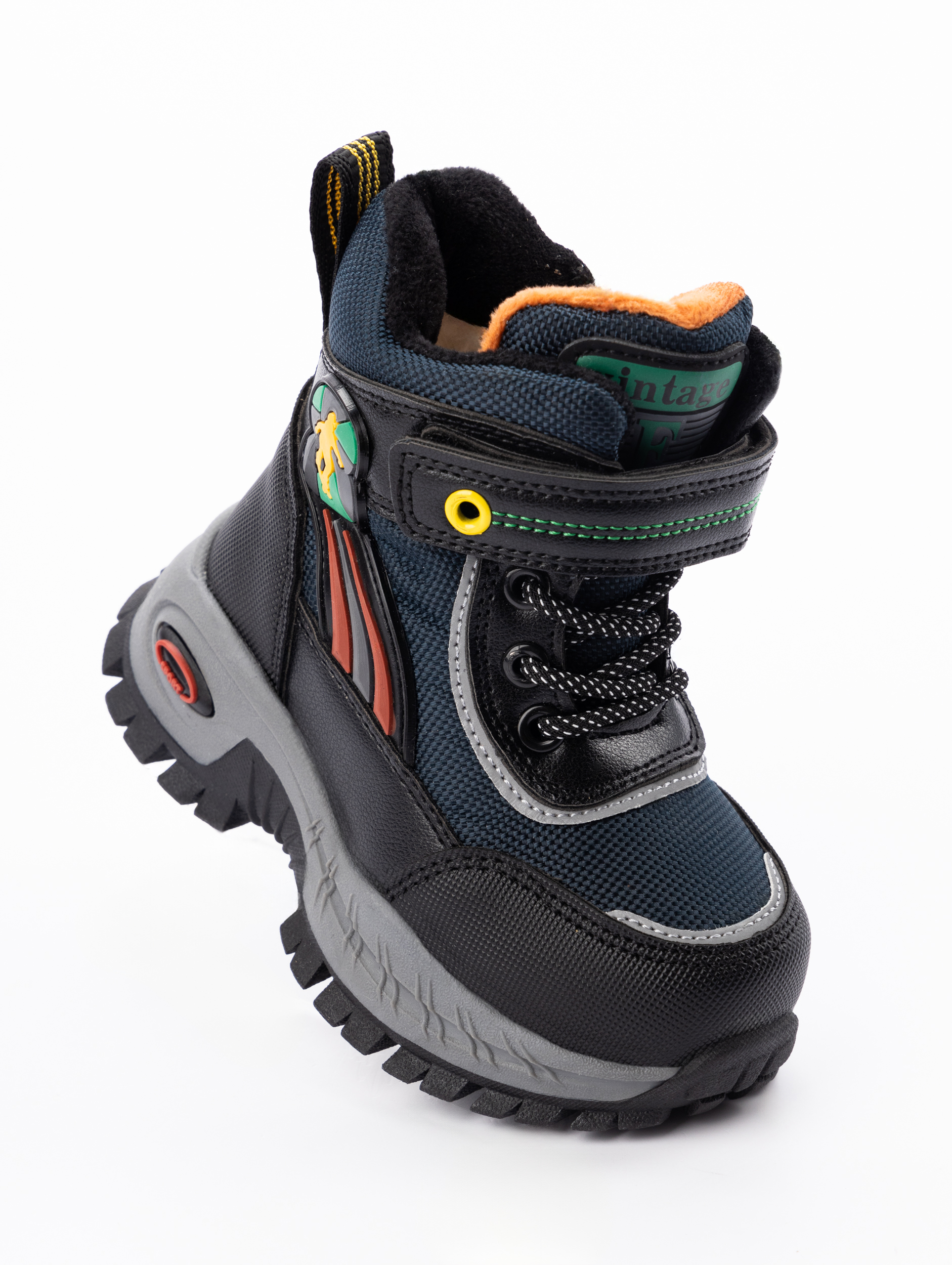 Дополнительным преимуществом является продуманная система фиксации: классическая шнуровка с дополнительной липучкой-регулятором в сочетании с боковой молнией позволяет легко регулировать полноту ботинка и надежно фиксировать стопу. Усиленные мыски и жесткий задник обеспечивают правильную поддержку во время движения, что особенно важно для формирующейся детской ножки. Такая конструкция гарантирует идеальную посадку без сдавливания и позволяет ребенку самостоятельно справляться с застежками.