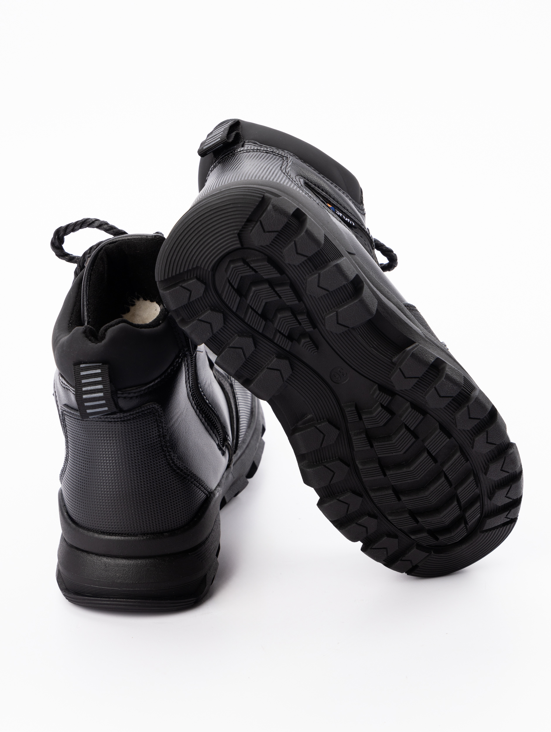 Защиту от холода обеспечивает мягкий экологичный мех внутри ботинок, который создает комфортный микроклимат и предотвращает переохлаждение. Верх выполнен из износостойкой экокожи в сочетании с прочным материалом, что гарантирует долговечность и устойчивость к деформации. Подошва демонстрирует надежное сцепление с различными поверхностями, обеспечивая безопасность при движении по заснеженным дорогам и тротуарам.
