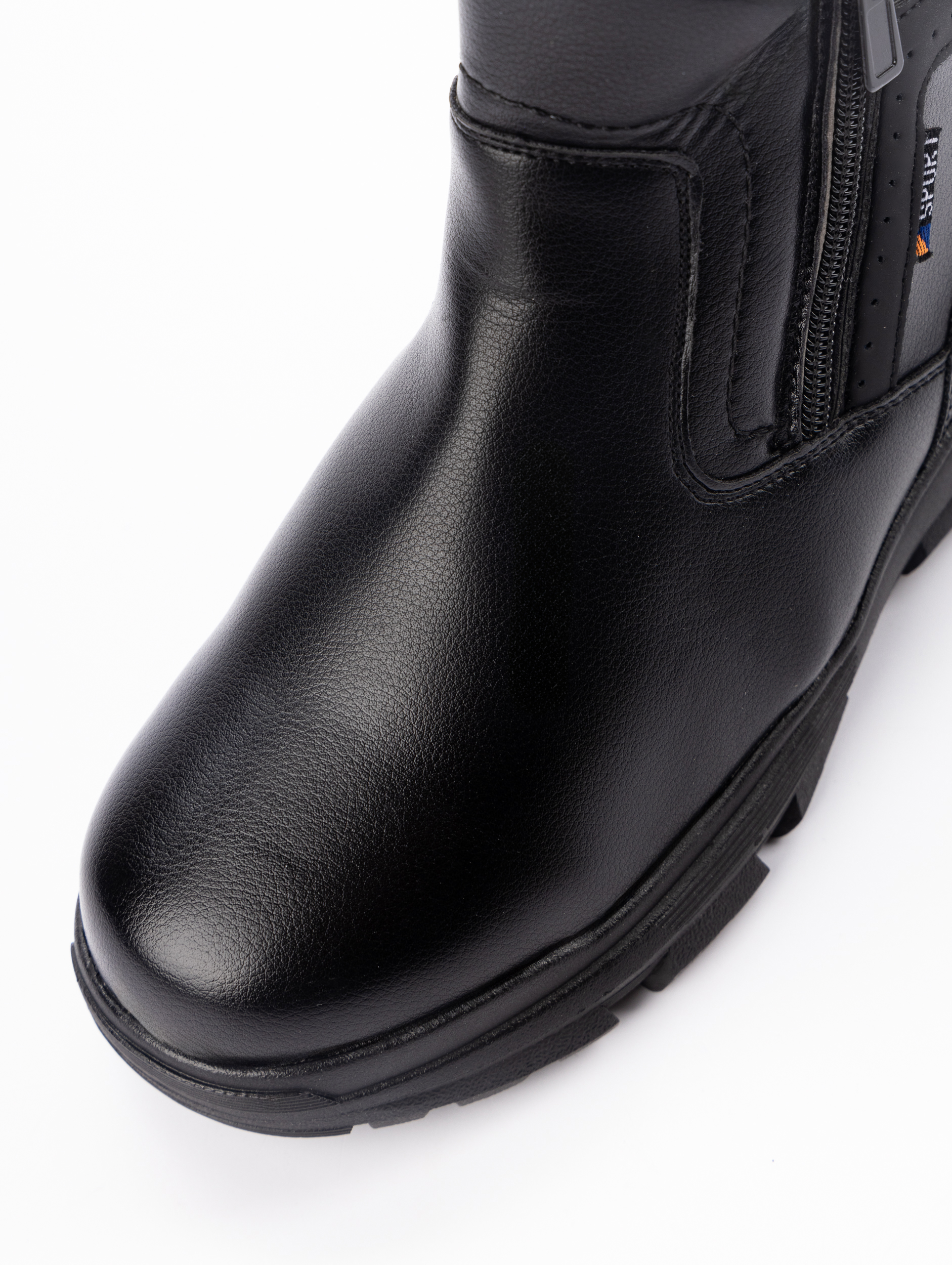 Дополнительным преимуществом является удобная система фиксации: боковые застежки-молнии с обеих сторон позволяют легко регулировать посадку по полноте ноги и надежно фиксировать стопу. Эта конструкция обеспечивает простоту использования и максимальный комфорт при ношении, позволяя быстро обуваться и снимать ботинки без лишних усилий.