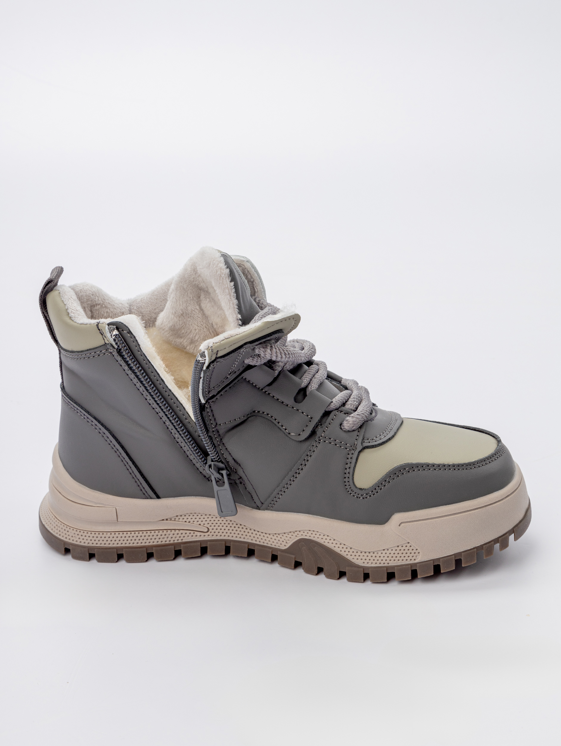 Защиту от холода обеспечивает мягкий экологичный мех внутри кроссовок, который создает комфортный микроклимат и предотвращает переохлаждение. Верх выполнен из износостойкой экокожи в сочетании с прочным материалом, что гарантирует долговечность и устойчивость к деформации. Подошва демонстрирует надежное сцепление с различными поверхностями, обеспечивая безопасность при движении по заснеженным дорогам и тротуарам.