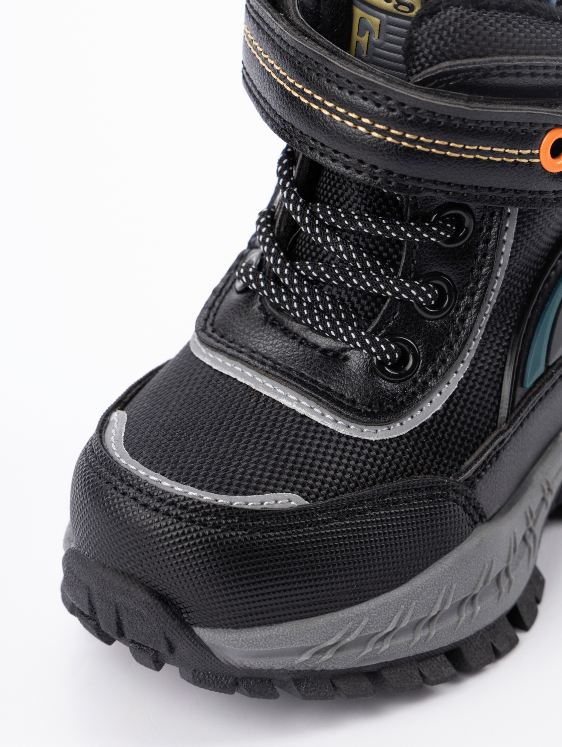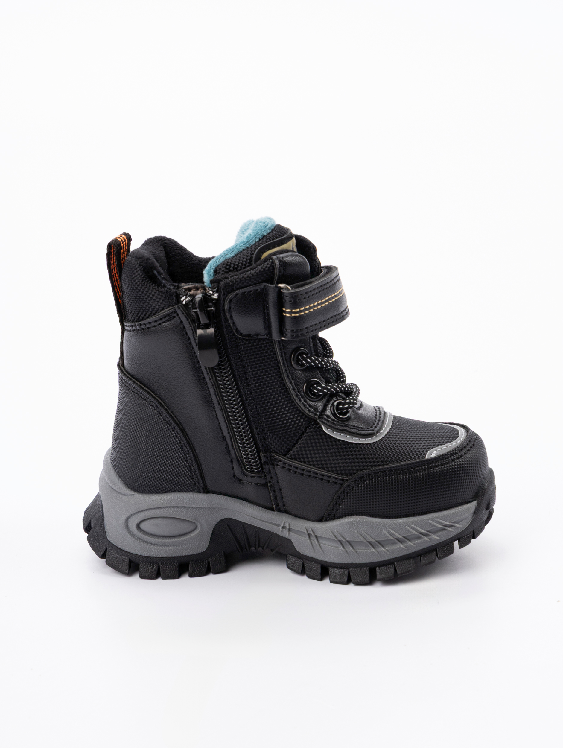 Дополнительным преимуществом является продуманная система фиксации: классическая шнуровка с дополнительной липучкой-регулятором в сочетании с боковой молнией позволяет легко регулировать полноту ботинка и надежно фиксировать стопу. Усиленные мыски и жесткий задник обеспечивают правильную поддержку во время движения, что особенно важно для формирующейся детской ножки. Такая конструкция гарантирует идеальную посадку без сдавливания и позволяет ребенку самостоятельно справляться с застежками.