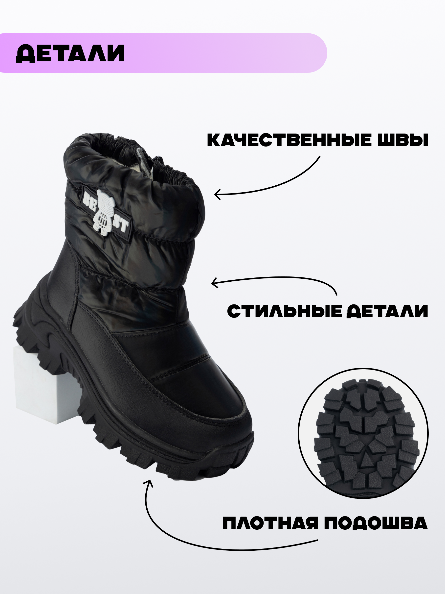 Дутики зимние для девочки – идеальная обувь для холодного времени года. Эти дутики на девочку созданы специально для девочек подростков, которым важно сочетание стиля и комфорта. Дутики детские отлично подойдут как для повседневной носки, так и для посещения школы в зимние дни. Дети смогут насладиться каждой прогулкой благодаря теплой и защитной структуре обуви. Зимние сапожки для девочки выполнены с учетом всех потребностей ребенка. Подкладка из искусственного меха обеспечивает дополнительные тепло и уют в морозные дни. Декоративные элементы делают теплые ботинки модным решением для юных модниц. Высокая платформа и резиновая подошва подарят уверенность на скользких поверхностях, обеспечивая хорошее сцепление. Прорезиненные участки защищают полуботинки для девочки от влаги, сохраняя ноги сухими даже во время мокрого снега. Дутый стеганый верх добавляет легкость походке, а стильный дизайн привлекает внимание окружающих. Спортивные детали гармонично сочетаются с любой школьной одеждой, превращая полусапожки для девочки в универсальную составляющую гардероба каждого школьника. Зимние детские ботинки оснащены удобной молнией: ребенку легко снять или надеть обувь без лишних усилий. Зимние дутики имеют молнию, упрощающую надевание и снятие обуви. Защитная конструкция предотвращает переохлаждение стопы, а мех заботится о сохранении тепла даже при смене температуры. Эти дутики подростковые легко станут любимым предметом одежды ребенка благодаря продуманному сочетанию функциональности и эстетики.