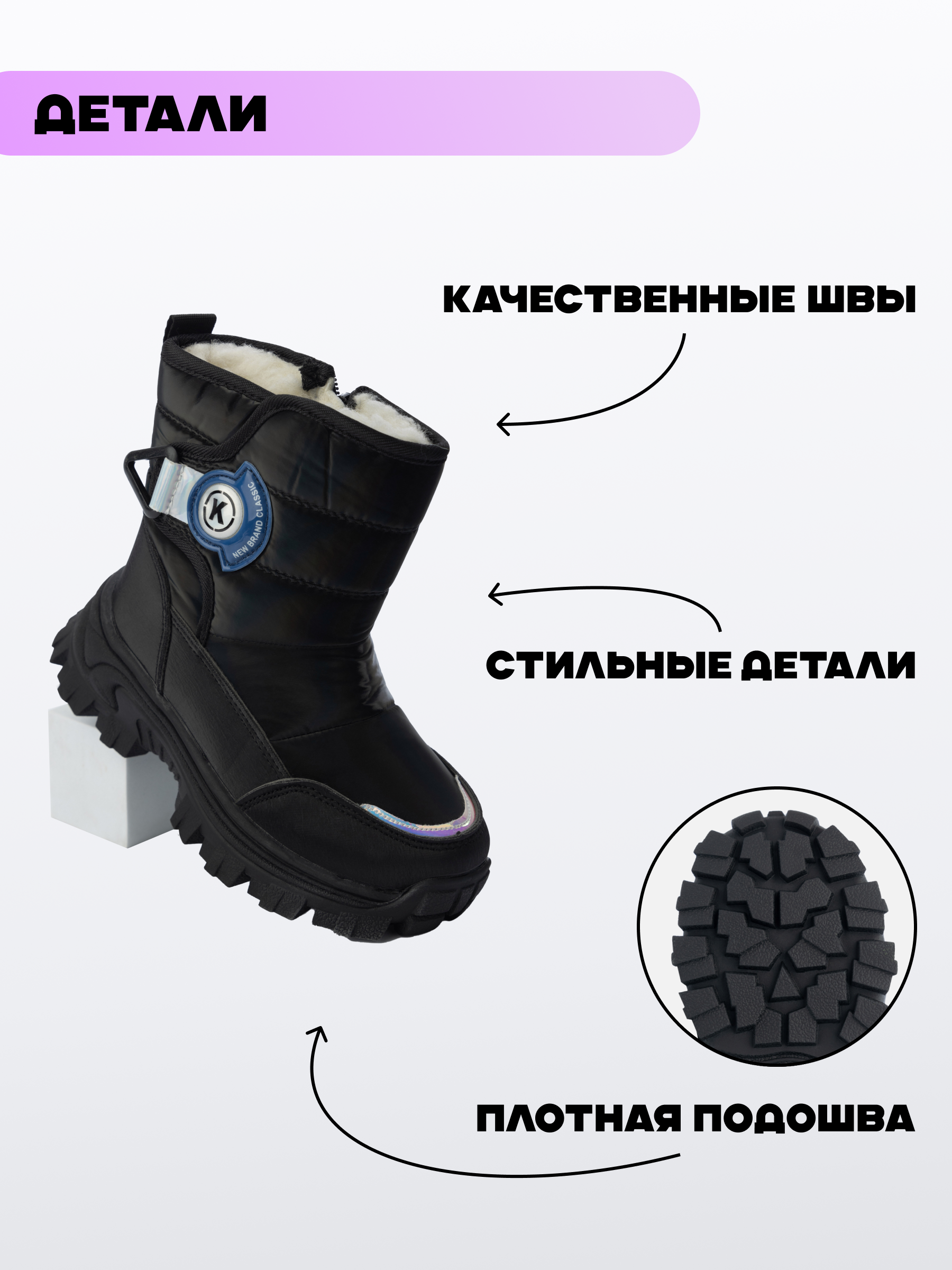 Дутики зимние для девочки – идеальная обувь для холодного времени года. Эти дутики на девочку созданы специально для девочек подростков, которым важно сочетание стиля и комфорта. Дутики детские отлично подойдут как для повседневной носки, так и для посещения школы в зимние дни. Дети смогут насладиться каждой прогулкой благодаря теплой и защитной структуре обуви. Зимние сапожки для девочки выполнены с учетом всех потребностей ребенка. Подкладка из искусственного меха обеспечивает дополнительные тепло и уют в морозные дни. Декоративные элементы делают теплые ботинки модным решением для юных модниц. Высокая платформа и резиновая подошва подарят уверенность на скользких поверхностях, обеспечивая хорошее сцепление. Прорезиненные участки защищают полуботинки для девочки от влаги, сохраняя ноги сухими даже во время мокрого снега. Дутый стеганый верх добавляет легкость походке, а стильный дизайн привлекает внимание окружающих. Спортивные детали гармонично сочетаются с любой школьной одеждой, превращая полусапожки для девочки в универсальную составляющую гардероба каждого школьника. Зимние детские ботинки оснащены удобной молнией: ребенку легко снять или надеть обувь без лишних усилий. Зимние дутики имеют молнию, упрощающую надевание и снятие обуви. Защитная конструкция предотвращает переохлаждение стопы, а мех заботится о сохранении тепла даже при смене температуры. Эти дутики подростковые легко станут любимым предметом одежды ребенка благодаря продуманному сочетанию функциональности и эстетики.