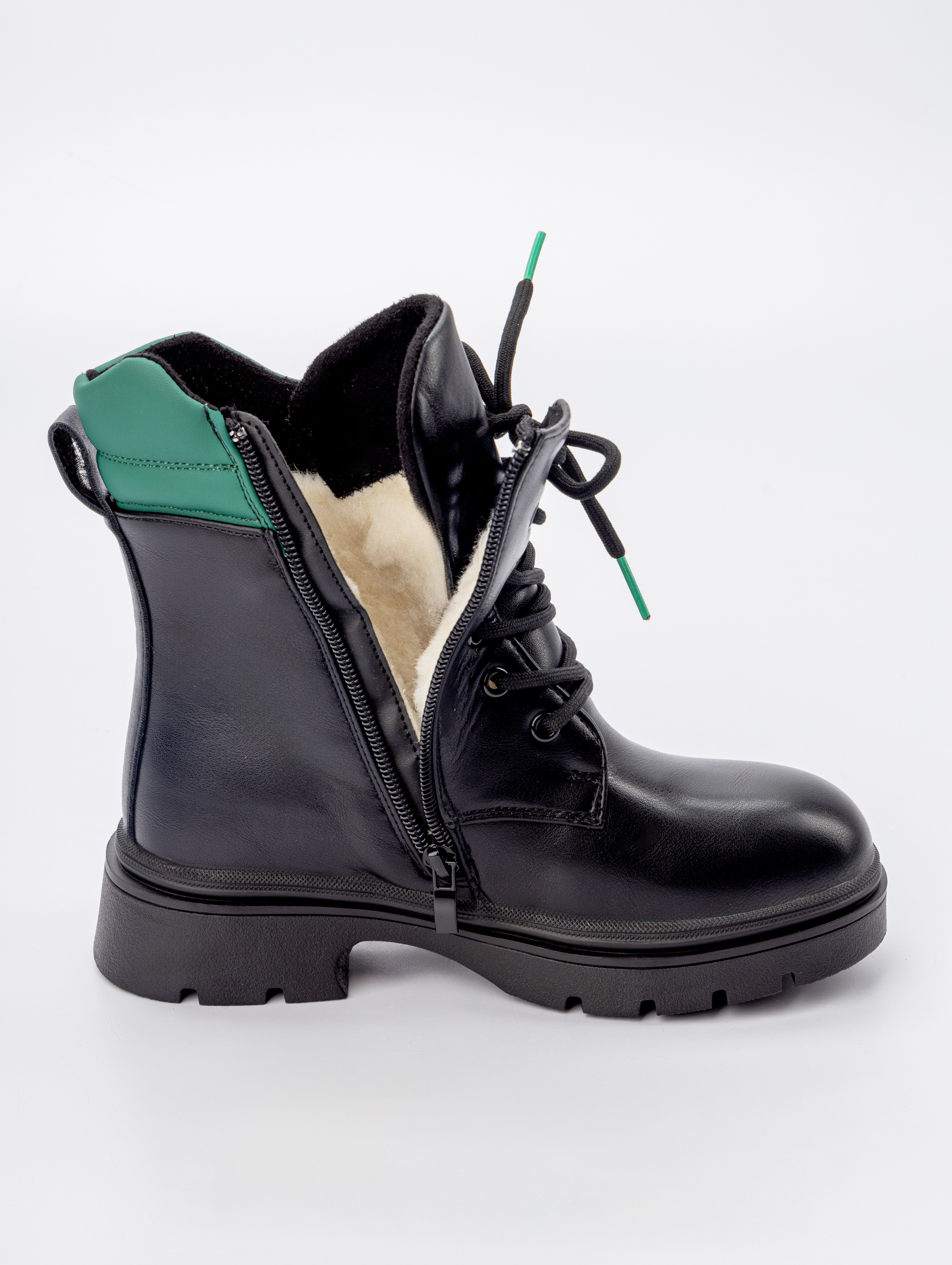 Зимние ботинки для девочки — это гармоничное сочетание элегантного дизайна и практичной функциональности. Удобная система фиксации включает шнурки и боковую молнию. Модель создана для комфортной носки в холодное время года и станет надежным спутником во время школьных занятий и активного отдыха. Подростковые ботинки выполнены из качественной экокожи с подкладкой из мягкого экомеха, что обеспечивает надежную защиту от холода и сохраняет ноги в тепле даже в морозные дни.