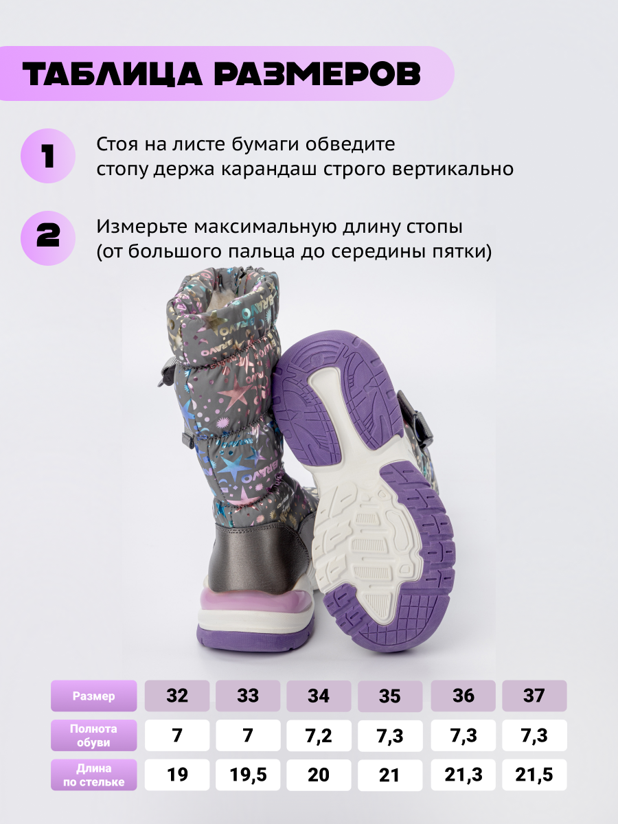 Дутики детские зимние сапоги подростковые арт. 3966-6-2-Gray-Purple-TZB2-FF