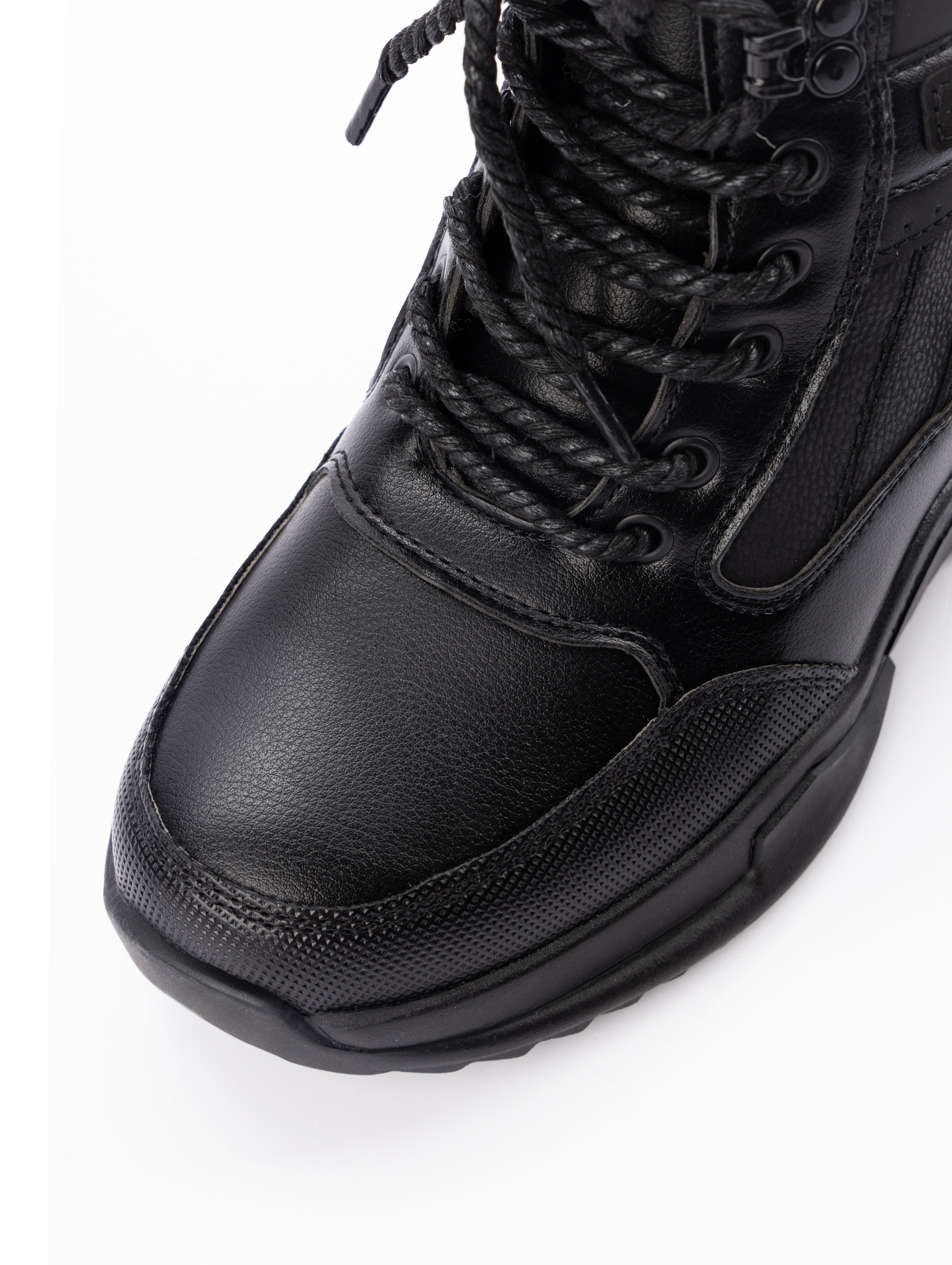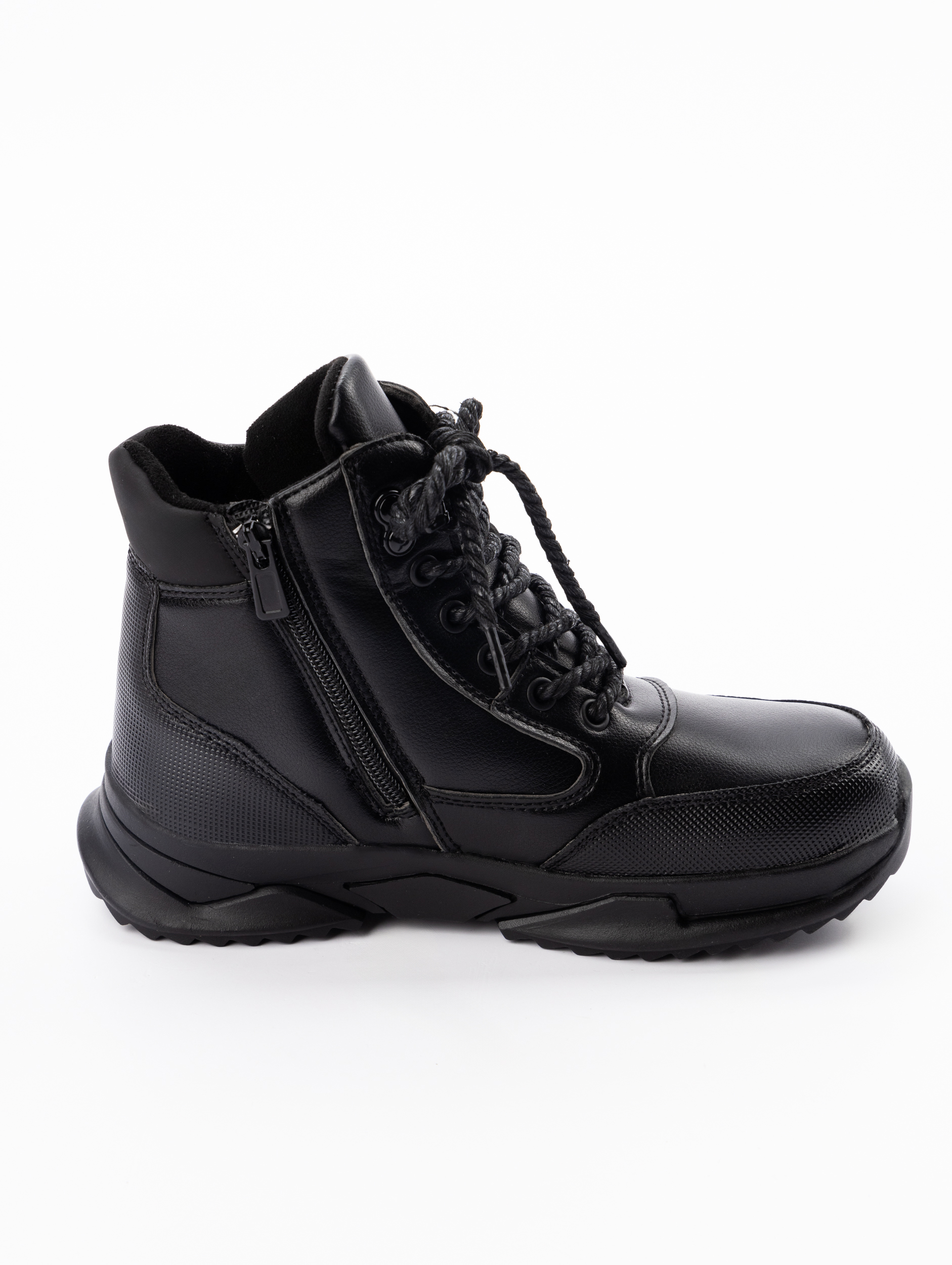 Дополнительным преимуществом является комбинированная система фиксации: классическая шнуровка с боковой молнией позволяет точно подогнать ботинок по ноге и надежно зафиксировать стопу. Усиленные мыски и жесткий задник обеспечивают правильную поддержку во время движения, что особенно важно для формирующейся стопы подростка. Конструкция гарантирует идеальную посадку без сдавливания и упрощает процесс обувания.