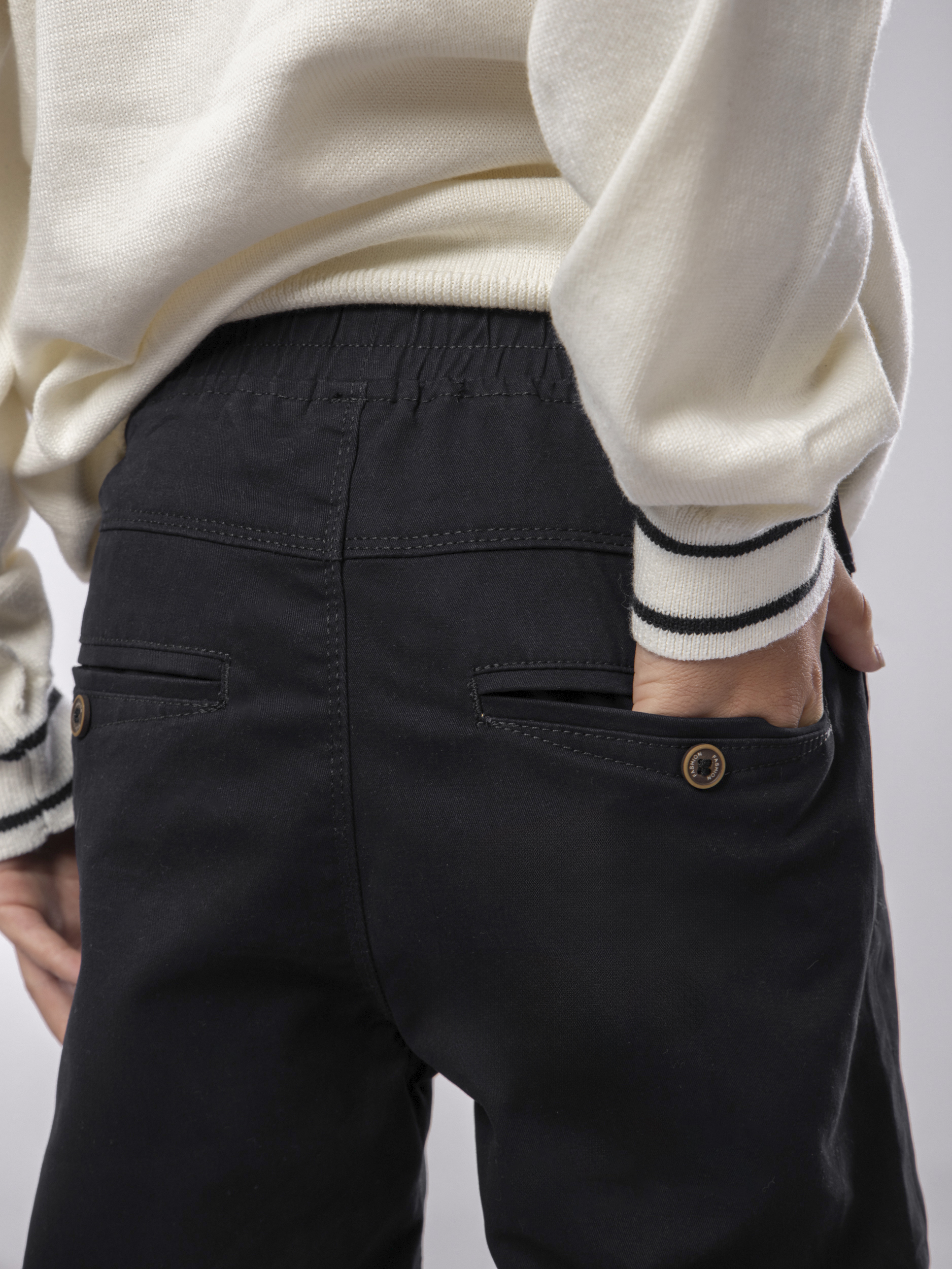 Брюки прямые на резинке подростковые арт. M66611-60-Black-SSA2-FF