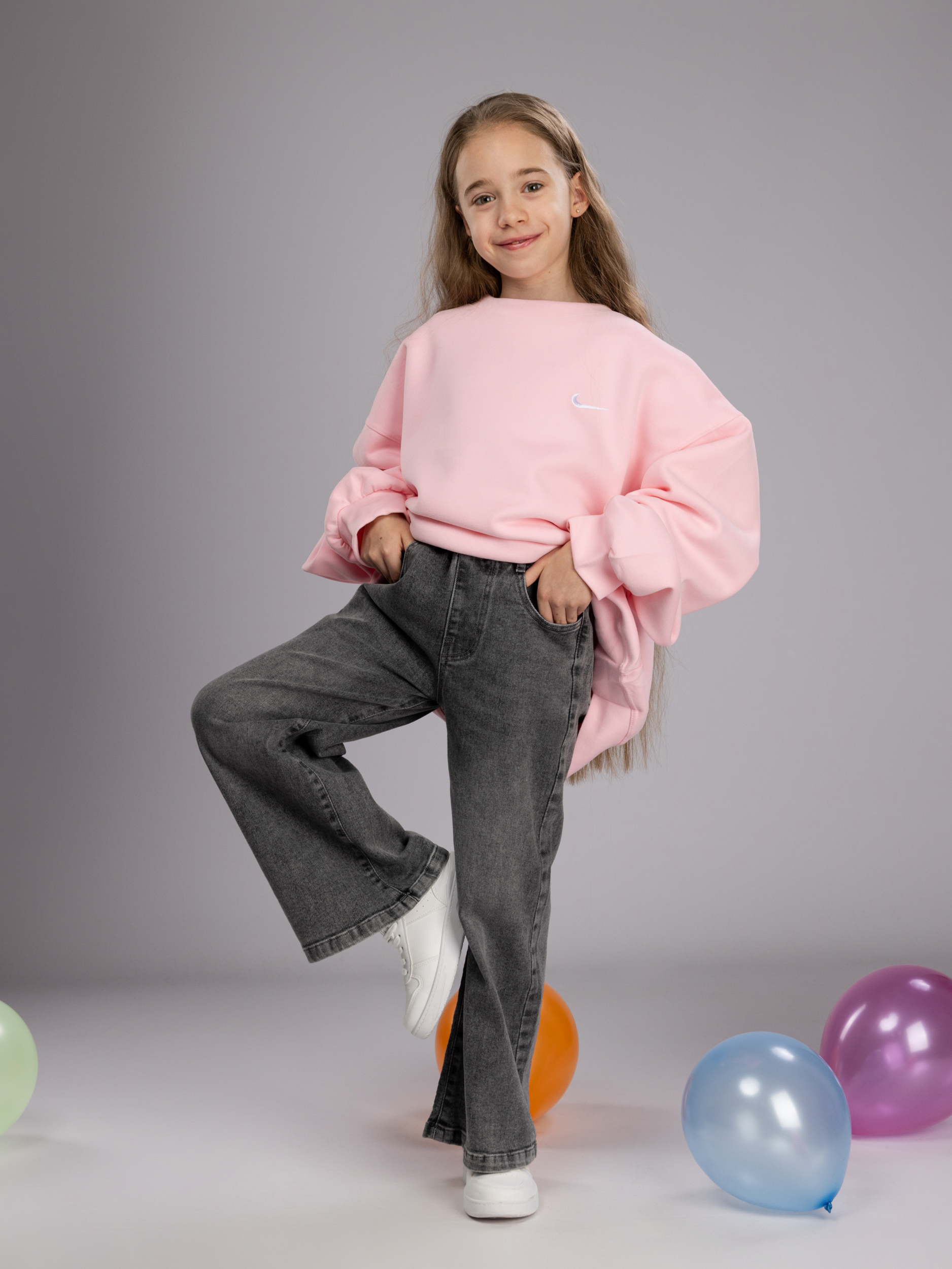 Практичность этих детских брюк подтверждается их качеством — мягкий хлопок с добавлением эластана хорошо сохраняет яркость цвета и форму после многочисленных стирок, не теряя при этом свои первоначальные свойства. Эти джинсы оверсайз для девочки прекрасно подходят для демисезонного периода, так как позволяют многослойное ношение и защищают ребенка от ветра и прохлады.