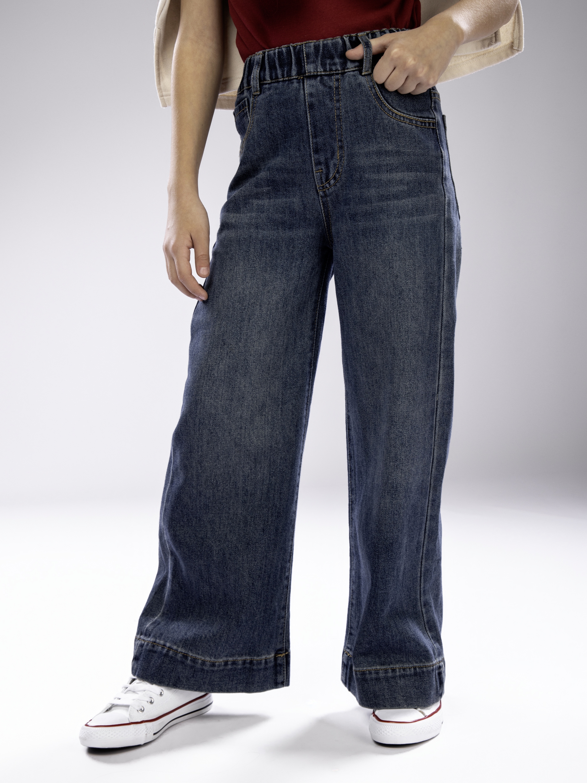 Эти широкие джинсы для девочки обеспечивают удобство на протяжении всего дня. Мягкая резинка на поясе надежно фиксирует детские джинсы, не стесняет движений и позволяет ребенку чувствовать себя свободно при любых активностях. Такой дизайн особенно актуален для подростков, которые предпочитают удобную одежду без ограничения.