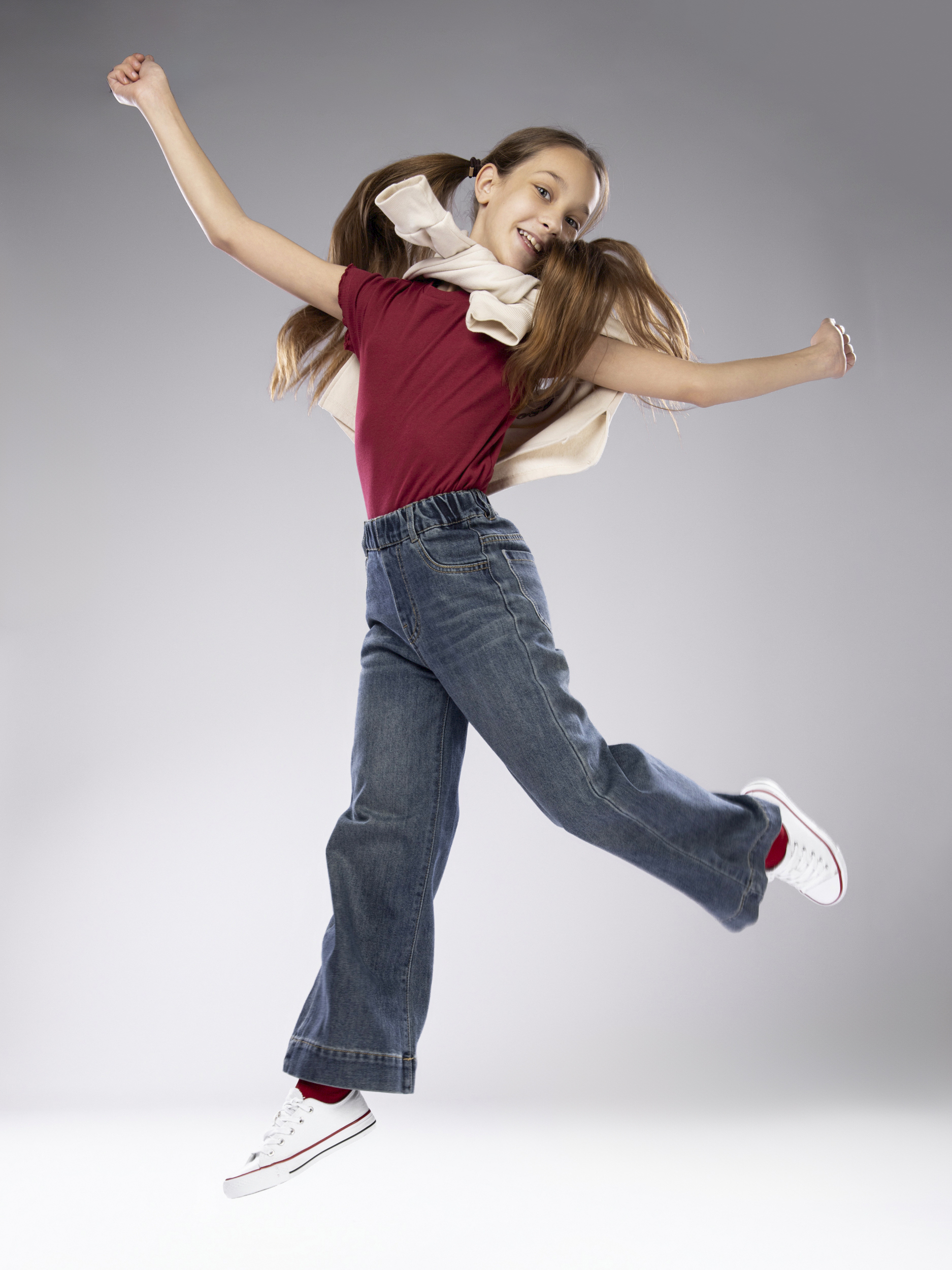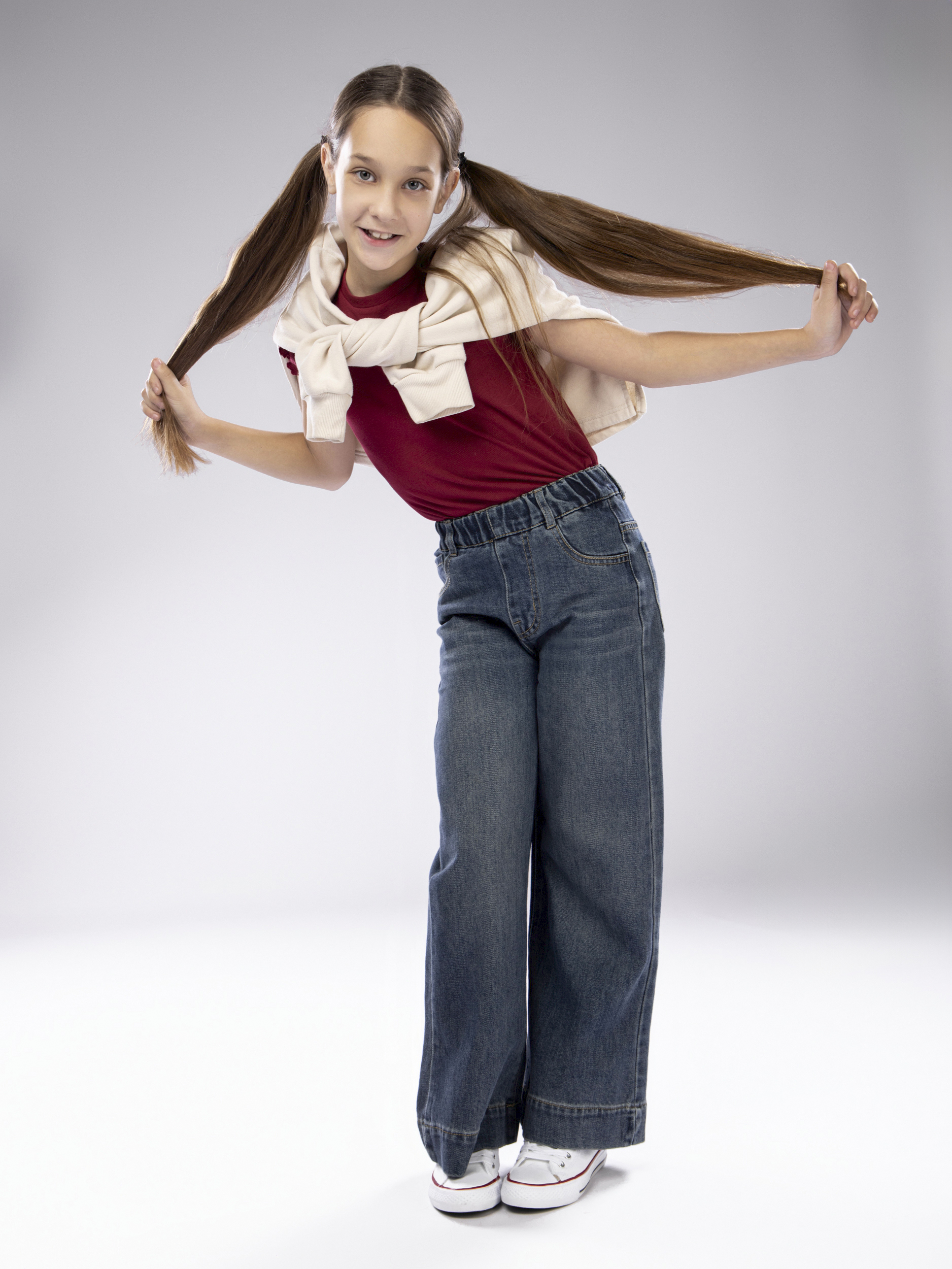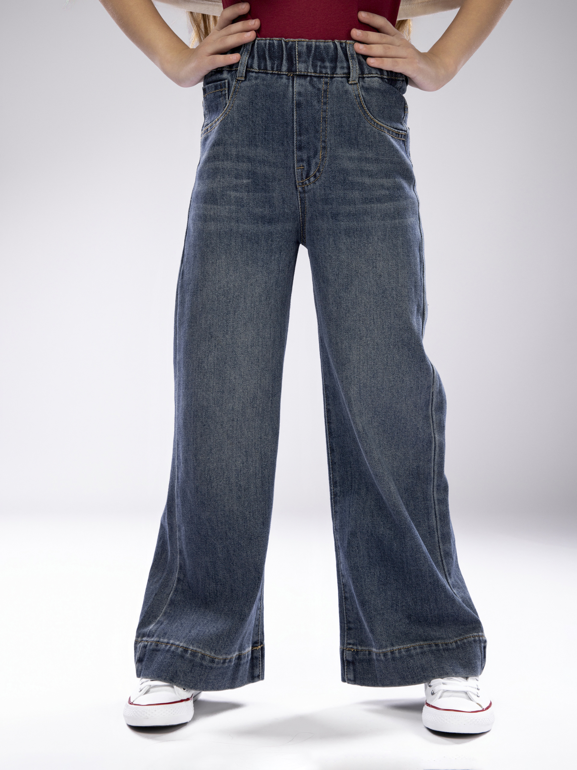 Джинсы палаццо для девочки стали популярным элементом современного подросткового гардероба. Широкие детские джинсы характеризуется свободным, просторным кроем и актуальными дизайнерскими деталями, что позволяет легко комбинировать их с разнообразной одеждой и аксессуарами для создания модных и ярких образов. Джинсы палаццо идеально подходят для школьных дней, прогулок, встреч с друзьями и активного отдыха, сочетая в себе комфорт и стиль.