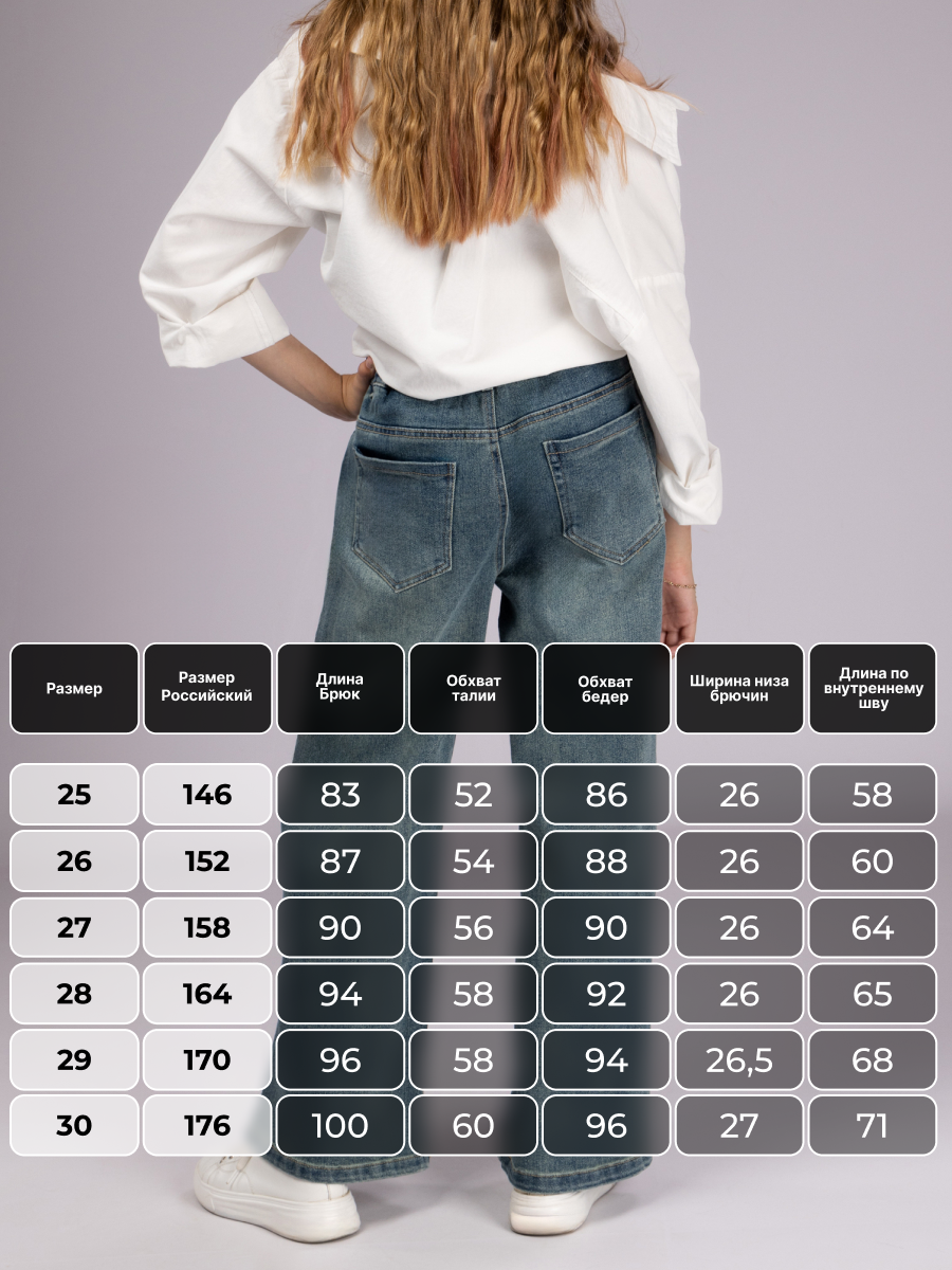 Джинсы для девочки, выполненные из хлопка с добавлением эластана, обеспечивают комфорт и удобство в носке. Джинсы для девочки подростка имеют свободный крой с высокой посадкой, что идеально подходит для активного ребенка и создает модный образ. Высокая талия на резинке гарантирует надежную фиксацию и не стесняет движений, что особенно важно для подростков. Эти джинсы палаццо для девочки — универсальная вещь в детском гардеробе, подходящая для разных сезонов: летний и осенний варианты отлично сочетаются с разнообразной одеждой. Демисезонный фасон позволяет использовать джинсы широкие для девочки как повседневную одежду, создавая стильный лук без лишних усилий. Подростковый стиль отражается в лаконичном дизайне и практичности изделия. Свободная посадка обеспечивает максимальную свободу движений, а качественный хлопок с эластаном делают джинсы детские широкие приятными к телу и долговечным. Эти джинсовые штаны станут отличным выбором для ребенка, который ценит комфорт и современный стиль. Детские джинсы на резинке легко комбинируются с разными элементами гардероба и подойдет как для прогулок, так и для учебы или отдыха. Универсальность модели позволяет создавать множество модных образов, подчеркивающих индивидуальность подростка. Брюки на резинке – удобное решение для повседневного использования благодаря простоте надевания и надежной посадке по фигуре. Таким образом, детские демисезонные джинсы представляют собой сочетание модного дизайна и практичности, соответствуя всем требованиям современного подросткового гардероба. Детские джинсы палаццо подойдут девочкам любого возраста благодаря универсальному фасону и продуманному крою. Широкий пояс на резинке делает подростковые широкие джинсы максимально комфортным при любых движениях. Эти джинсы подарят юной моднице повседневный комфорт и обеспечат стильный образ!