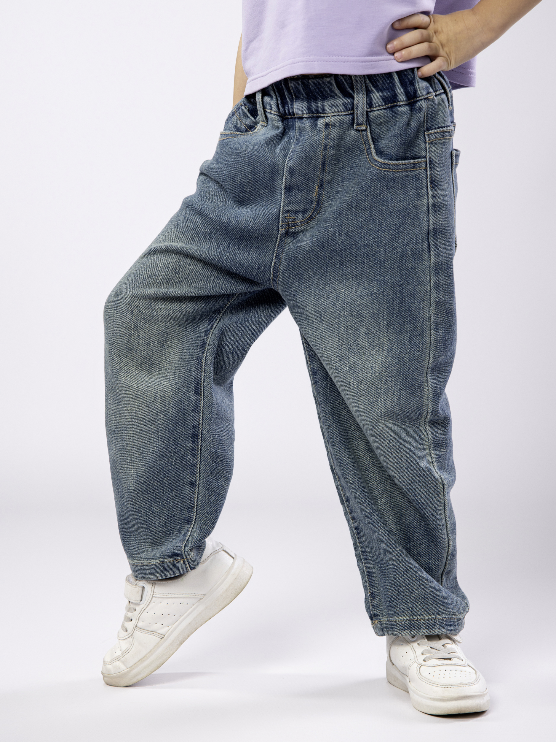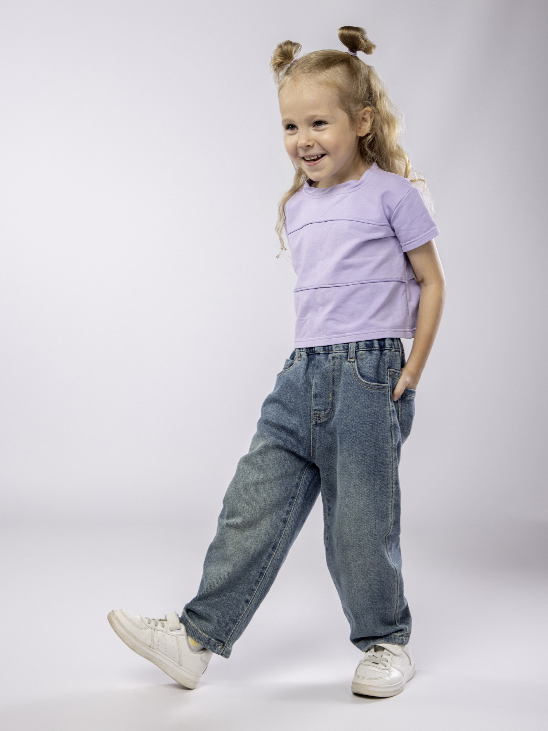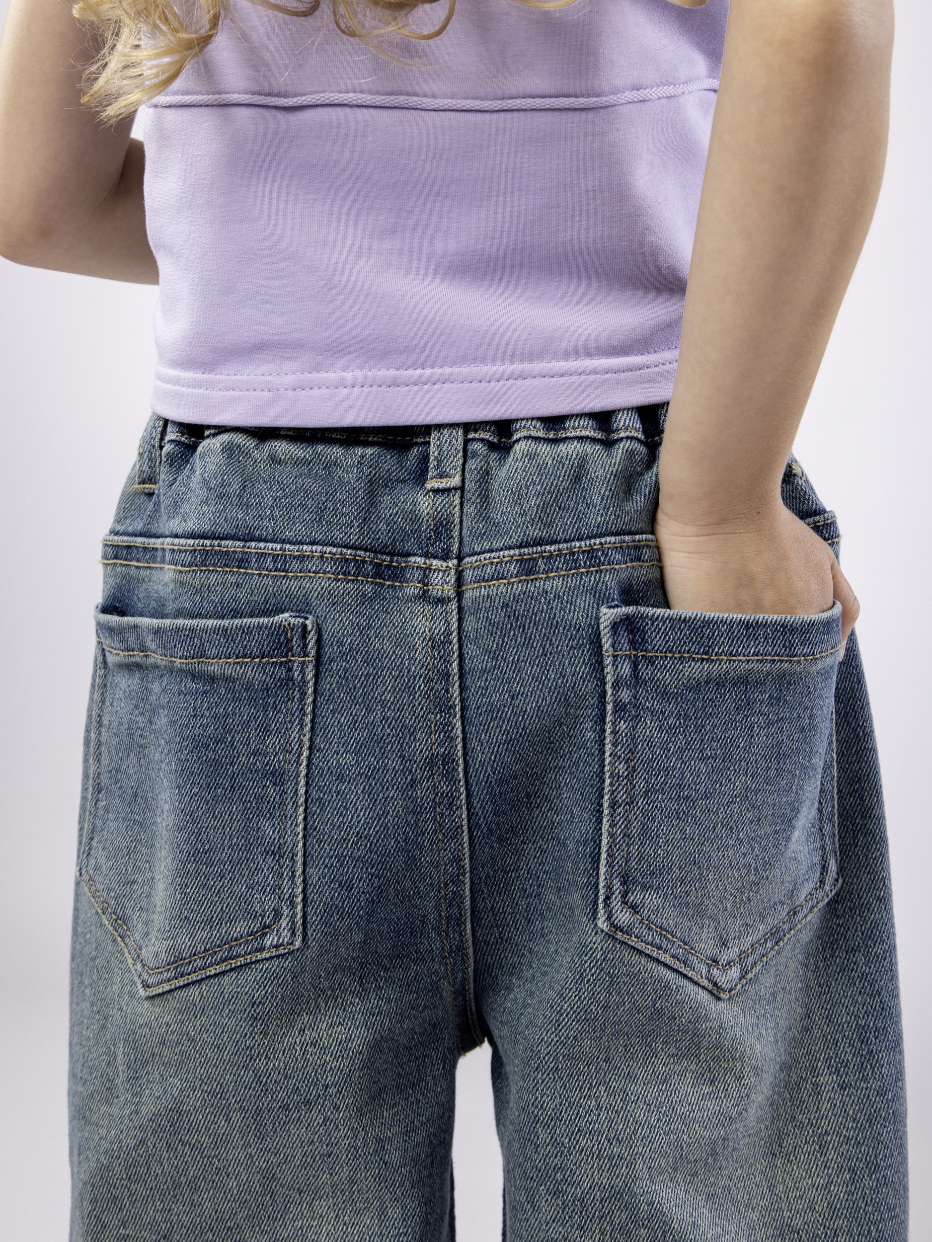 Эти джинсы для девочки созданы специально для маленьких модниц, которым важен комфорт и свобода движений. Изготовленные из мягкого хлопка с добавлением эластана, детские джинсы для девочки обеспечивают приятную посадку и не сковывают движения ребенка. Высокая талия на эластичной резинке гарантирует надежную фиксацию и удобство в носке, что особенно важно для малышей. Прямой крой придает изделию современный и модный вид, а свободный фасон позволяет использовать вещь как в повседневной жизни, так и для активных прогулок летом или осенью. Джинсы прямые для девочки подходят для девочки любого возраста благодаря универсальному стилю и милому дизайну. Свободные штанины создают эффект легкости и воздушности, что делает одежду идеальной для теплых дней. Эти брюки для девочки станут незаменимой частью детского гардероба, сочетаясь с различной одеждой. Практичность изделия дополнена продуманным кроем — детские демисезонные джинсы сохраняют форму после многочисленных стирок и не теряет яркость цвета. Прямые детские джинсы отлично подойдут для ребенка, который ведет активный образ жизни, благодаря удобной талии на резинке и свободному крою. Эти джинсы для девочки на резинке легко комбинируются с разными элементами гардероба, подчеркивая индивидуальный стиль маленькой обладательницы. Детские джинсы на резинке идеально отвечают требованиям современной детской одежды: они практичные, комфортные и модные одновременно. Летний вариант прекрасно справляется с жарой за счет состава ткани, а осенний сезон не станет препятствием благодаря возможности многослойного ношения. Эти детские брюки на резинке – отличный выбор для родителей, которые ценят качество материала и удобство посадки в повседневной детской одежде. Они помогут создать стильный образ без лишних усилий, обеспечивая малышу комфорт на каждый день вне зависимости от погоды или активности.