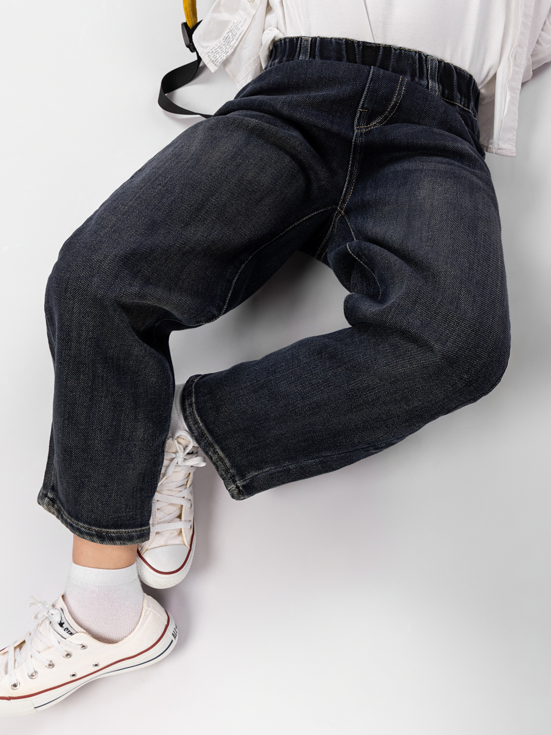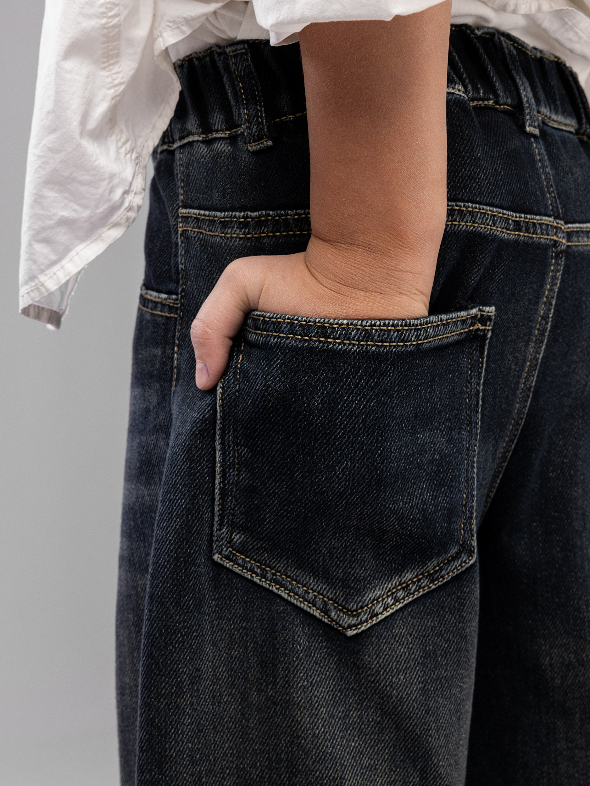 Эластичная резинка на поясе обеспечивает легкую фиксацию без застежки, что особенно удобно для самостоятельного надевания. Такой вариант школьных штанов подойдет как для младших школьников, так и для подростков, которые ценят удобство и практичность. Накладной карман добавляет изделию функциональности. Джинсовый материал с добавлением хлопка и эластана приятен к телу, отличается прочностью и долговечностью. Классический дизайн делает эти брюки детские универсальным выбором для разных случаев: школьные будни, спортивные занятия и прогулки. Свободный крой и прямой силуэт позволяют легко сочетать широкие штаны с любой другой одеждой. Карман выполнен в классическом стиле, что делает детские джинсы практичными и удобными для ежедневного использования.
