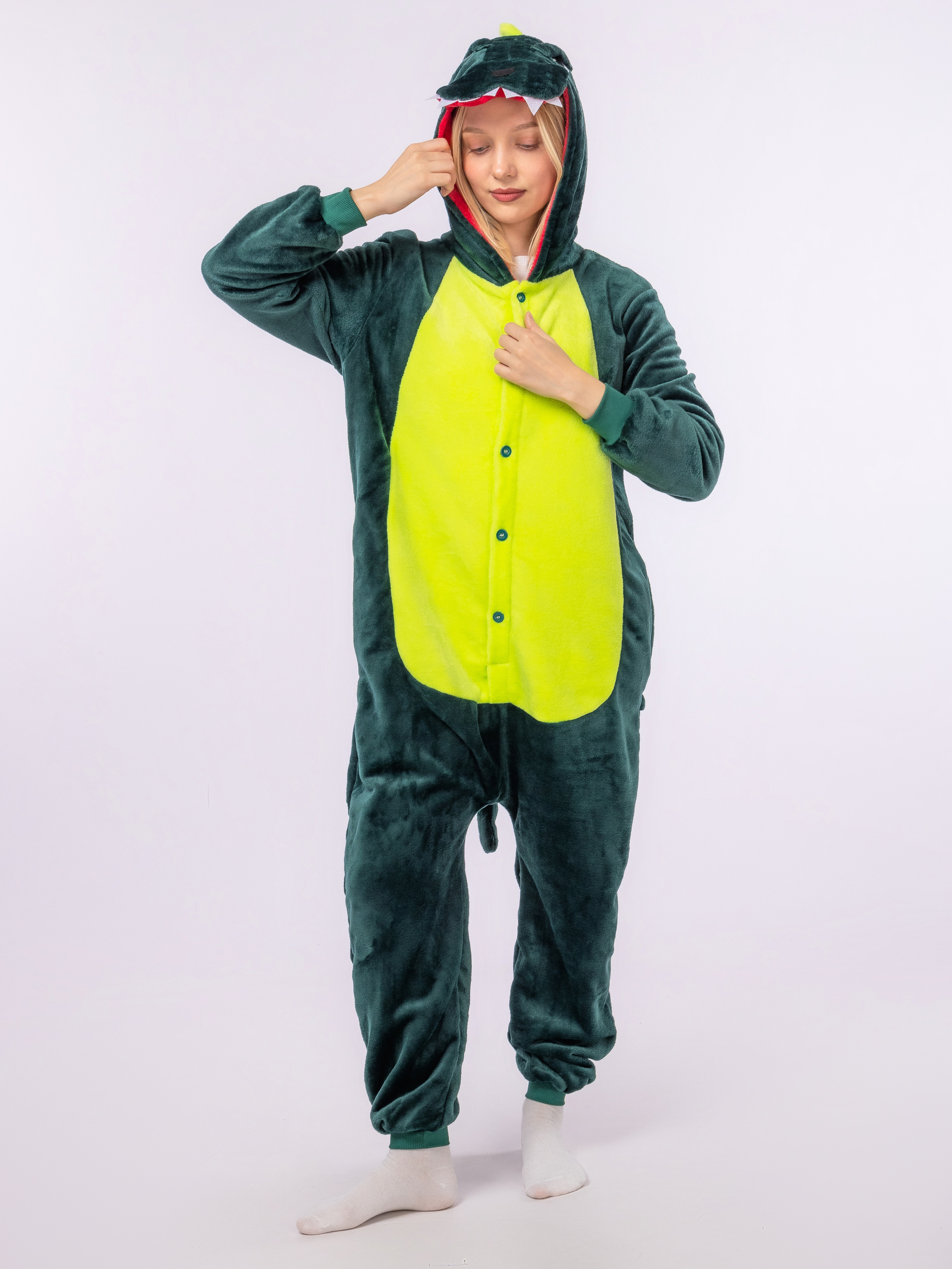 Кигуруми — это уютный и оригинальный наряд, который идеально подойдет для всей семьи. Этот стильный и комфортный кигуруми для дома создан как для детей и подростков, так и для взрослых любителей ярких образов и оригинальных костюмов. Выполненный в узнаваемом дизайне милого динозавра, кигуруми пижама вызывает улыбки и добавляет позитивного настроения на любую вечеринку, праздник или уютный домашний вечер. Изготовленный из мягкого и приятного на ощупь материала, этот кигуруми для взрослых обеспечивает комфорт и тепло в достаточной мере для ношения дома или на тематических мероприятиях. Удобная застежка в виде пуговиц спереди облегчает надевание и снятие кигуруми костюма, а универсальный крой подходит как для мальчиков, так и для девочек. Благодаря свободной посадке, кигуруми для детей не сковывает движения, позволяя активно играть, веселиться и отдыхать. Этот теплый кигуруми отлично подходит для праздничных выходов, таких как новогодние вечеринки, семейные торжества или фотосессии. Кигуруми с изображением любимых персонажей подарит веселое настроение и станет запоминающимся подарком для детей и взрослых. Комбинезон кигуруми также идеально подходит для создания уютной атмосферы во время домашних игр или перед сном, даря ощущение тепла и уюта. Мягкая ткань сохраняет тепло даже в прохладную погоду и помогает чувствовать себя комфортно в течение всего дня. Ухаживать за кигуруми с капюшоном просто: он легко стирается, долго сохраняет яркость красок и не теряет формы. Если вы ищете яркую и комфортную одежду, которая объединяет удовольствие от игры, стиль и уют — кигуруми для косплея идеально подойдет для вас и вашего семейного антуража.