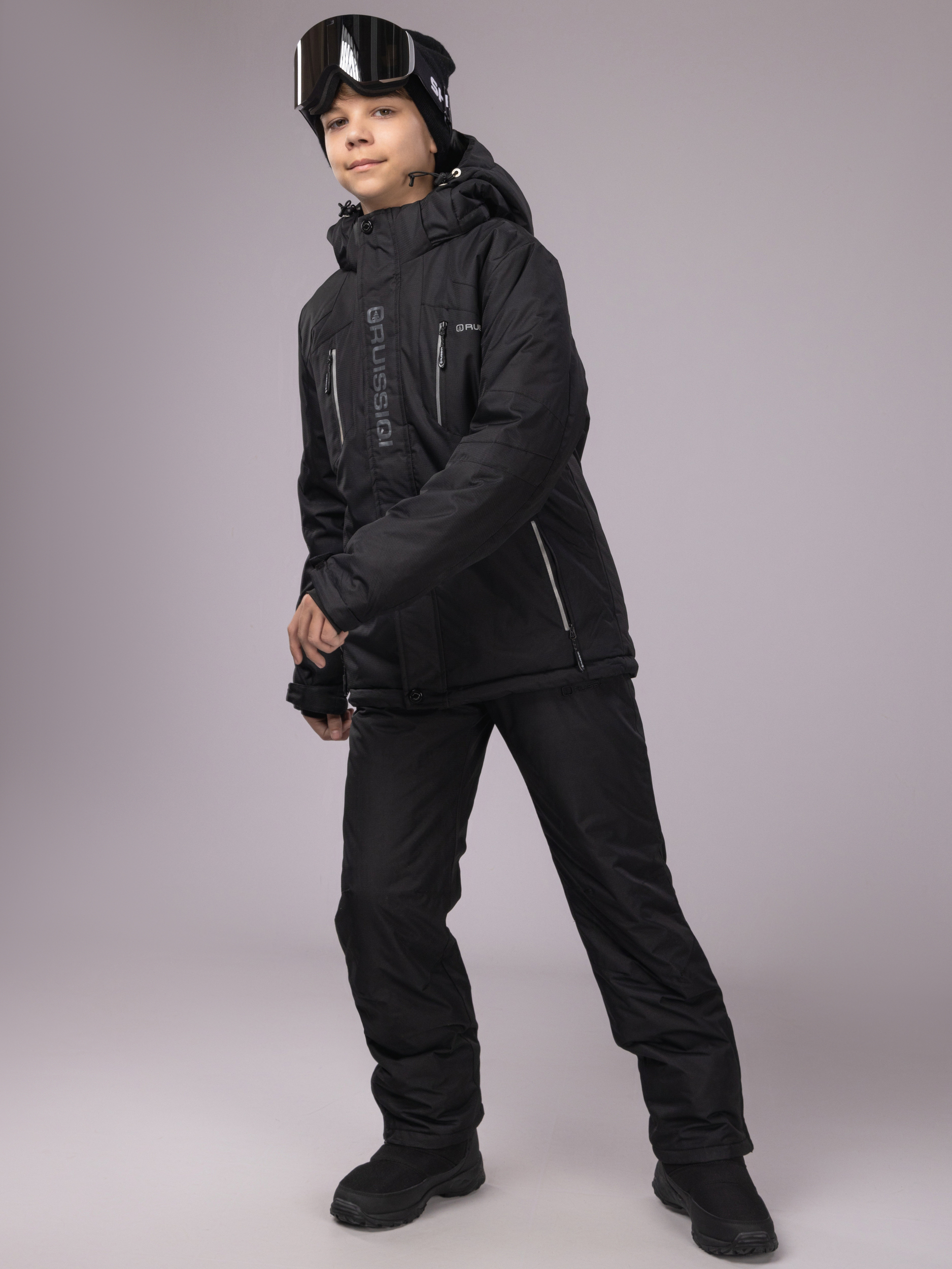 Для дополнительной безопасности на склоне и в сумерках костюм для мальчика на зиму оформлен светоотражающими элементами. Они делают юного лыжника хорошо заметным для других катающихся и родителей, что особенно важно в условиях плохой видимости или ранних зимних вечеров.