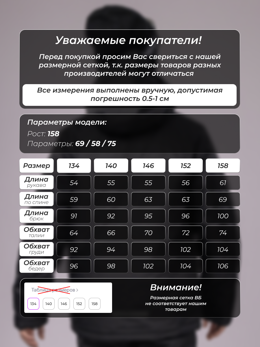 Параметры модели на фото (ОГ-ОТ-ОБ)