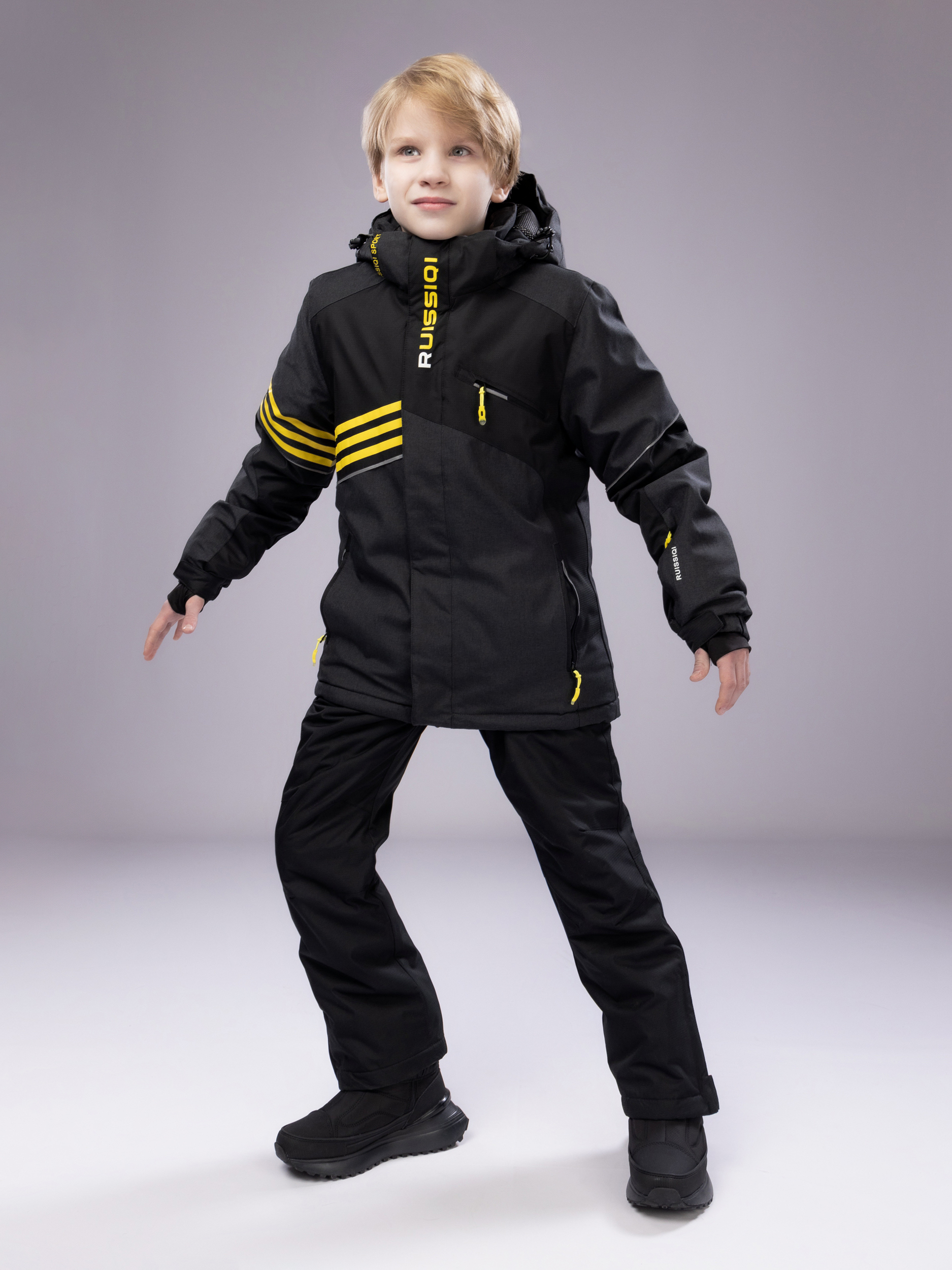Комплектация включает утепленную куртку и брюки, обеспечивающие надежную защиту от холода и снега. Куртка оснащена прочной молнией, высоким воротником и регулируемым капюшоном, что помогает ребенку укрыться от ветра и осадков.