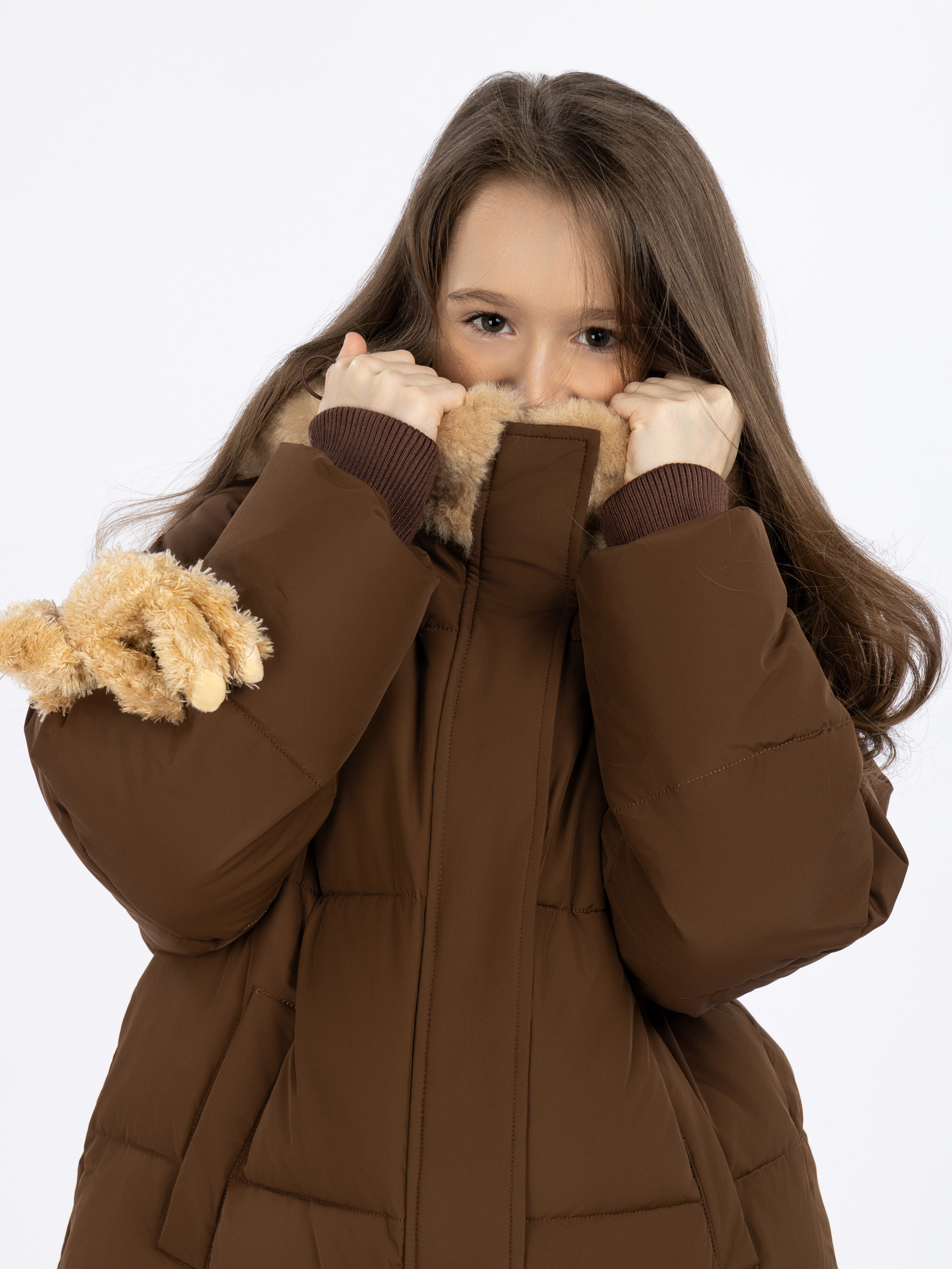 Куртка зимняя для подростка — важный элемент зимнего гардероба для девочки. Куртка зимняя с капюшоном подходит для подросткового возраста, позволяя чувствовать себя уверенно в любое время года. Стеганая куртка для девочки выполнена в стеганом дизайне, что добавляет текстурного акцента и обеспечивает дополнительное утепление во время зимних прогулок или походов в школу. Зима бывает разной, но такая зимняя куртка для девочки создана, чтобы ребенок ощущал комфорт даже при переменчивой погоде. Детская куртка оборудована несъемным капюшоном, что даёт возможность легко адаптироваться к условиям на улице. Милый плюшевый капюшон в виде мишки интересно дополняет образ. Высокий воротник защищает от ветра, а удобные карманы позволяют носить с собой важные мелочи или прятать руки от холода. Утепленная куртка отличается удлиненным силуэтом и прямым покроем, что делает её универсальной частью школьного гардероба. Благодаря этому решению можно быть уверенной в сохранении тепла во время долгих прогулок на свежем воздухе. Одежда выполнена из плащевого материала: он устойчив к осадкам и предохраняет от промокания в ненастную погоду. Куртка зимняя для девочки с капюшоном легко сочетается с любым стилем одежды благодаря её молодежному духу и практичности. Наличие оверсайз деталей добавляет современный штрих к общему облику куртки, создавая модный образ для девочки. Дутый эффект не только украшает вещицу, но также способствует лучшему удержанию тепла при сильных холодах. Школьная жизнь требует вещей надежных и практичных — таких как стеганая куртка для подростков. Дутая куртка будет сопровождать ребёнка на пути к знаниям каждый день благодаря качественному пошиву и тщательно подобранным материалам конструкции изделия.