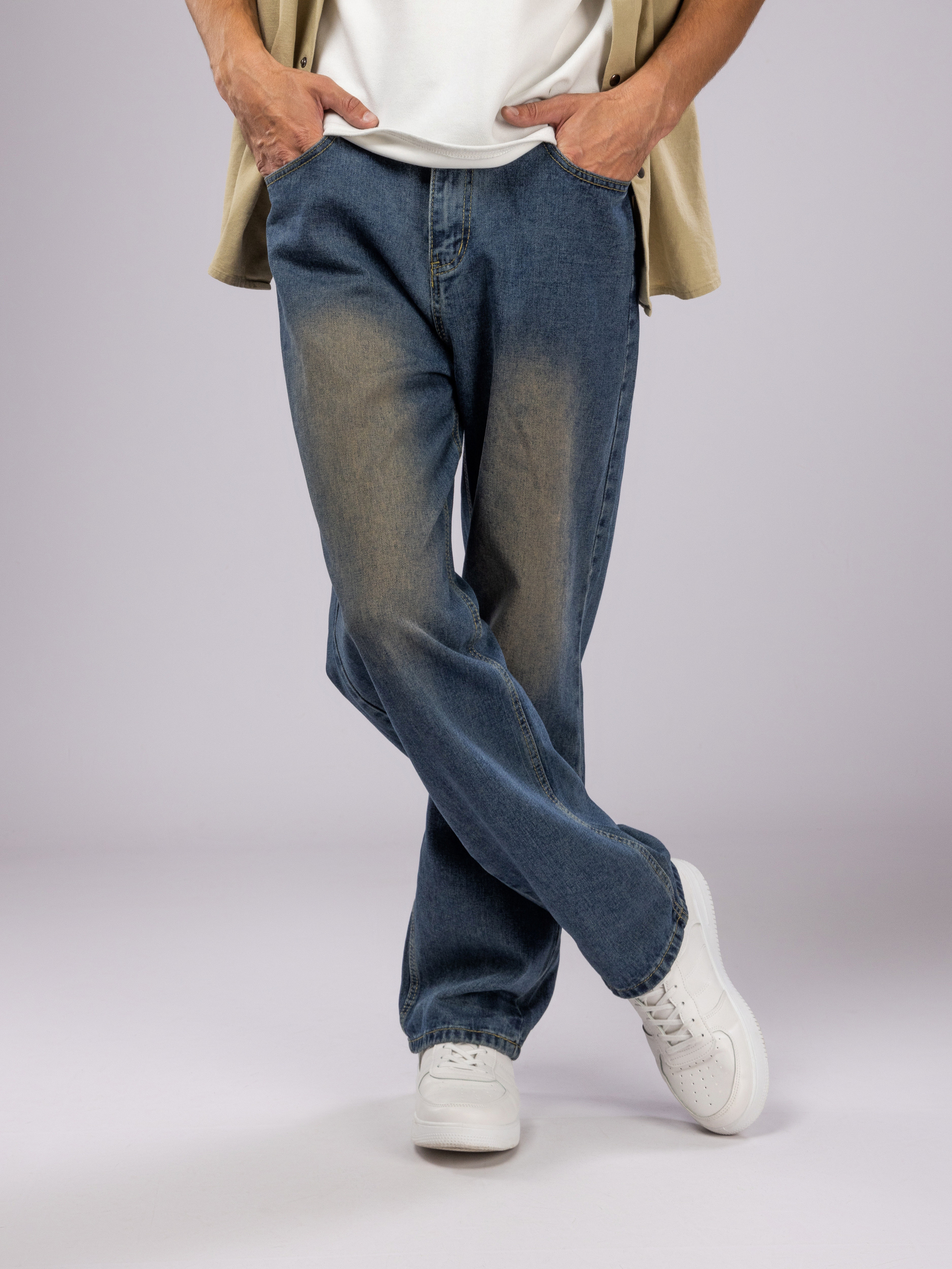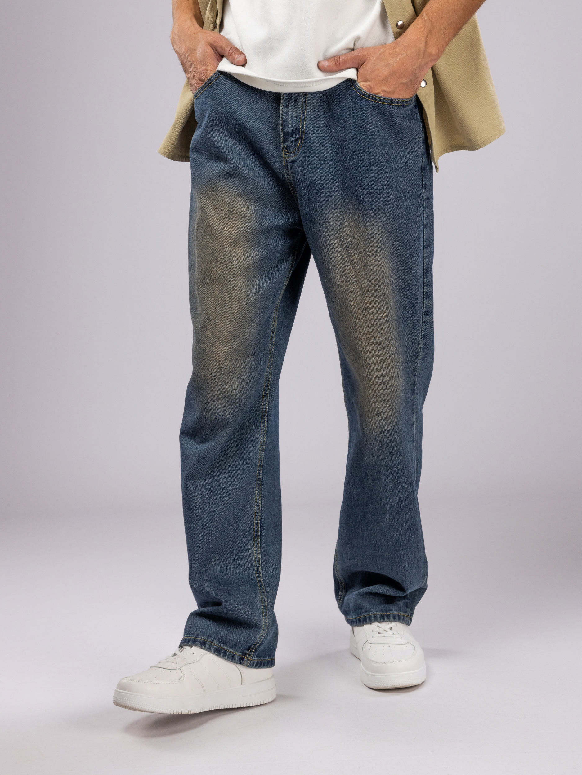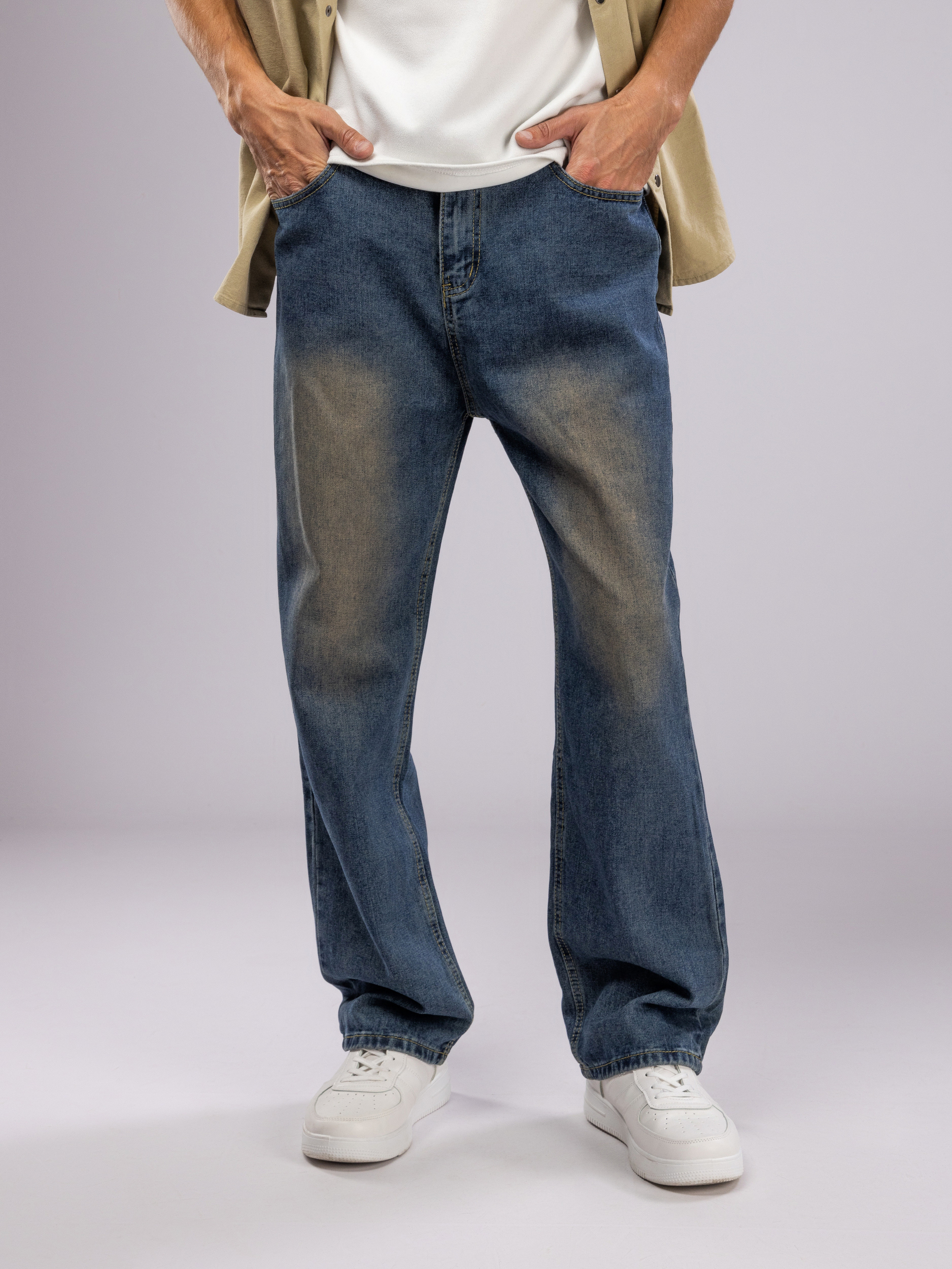 Классические мужские джинсы оснащены удобной прочной молнией и пуговицей, которые надежно фиксируют изделие на талии. Карманы продуманы для удобного хранения мелких предметов, что делает эти штаны для мужчин не только модными, но и функциональными.
