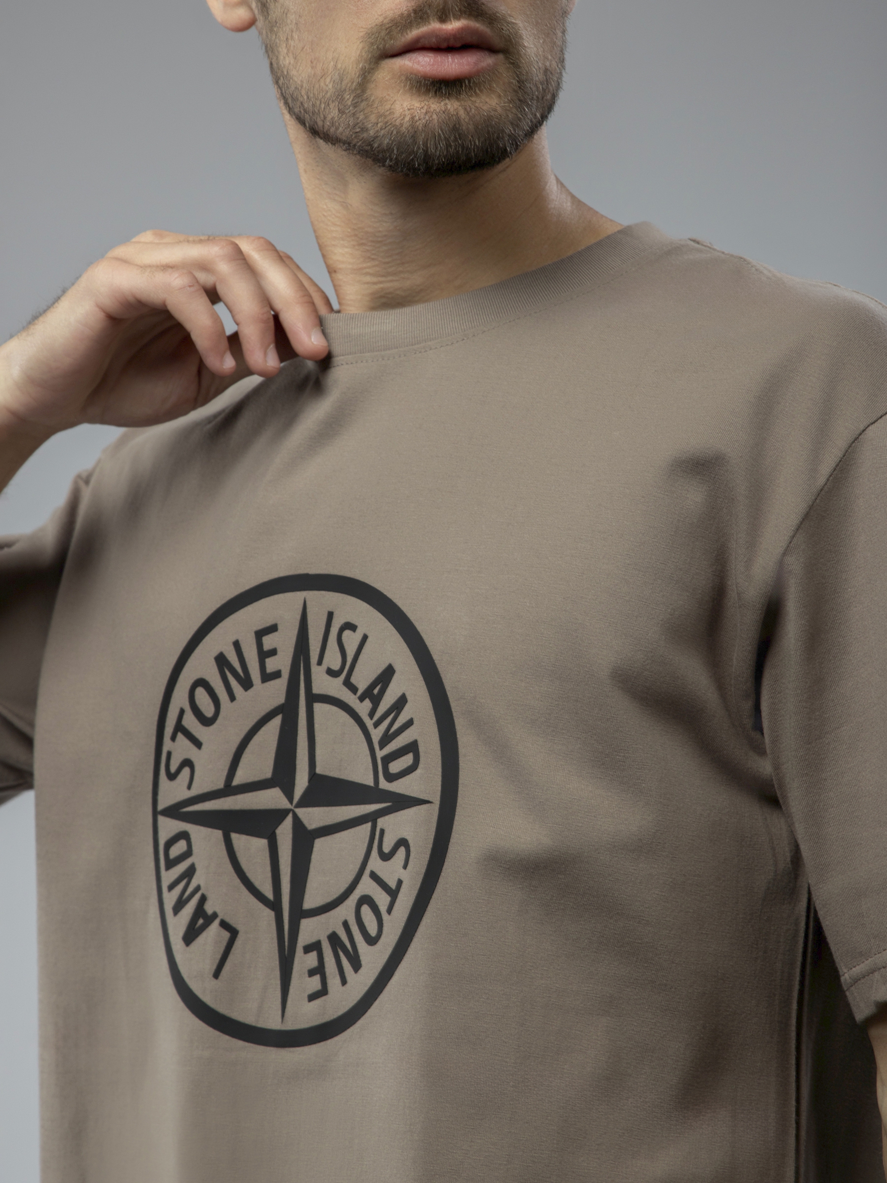 Футболка однотонная с принтом арт. TX1225-Khaki1-LSWA1
