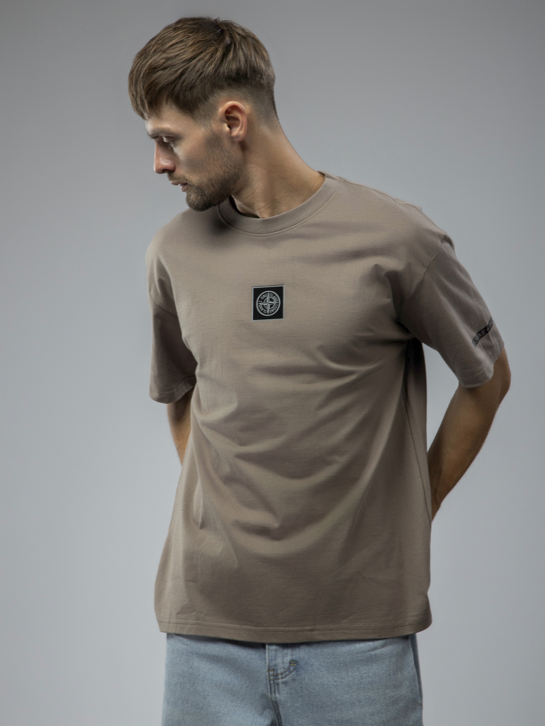 Футболка однотонная с принтом арт. TX1223-Brown1-LSWA1