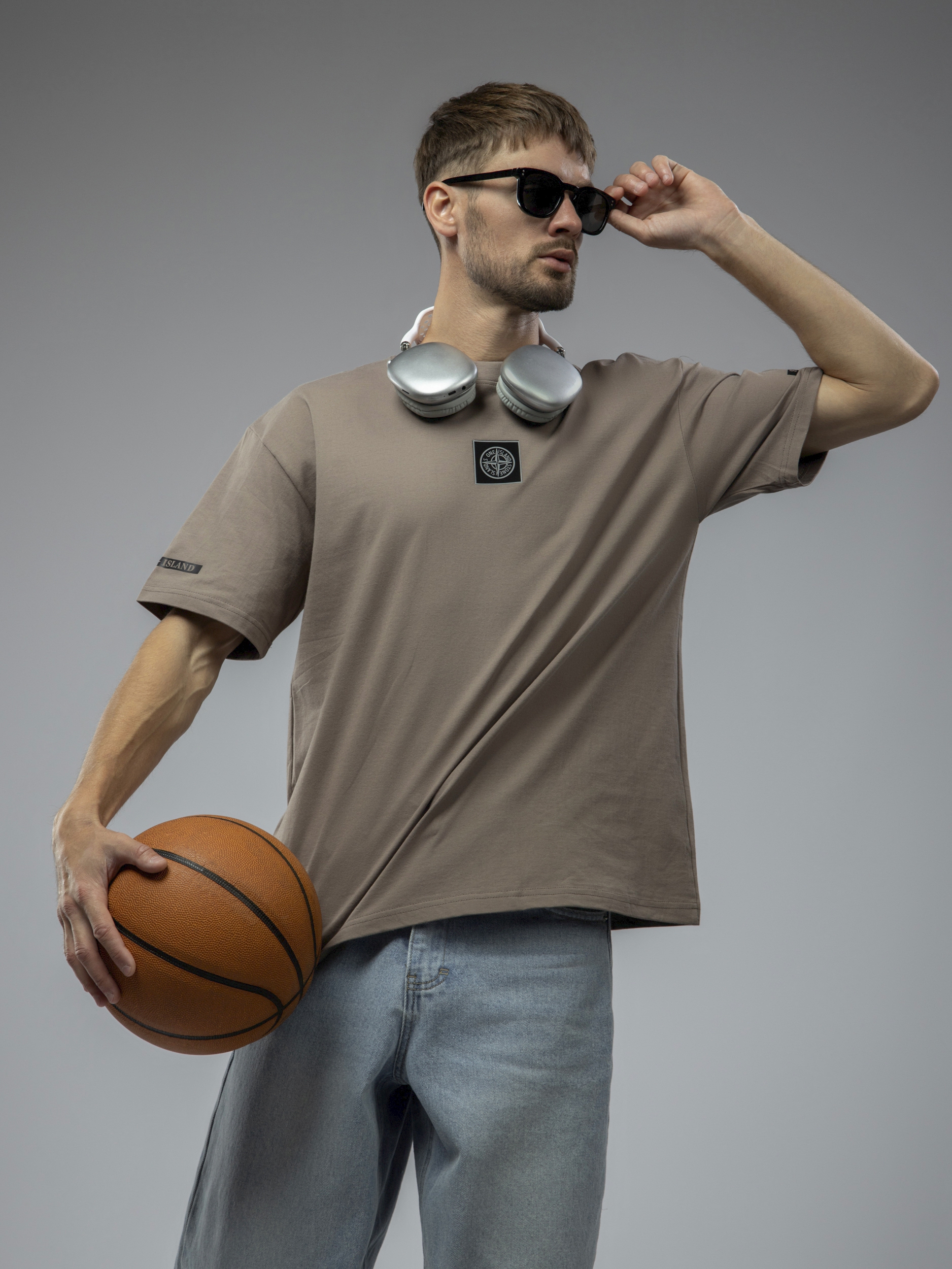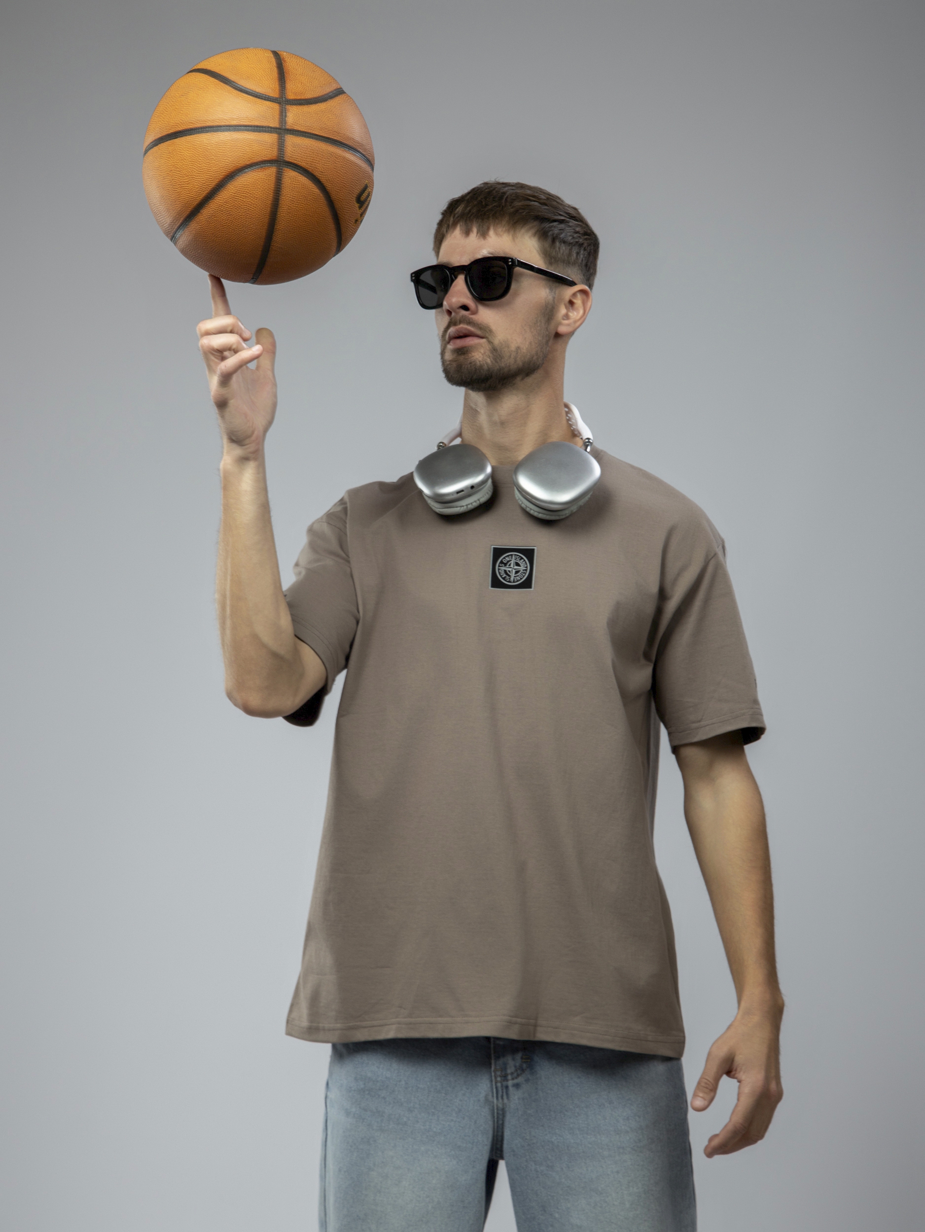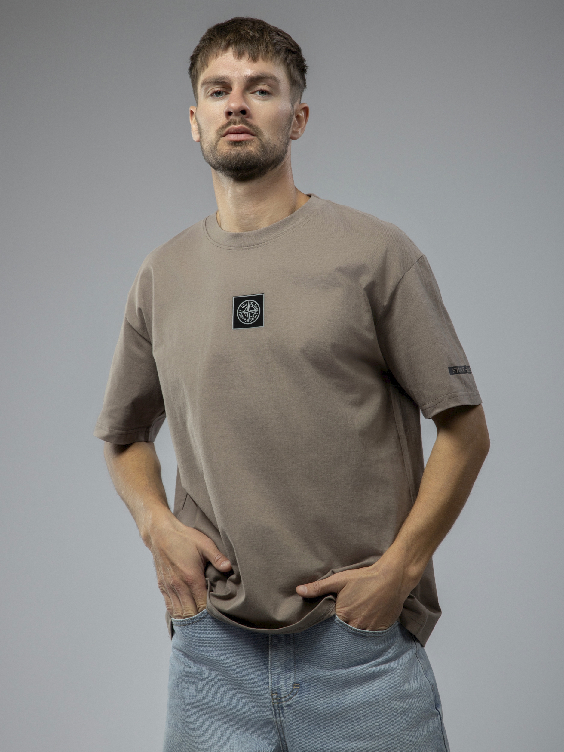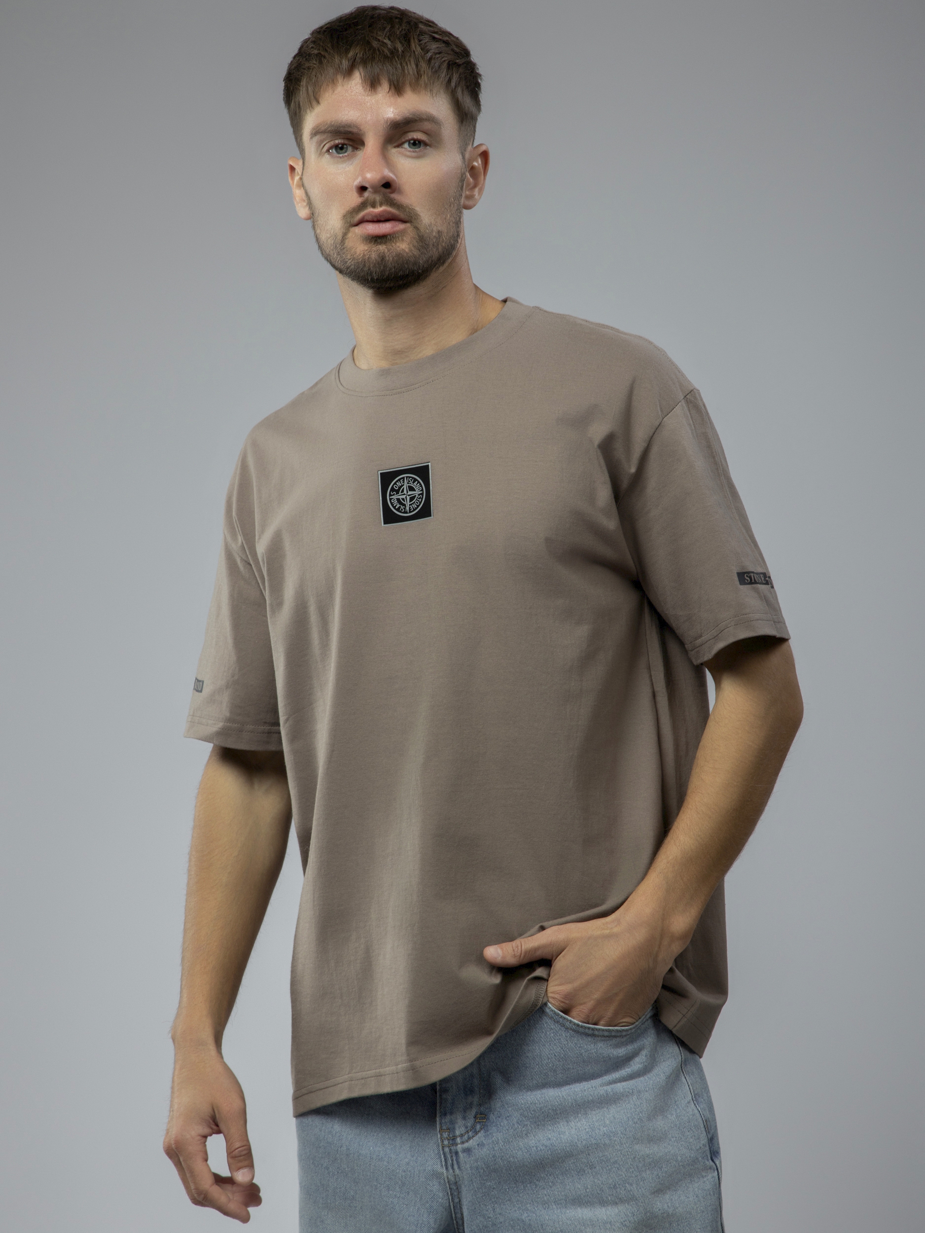 Футболка однотонная с принтом арт. TX1223-Brown1-LSWA1