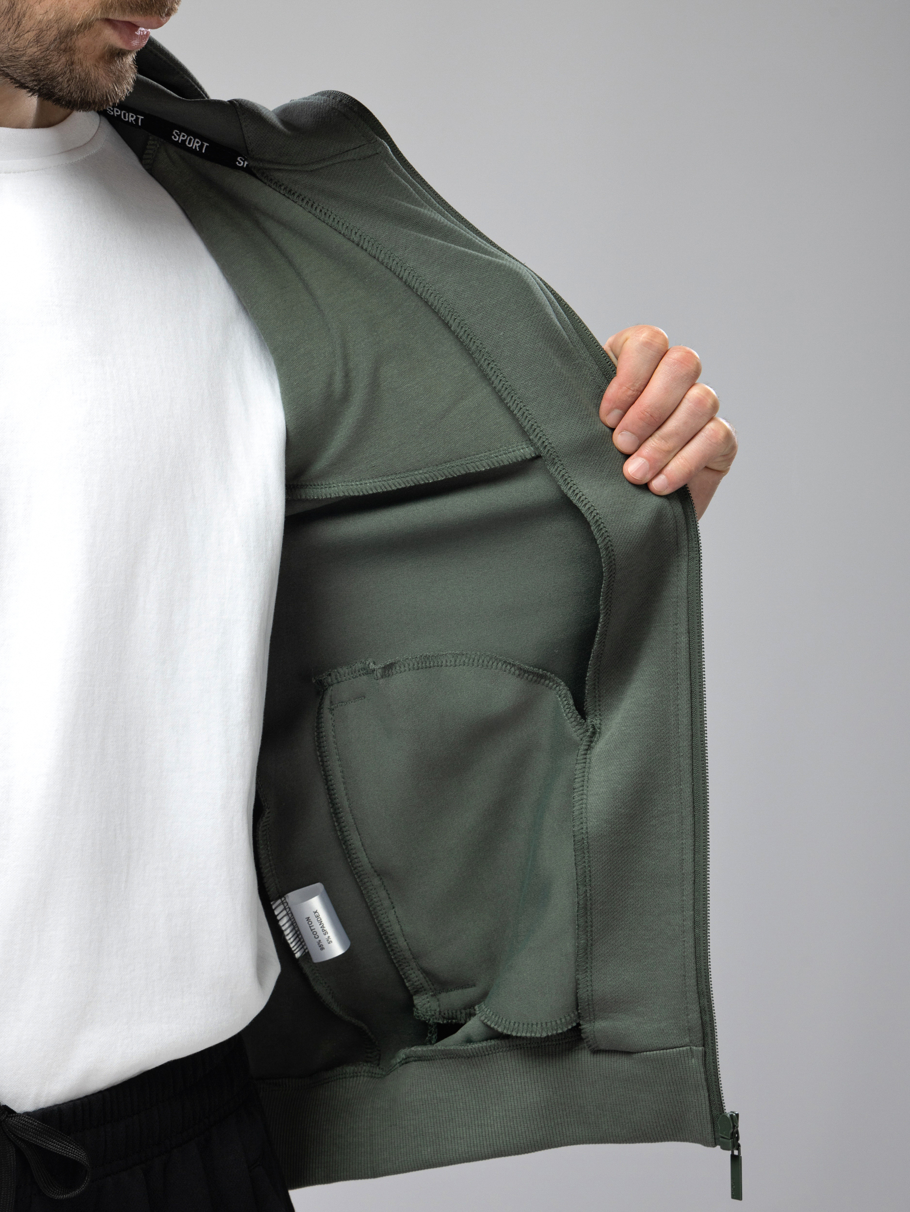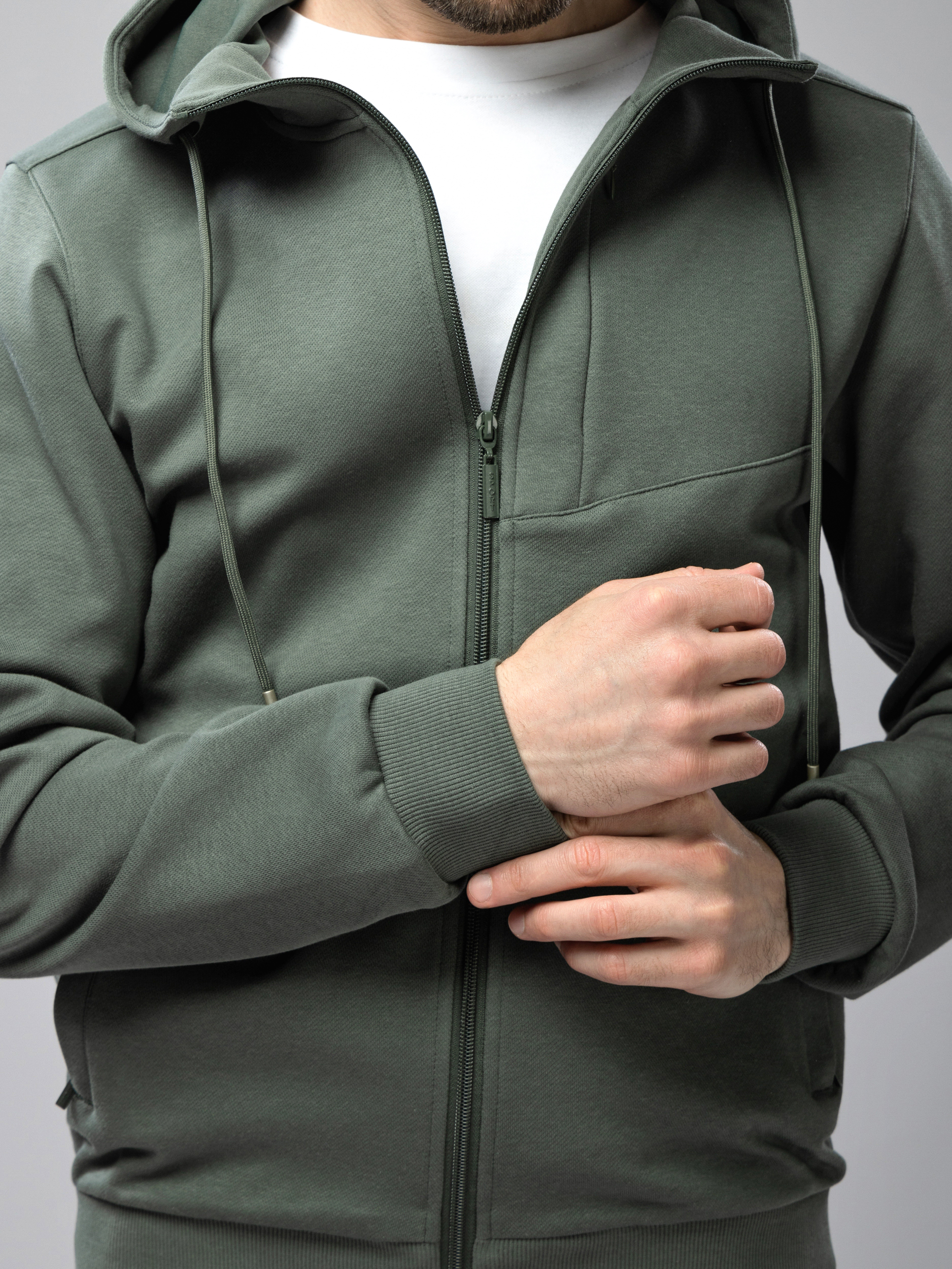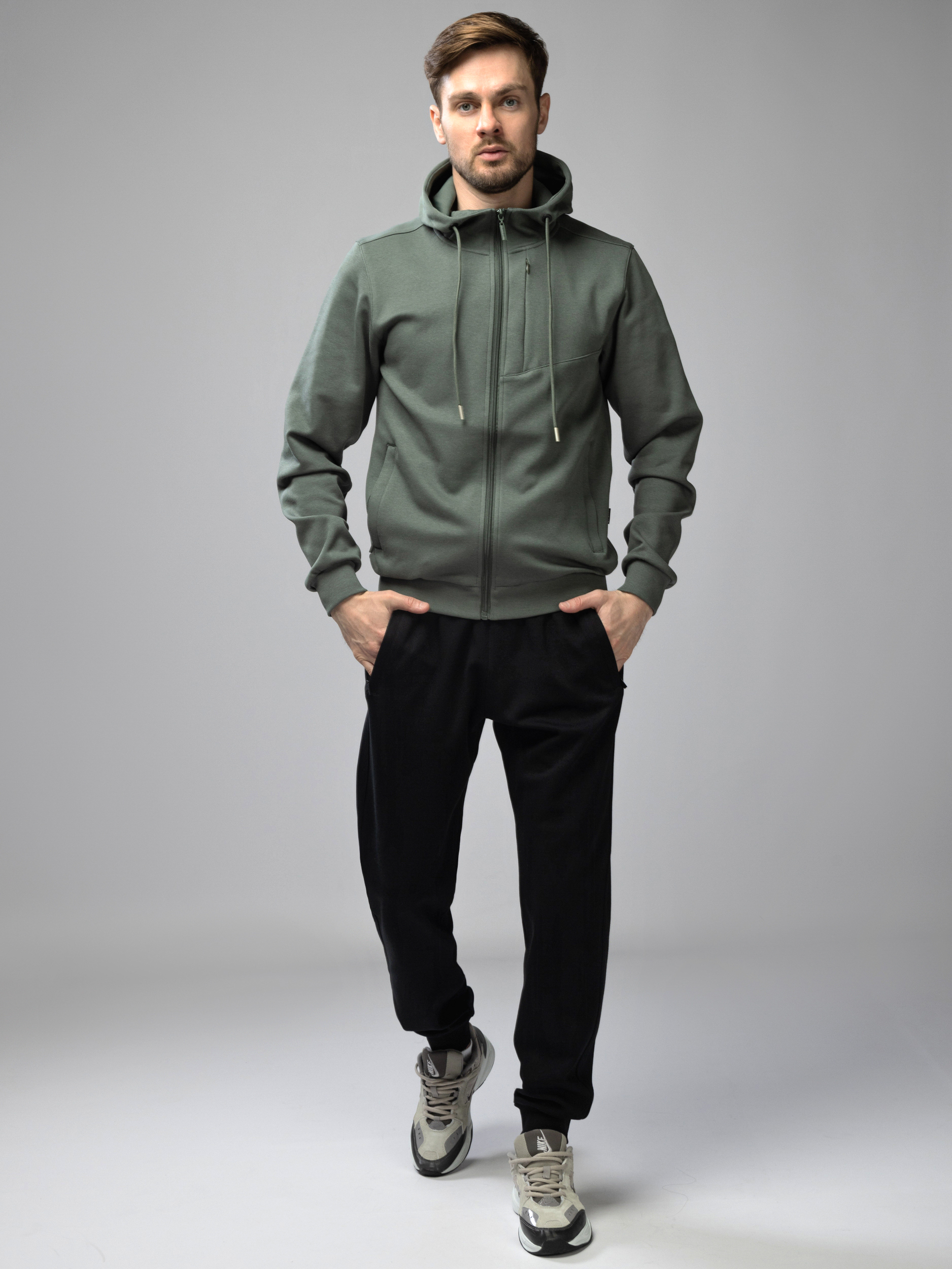 Мужской спортивный костюм на молнии — универсальная одежда для активного образа жизни. Комплект включает олимпийку с молнией и брюки прямого кроя, выполненные из хлопка с добавлением спандекса для эластичности и комфорта. Свободный крой обеспечивает комфорт во время тренировок, прогулок и занятий фитнесом в спортзале. Кофта с несъемным капюшоном и карманами идеально подходит для весеннего и летнего сезонов. Завязки регулируют посадку, что делает костюм дышащий мужской легким и практичным. Джоггеры с эластичным поясом и манжетами обеспечивают свободу движений во время бега и тренировок.