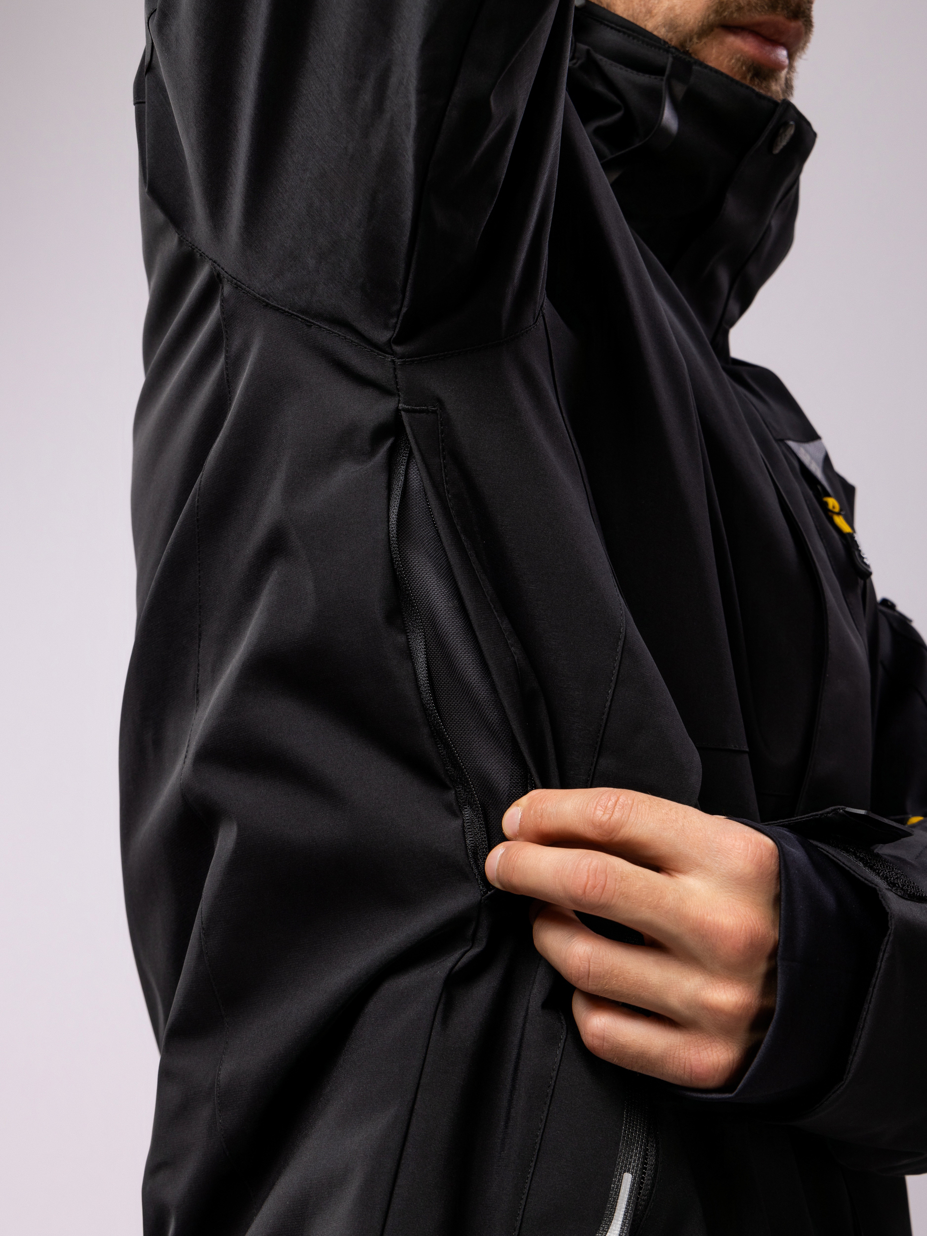 Важной особенностью зимнего мужского костюма являются вместительные карманы, позволяющие удобно хранить личные вещи. Расположенный на рукаве карман позволяет быстро получить доступ к ски-пассу, не снимая верхнюю одежду, что особенно удобно на лыжных подъемниках.