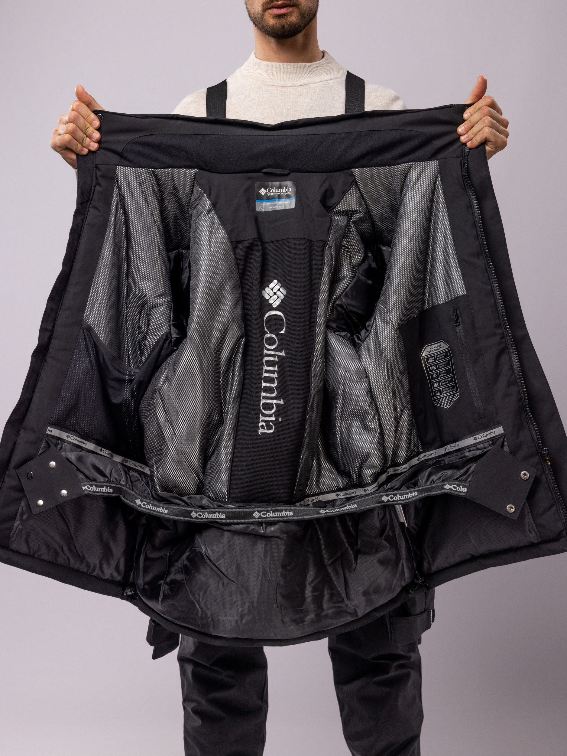 Горнолыжный костюм для мужчины выполнен из 100% полиэстера, благодаря чему он эффективно сохраняет тепло при температуре до -35 °C, а морозостойкие свойства препятствуют проникновению холода даже при сильных ветрах, создавая надежную теплоизоляцию.