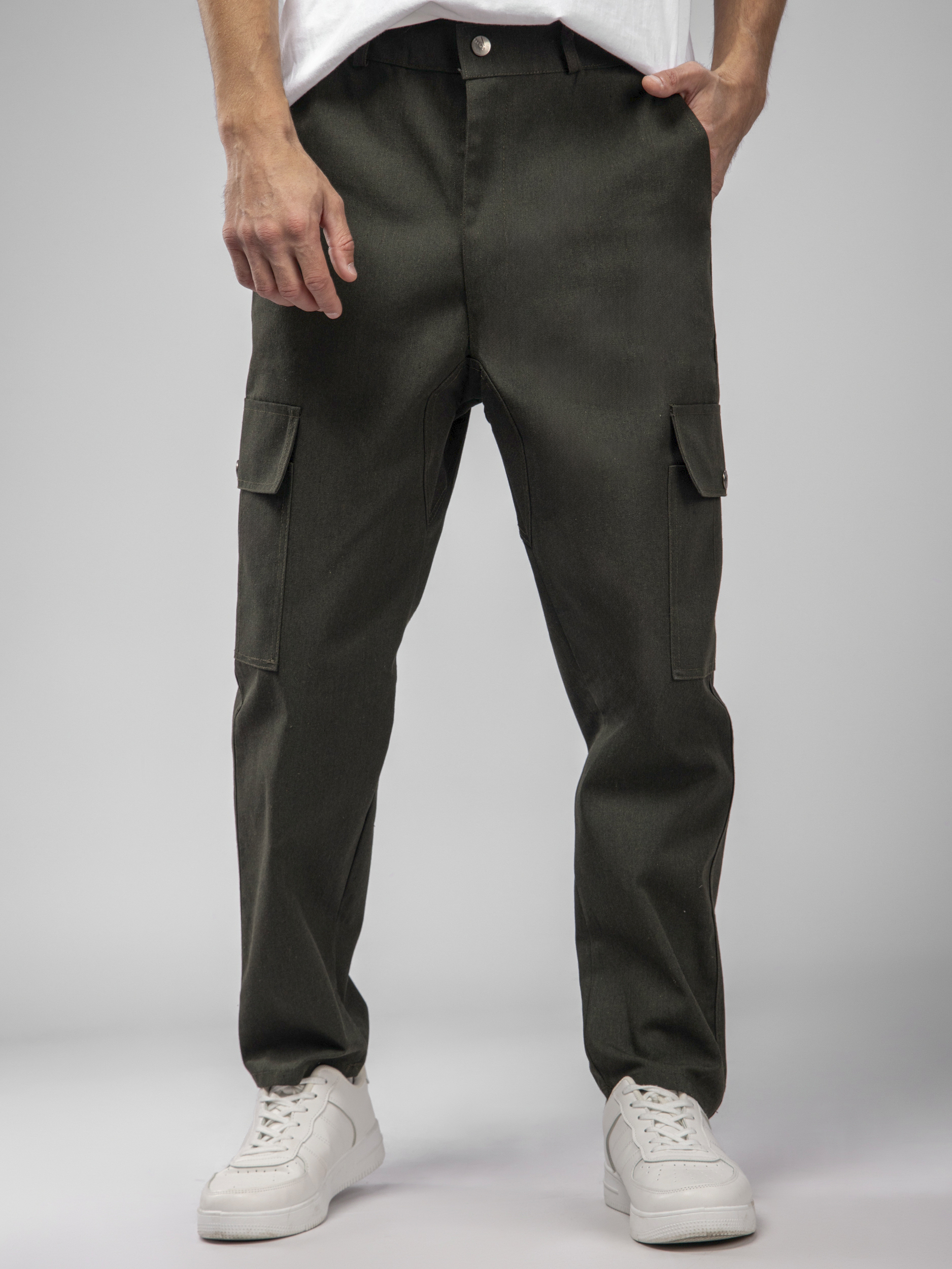 Брюки мужские оснащены четырьмя вместительными карманами, среди которых два классических и два объемных накладных. Дополнительные большие карманы закрываются удобными кнопками, что обеспечивает быстрый доступ к содержимому и надежную защиту от выпадения вещей.