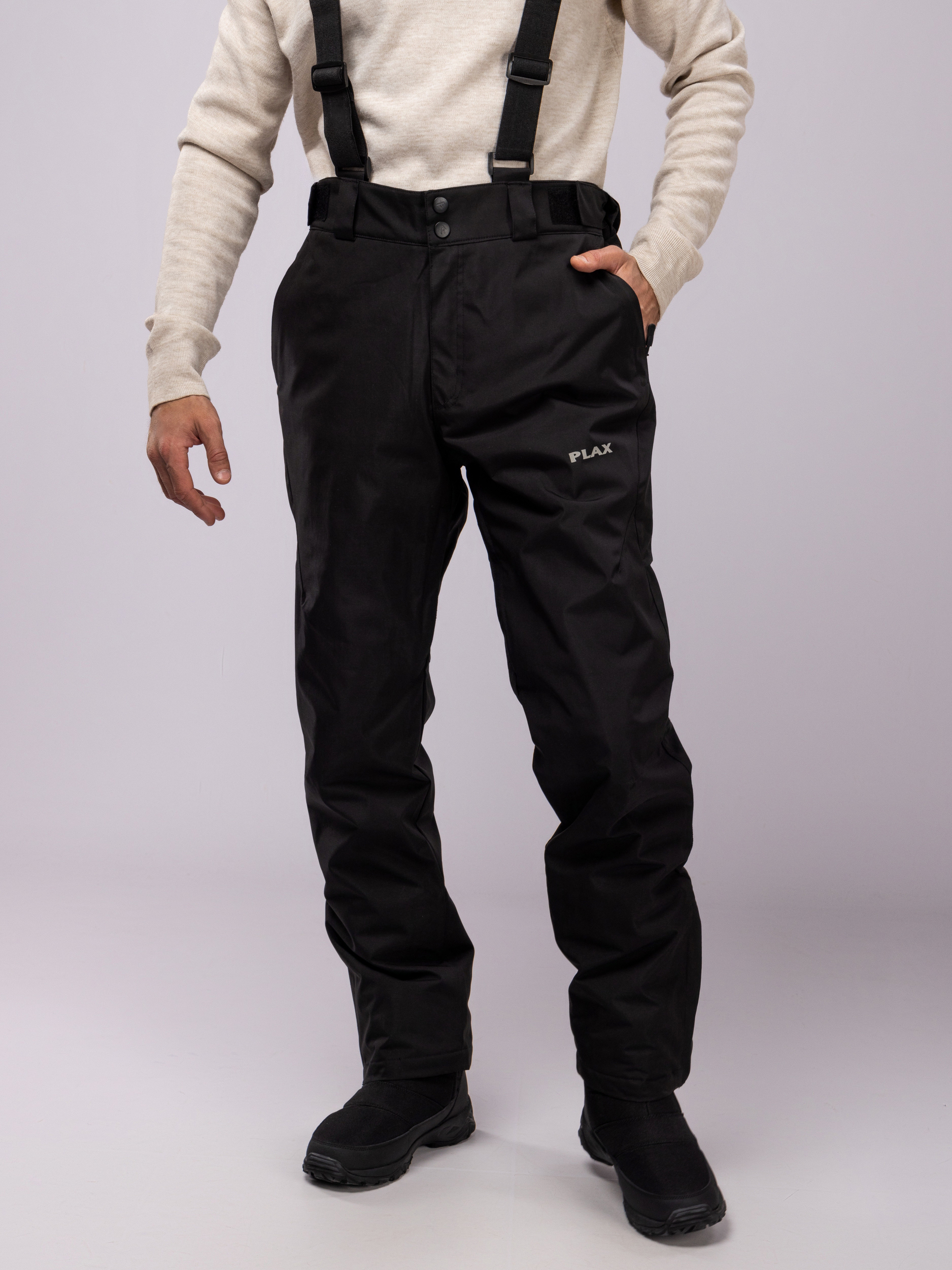 Утеплитель эффективно защищает от холода, позволяя использовать мужские брюки на подтяжках как для повседневной носки, так и для активного отдыха на свежем воздухе. Влагоотталкивающие свойства мужских спортивных зимних брюк помогают сохранить сухость даже при длительном пребывании на улице.