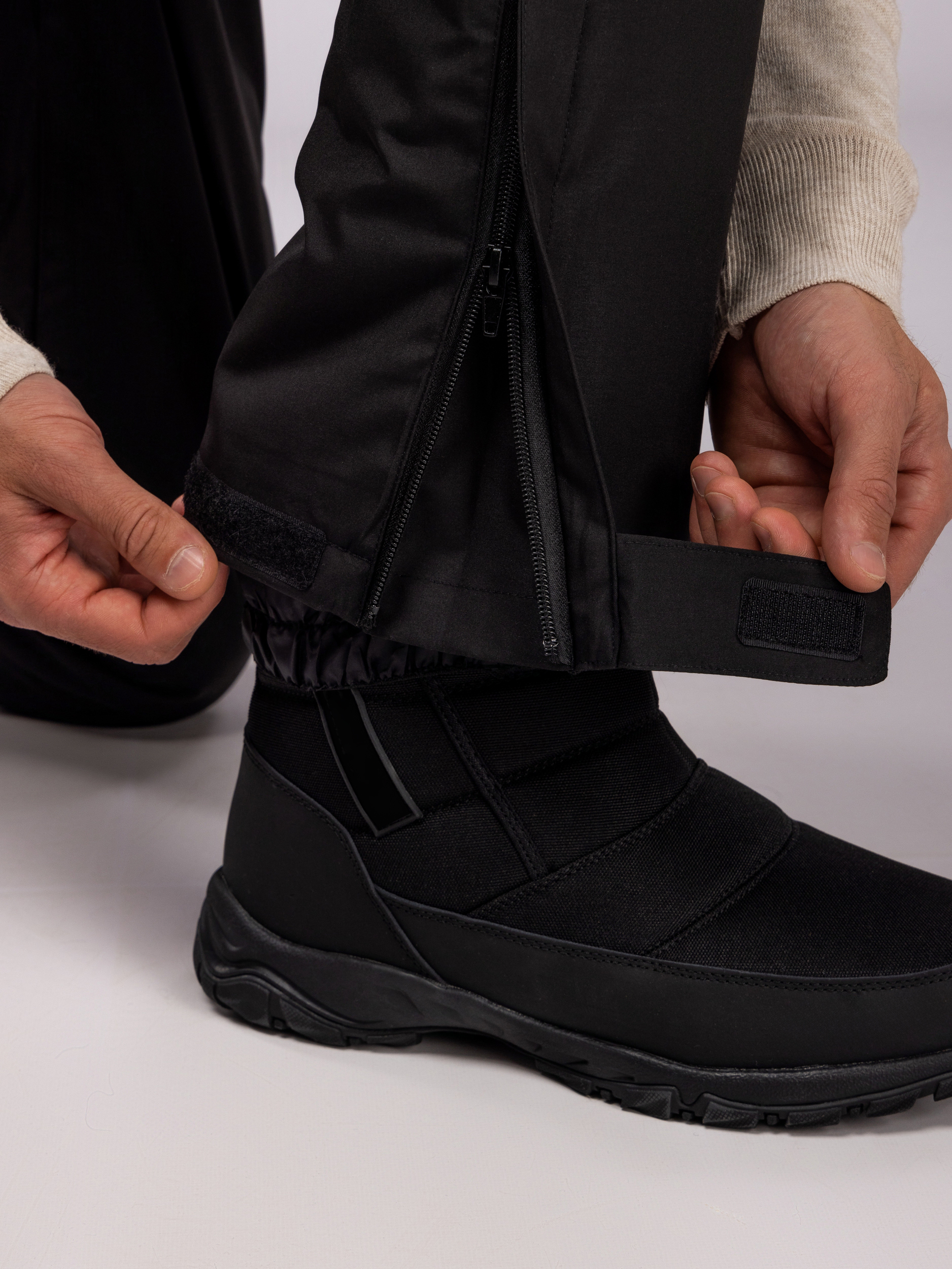 Зимние брюки с подтяжками оснащены функциональными карманами, в которых миожно хранить необходимые вещи. Липучки на поясе дают возможность индивидуальной подгонки по фигуре, обеспечивая дополнительное удобство и практичность. Болоньевые мужские штаны непродуваемые, что делает их отличным выбором для зимних видов спорта, туризма и активных прогулок по городу.