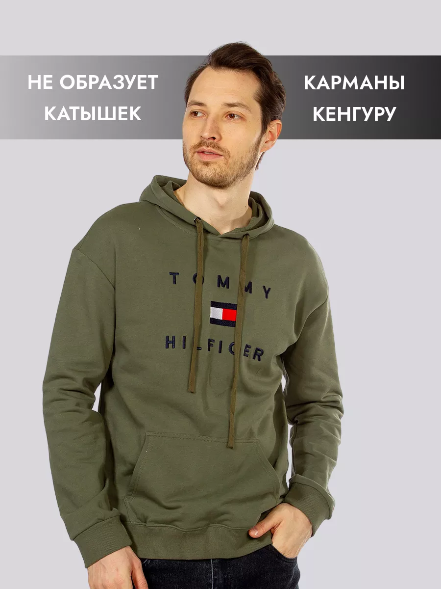 Худи без начеса с капюшоном арт. Y1801-Olive-HTB1