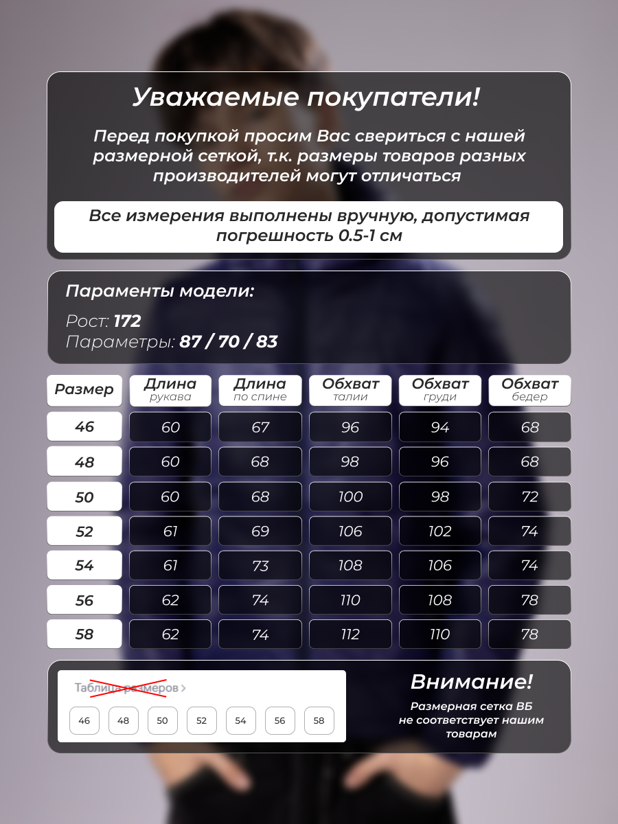 Параметры модели на фото (ОГ-ОТ-ОБ)